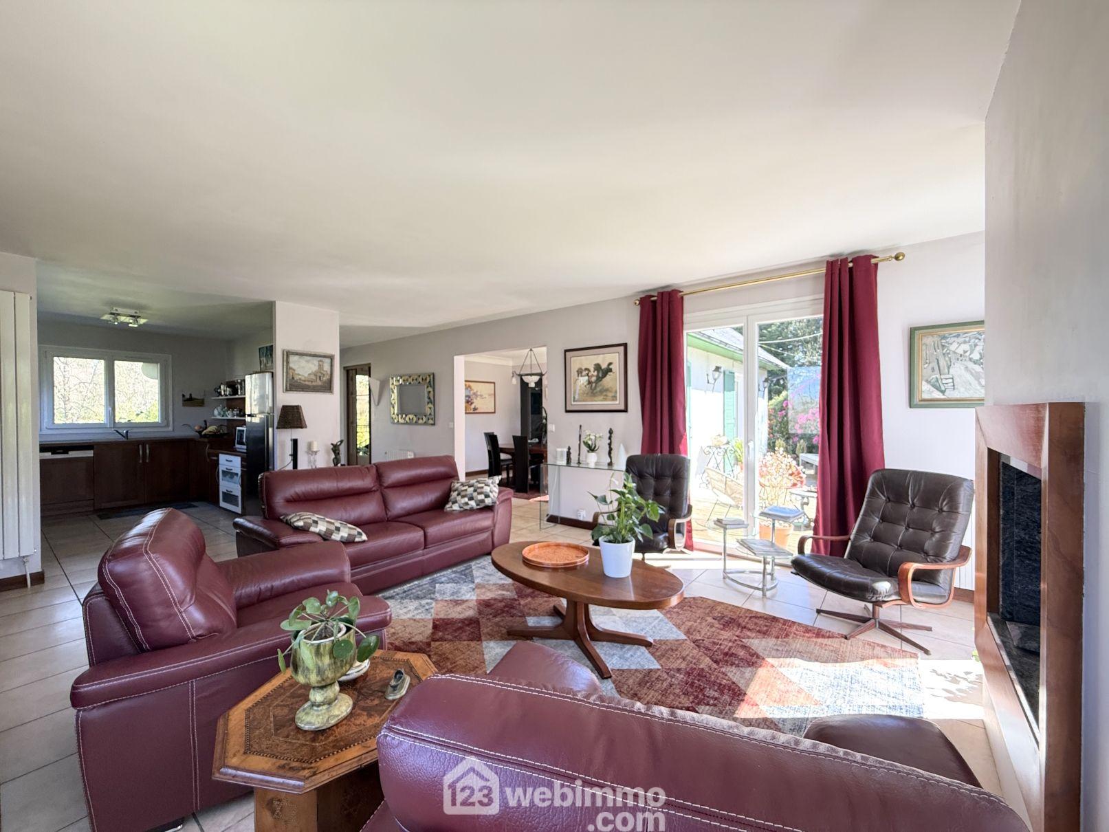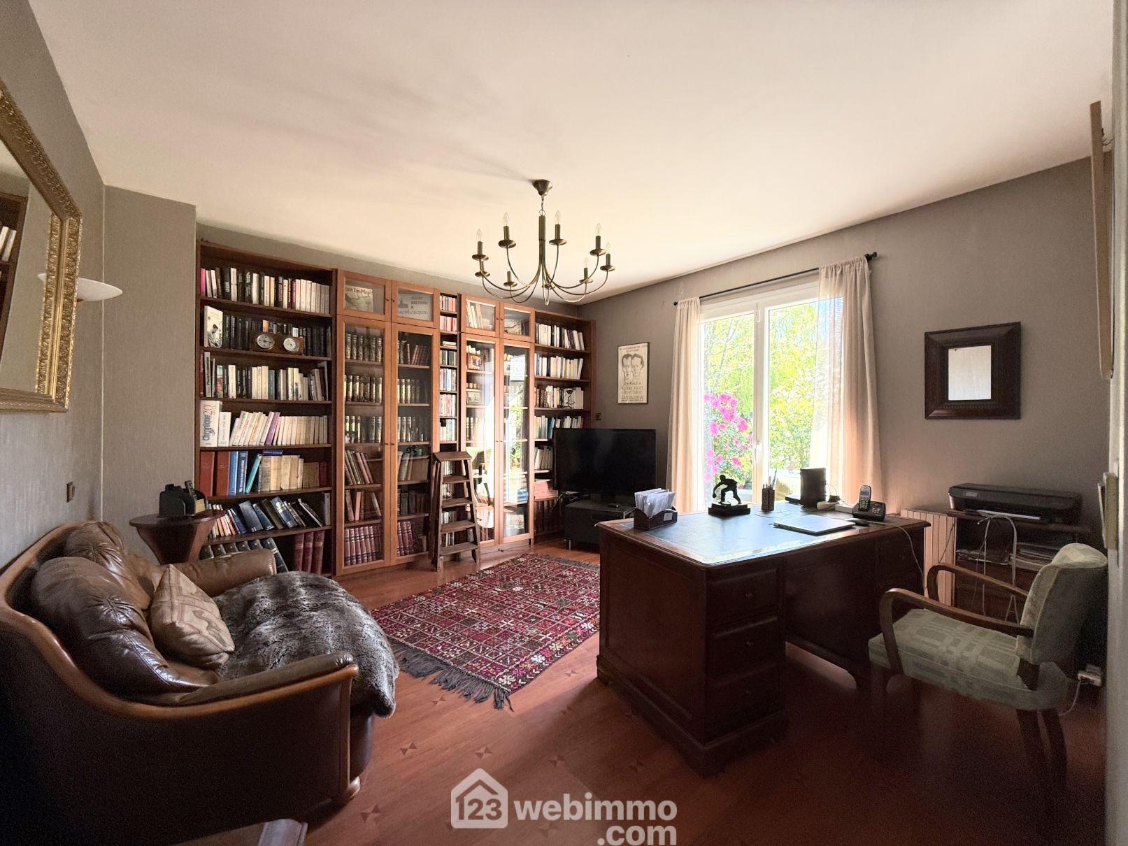 La maison se compose au rez-de-chaussée, d'un hall d'entrée avec dressing, d'un ensemble d'espaces ouverts les uns vers les autres de 55 m², à savoir une cuisine SCHMIDT aménagée et équipée de 11 m² ouverte sur le salon de 31 m² avec cheminée et un espace salle à manger de 13 m². Au sud le rez-de-chaussée se poursuit par une chambre de 15 m² avec dressing, un bureau aménageable en chambre de 15 m² dont la baie vitrée, tout comme celle du salon et de la salle à manger, s'ouvre sur la terrasse de 40 m² orientée sud-ouest. Une grande salle de bains avec 2 lavabos, baignoire et douche de 7 m² ainsi qu'un WC séparé avec lave-mains et un débarras parachèvent ce rez-de-chaussée de 100 m².