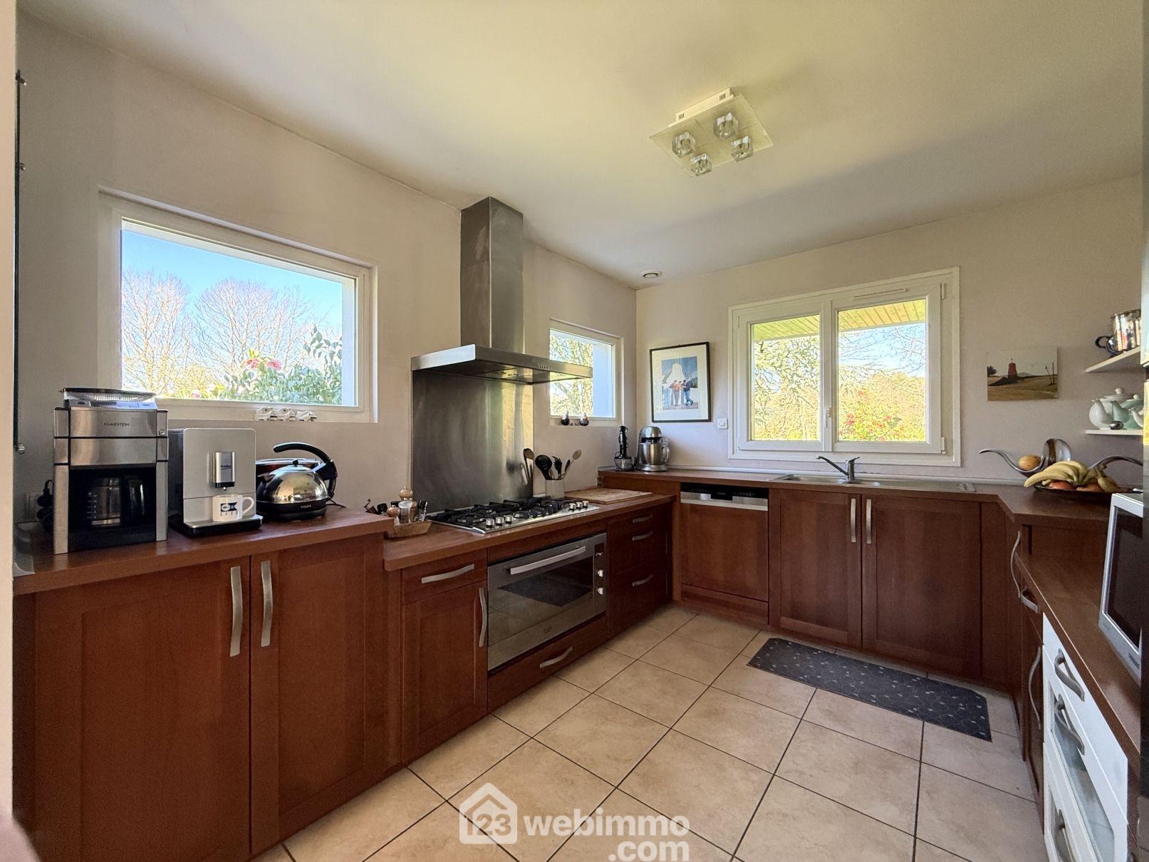 Votre agence 123webimmo l'immobilier au meilleur prix vous présente : À la sortie de Plestin-Les-Grèves, à 4km du bourg et des écoles, 7km des plages, sur un terrain paysager de 12 283 m² avec bois, venez découvrir cette belle maison de 6 chambres orientée sud-ouest, dont la rénovation s'est achevée en 2021, d'une surface de 172 m² habitables, 190 m² au sol plus sous-sol total, et sa dépendance de 70 m².