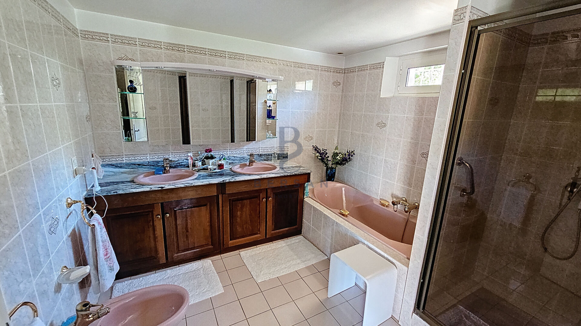 Votre agence BERSAIN Immobilier vous propose à la vente cette superbe villa dans le quartier prisé de la Tour de Mare. En position dominante elle saura vous séduire par ses volumes et son cachet, elle se compose sur un premier niveau d'un hall d'entrée, d'une triple réception cathédrale ouverte sur terrasse, une salle à manger attenante à la cuisine équipée (et son arrière cuisine). L'ensemble ouvert sur la terrasse plein Sud. Au demi étage supérieur, une buanderie, 3 suites avec penderie et salle d'eau, wc séparés. Enfin à l'étage supérieur, un bureau ouvert surplombant le séjour et une suite parentale avec grande penderie et salle de bains - douche ouverte sur une grande terrasse surplombant les cimes des pins parasols. Côté annexes, vous apprécierez le volume du double garage, et les pièces en sous-sol pour du stockage ou autre. Vous pourrez vous détendre autour de la piscine rénovée. Et enfin, vous apprécierez ses nombreuses terrasses, desservant tant les pièces de vie que les différentes chambres. Votre agence BERSAN immobilier est à votre disposition pour tout renseignement complémentaire ou pour la visiter tout simplement.