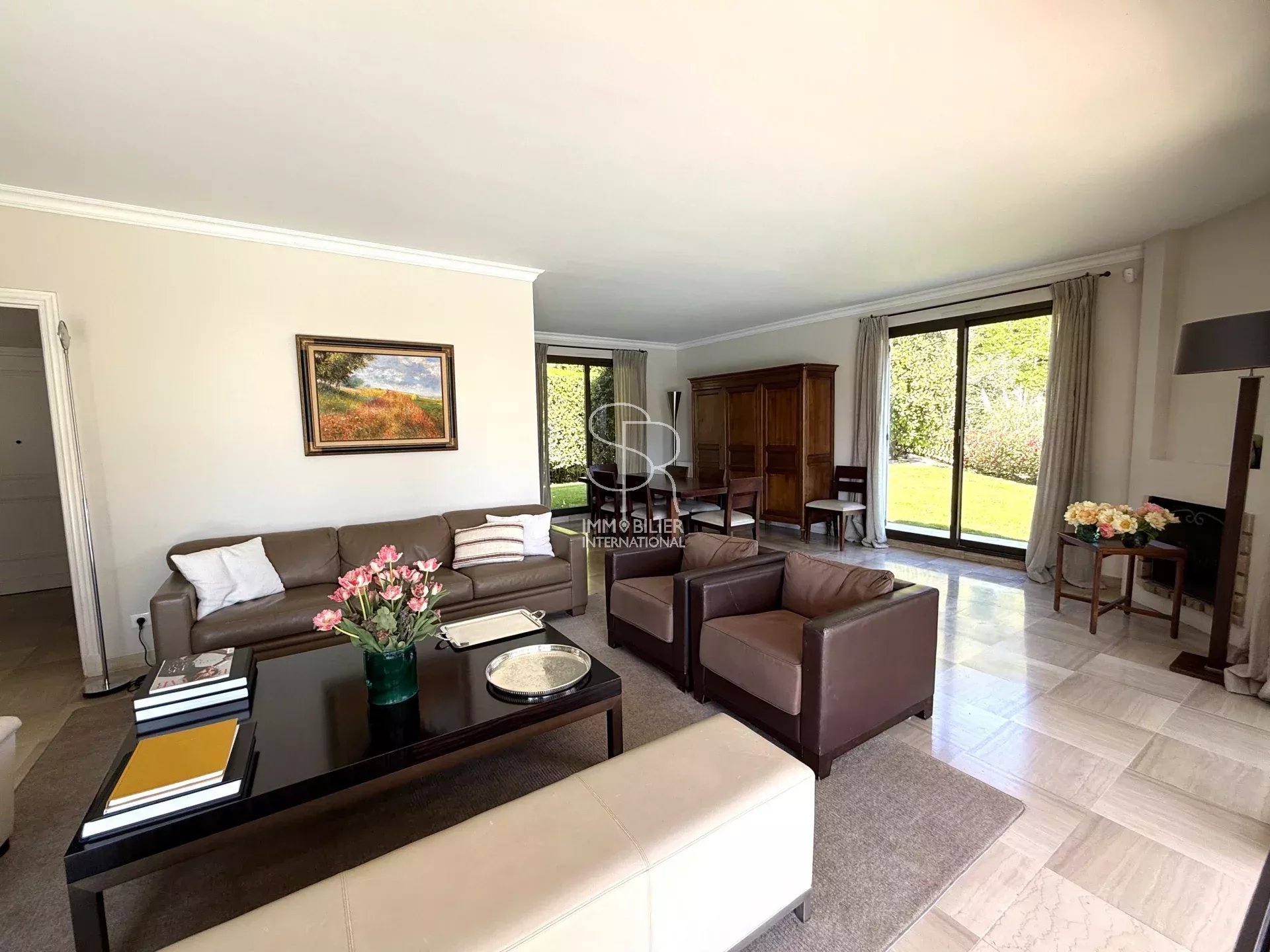 Coup de cœur · Calme · Aperçu mer Villeneuve-Loubet, au cœur du prestigieux Domaine des Hauts de Vaugrenier (130 hectares de nature, 11 hameaux privés, 24 km de rues, 3 lacs, 3 piscines dont une olympique, 8 courts de tennis, commerces et gardiennage 24/24). En fond d’impasse, dans un calme absolu et un environnement très verdoyant : superbe villa de 130 m² + 65 m² d’annexes (buanderie, garage, terrasses) sur parcelle de 575 m², avec piscine et aperçu mer. Espace de vie de 42 m² (séjour / salle à manger) en angle, ouvrant sur le jardin et la piscine. Cuisine équipée. De plain-pied : deux chambres, salle de bains, WC. Autre espace extérieur avec vue lac. À l’étage : deux chambres avec vue mer, salle de bains/WC et dressing. Buanderie, garage, nombreux rangements. Un bien rare dans un domaine d’exception. À découvrir sans attendre. Charges annuelles : 3 500 €. Honoraires à la charge du vendeur.