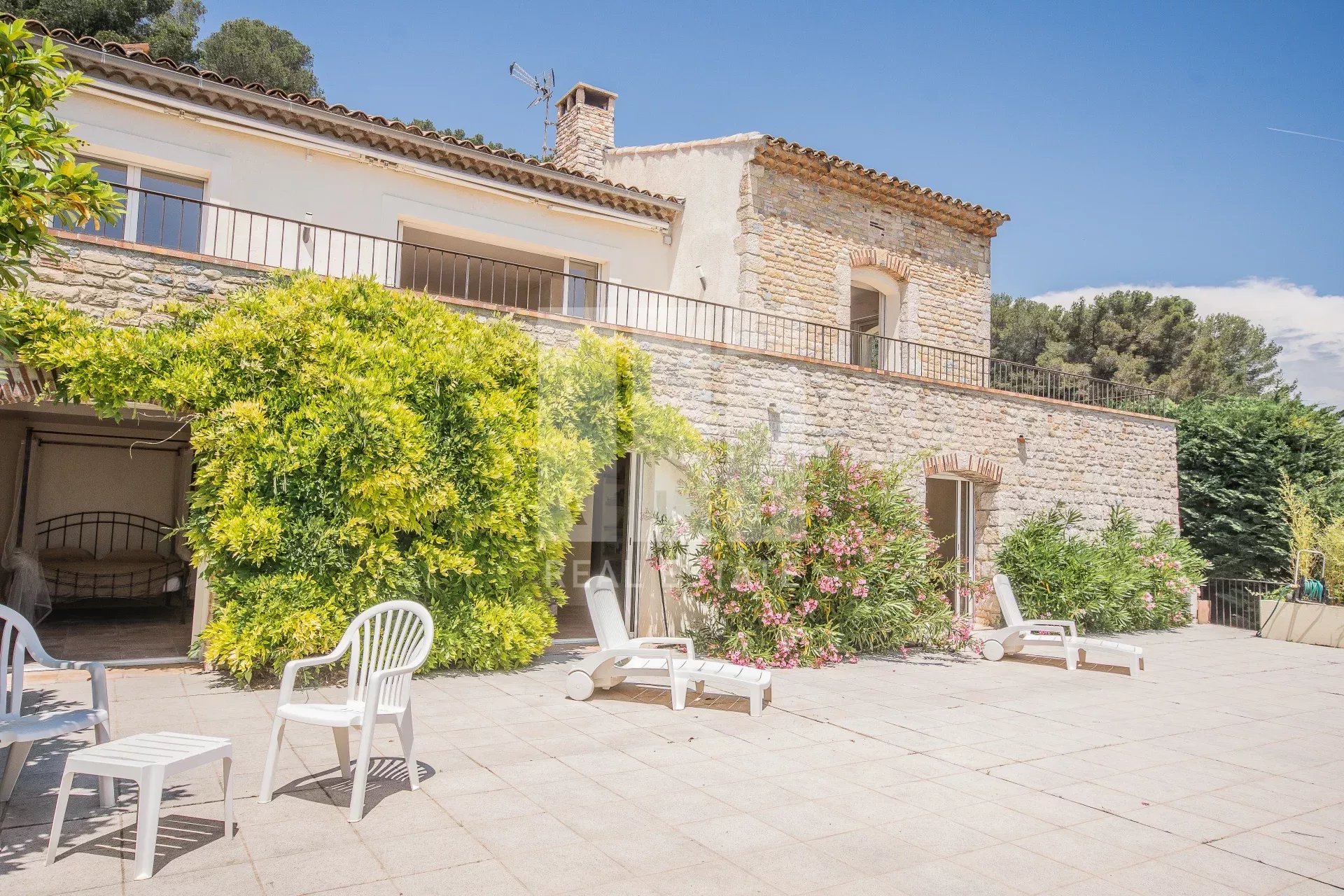 Superbe villa sur les hauteurs de Cannes en position dominante dans un secteur résidentiel et calme. Vue mer panoramique de l'Italie aux Iles de Lérins. Sise sur un terrain en restanque d'environ 2 000m² la maison est agrémentée d'un jolie jardin complanté d'oliviers et d'agrumes. Grande piscine avec une plage. Une surface habitable d'environ 330 m² aux belles prestations avec beaucoup de charmes, la villa se compose comme suit : En rez-de-chaussée : entrée, grand séjour avec cheminée, salle à manger, cuisine indépendante En rez-de-jardin : chambre de maître avec dressing et salle de bain, 3 chambres en suite avec salle de bain/douche, buanderie, toutes les chambres donnent sur une grande terrasse Un grand studio indépendant avec kitchenette et salle d'eau ainsi qu'un garage viennent compléter ce bien.