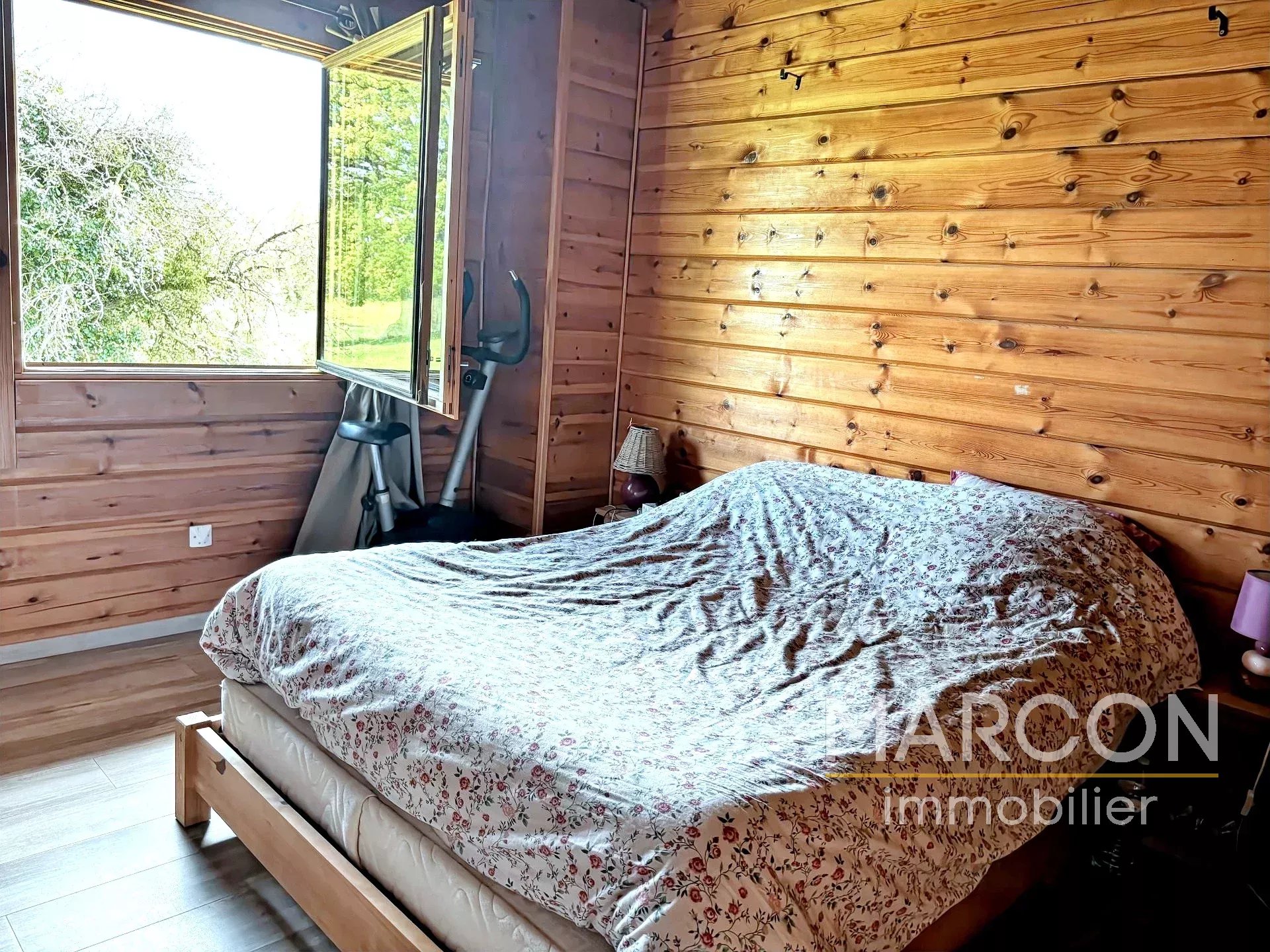 MARCON IMMOBILIER - CREUSE EN LIMOUSIN - REF 88928 - SECTEUR LE-GRAND-BOURG - MARCON Immobilier vous propose ce chalet de charme en pleine nature. Situé dans un hameau au calme, vous profiterez d'une tranquillité absolue et d'une vue imprenable sur la campagne environnante, sans aucun vis-à-vis. Le chalet se compose, au rez-de-jardin, d'une entrée chaleureuse ( véranda ) ouvrant sur un séjour avec cheminée, une élégante cuisine en marbre, une chambre, une salle de douche et des toilettes séparés. A l'étage, deux chambres supplémentaires, une salle de bain et un bureau lumineux grâce à ses nombreuses fenêtres atypiques, avec une superbe vue surplombante. Au sous-sol, un grand garage, une cave, une buanderie, et une pièce avec douche pouvant servir de chambre d'appoint. Le tout sur un terrain arboré de près de 3 700 m², offrant calme, intimité et un cadre de vie privilégié à la campagne. Prix : 234 000€ (honoraires à la charge du vendeur). MARCON IMMOBILIER - LA SOUTERRAINE - 05-55-63-09-92 Réseau de 3 agences en Creuse : Aubusson, Guéret et La Souterraine. Les informations sur les risques auxquels ce bien est exposé sont disponibles sur le site Géorisques : georisques.gouv.fr