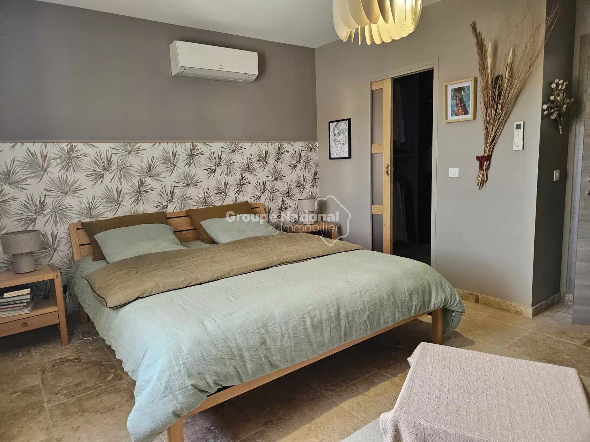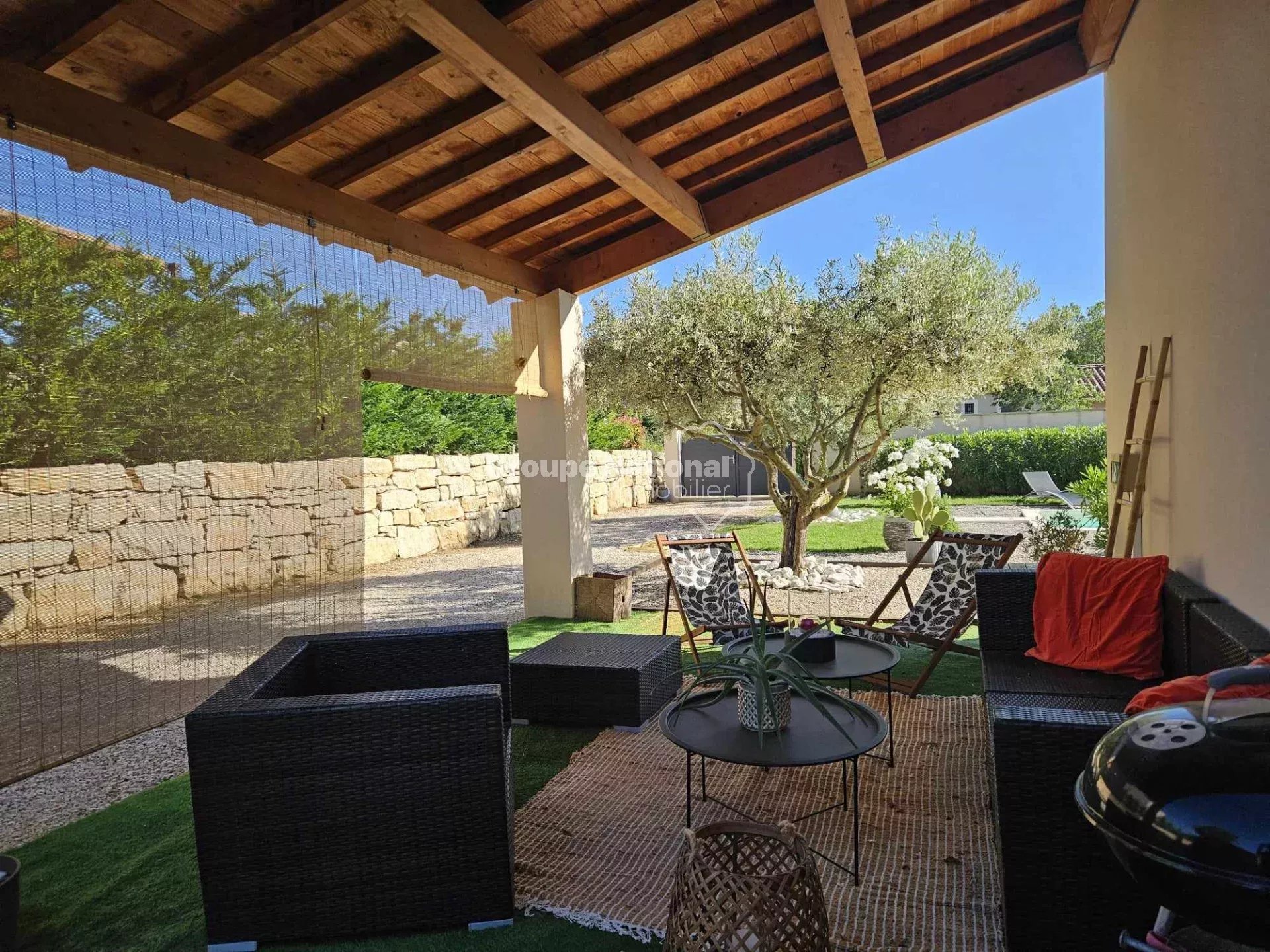 À vendre – Malemort-du-Comtat – Villa style bastide avec piscine dans lotissement résidentiel. Située sur les hauteurs de Malemort-du-Comtat, au cœur d’un quartier résidentiel prisé composé de belles villas, cette bastide moderne en R+1 d’environ 190 m² habitables séduira les amateurs de confort et de tranquillité. Édifiée sur un terrain clos et joliment arboré de 705 m², elle offre un cadre de vie idyllique, entre authenticité provençale et prestations contemporaines. Le jardin paysagé est agrémenté d’une piscine Desjoyaux (6x3 m), d’un charmant patio propice à la détente, et de plusieurs espaces pour profiter pleinement des beaux jours. La villa, de construction récente (2013) se distingue par ses volumes généreux et sa luminosité. En rez-de-chaussée, vous découvrirez une vaste pièce de vie de 67 m² incluant une cuisine aménagée et équipée ouverte sur le séjour/salon, une buanderie, des toilettes indépendantes ainsi qu’une suite parentale de 15,50 m² avec salle d’eau. À l’étage, trois grandes chambres (16,5 m², 22 m² et 30 m²) avec chacune sa salle d'eau, toilettes indépendantes, ainsi qu’un espace dressing. Côté confort, rien n’a été laissé au hasard : Chauffage air pulsé, climatisation, Carrelage Travertin, menuiseries en aluminium double vitrage, volets roulants électriques, baie à galandage, domotique intégrée… un bien clé en main aux prestations de qualité. Les informations sur les risques auxquels ce bien est exposé sont disponibles sur le site GEORISQUES : www.georisques.gouv.fr MAZAN ST DIDIER VENASQUE CARPENTRAS Patricia VIVARES agent commerciale n°RSAC Avignon 404010282