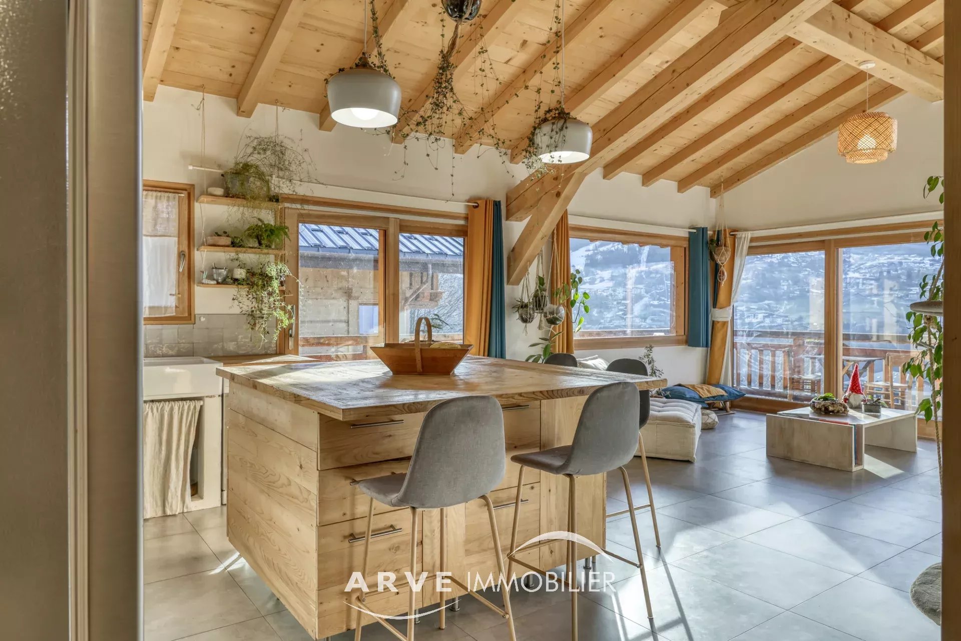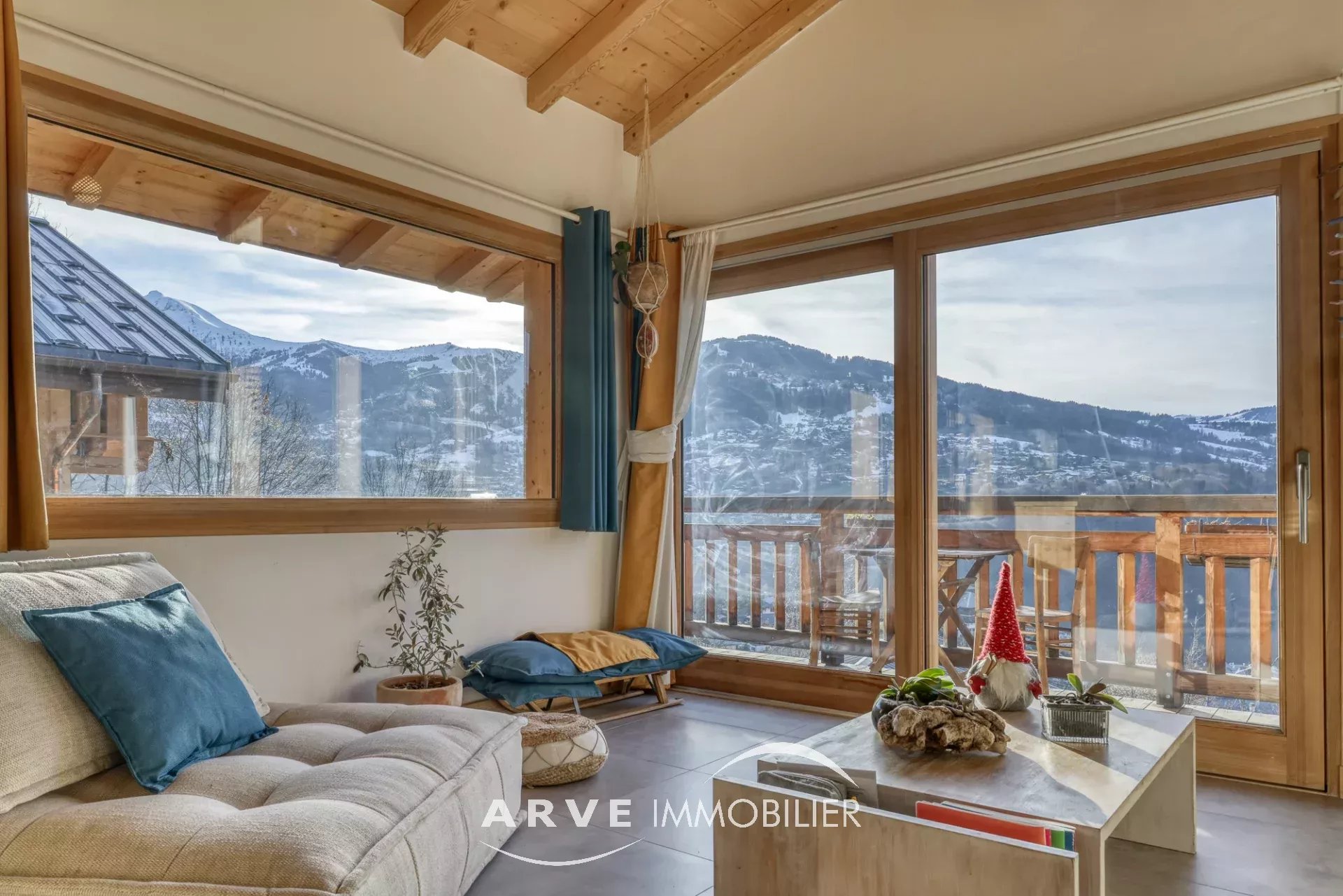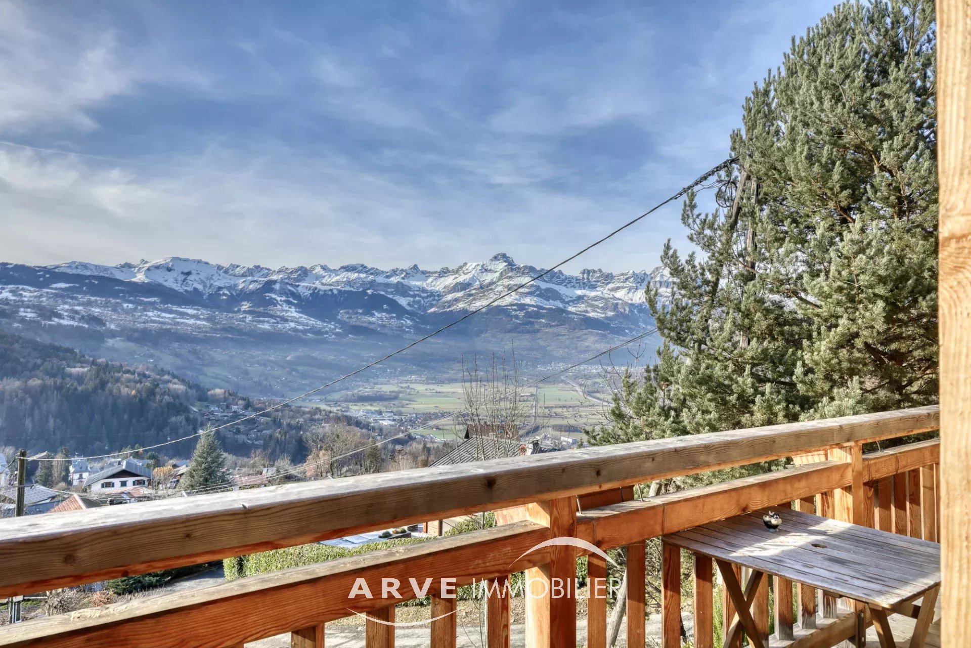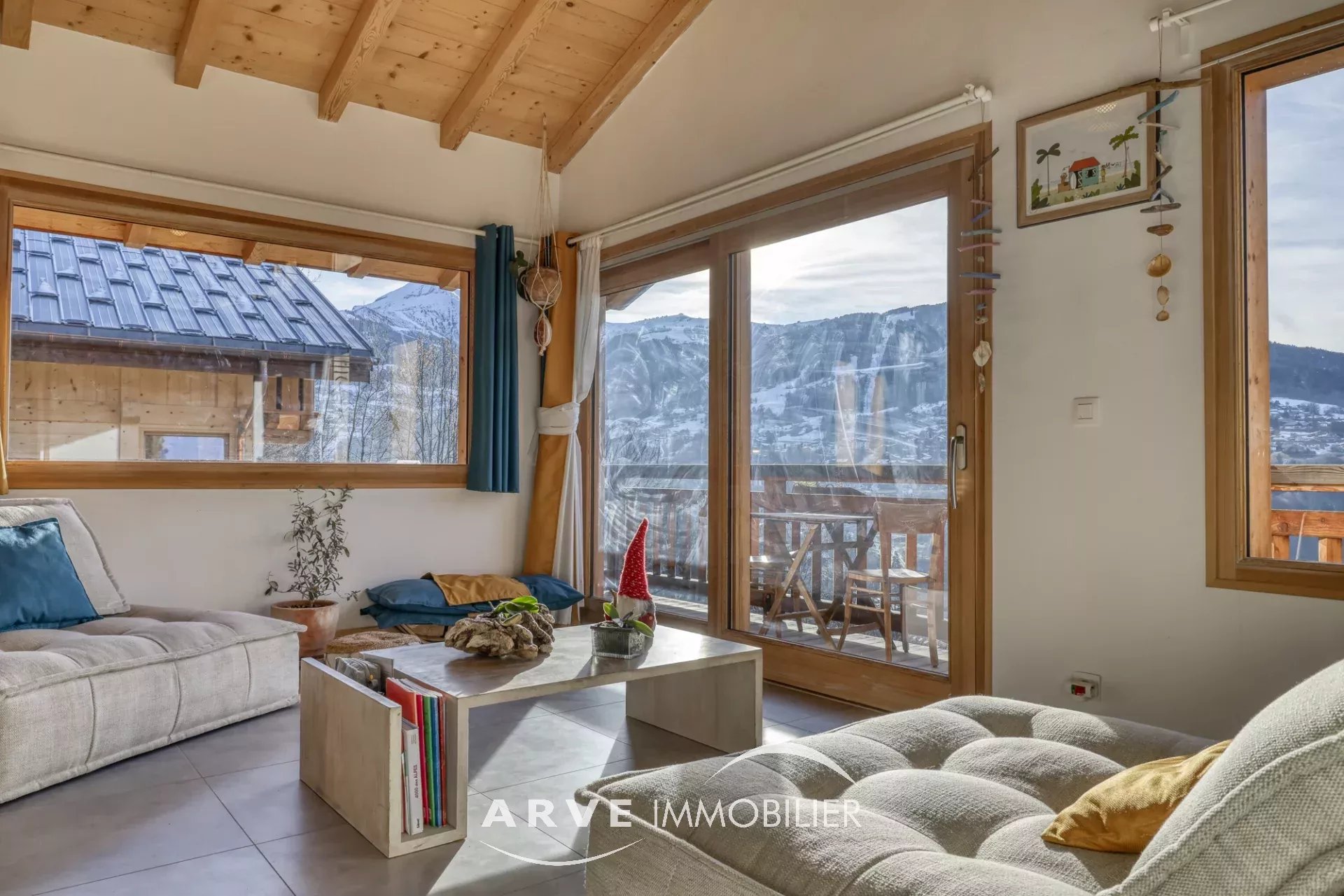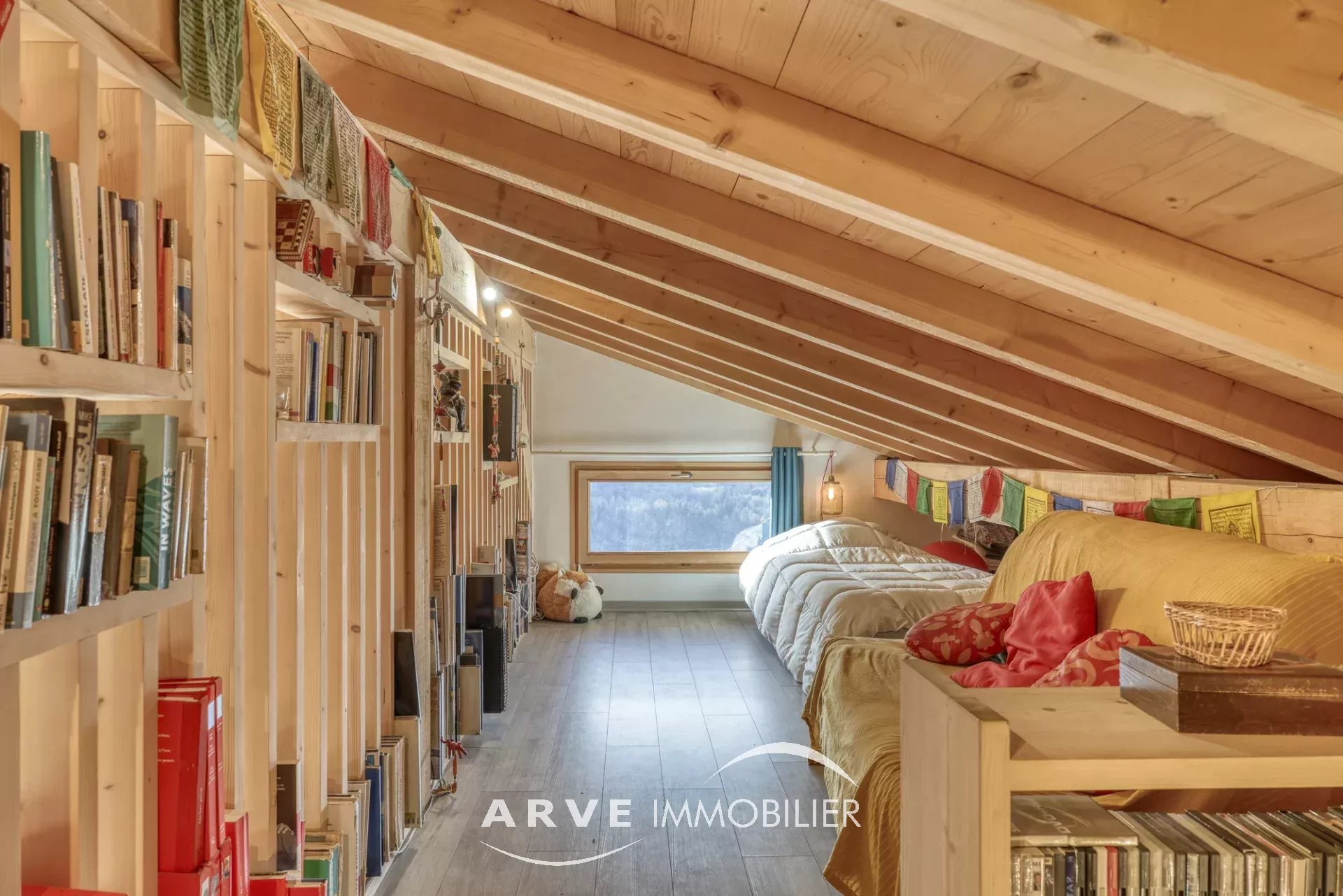 Chalet de type poteau poutre construit en 2019 par des artisans locaux reconnus, il est situé sur les hauteurs du village avec une vue panoramique sur les montagnes environnantes et la vallée, ensoleillement maximal jusque tard en soirée grâce aux orientations Sud et Ouest. Il peut être habité dans sa totalité ou en deux appartements. En rez-de-chaussée : un atelier, un double emplacement de parking protégé, le chalet qui est composé : une entrée donnant sur une belle pièce de vie très lumineuse grâce aux nombreuses ouvertures, belle hauteur sous plafond cathédrale, une cuisine américaine, un balcon d'angle donnant sur un jardin, une chambre donnant également sur le balcon, une salle d'eau et WC, un WC invités, une mezzanine, un accès par l'intérieur pour l'appartement du bas. En rez-de-jardin, une pièce de vie avec une kitchenette, deux chambres, tous trois donnant sur un jardin, une salle d'eau, un WC, une cave, un local technique. Plusieurs places de parking extérieur.