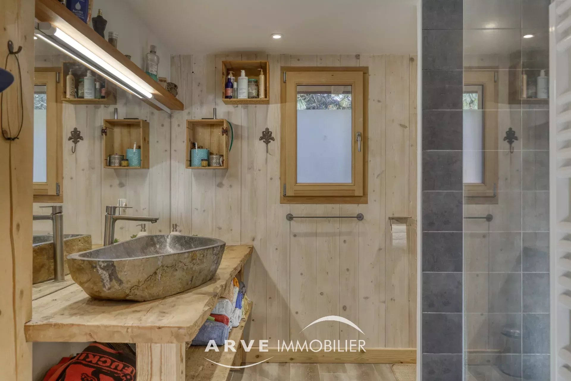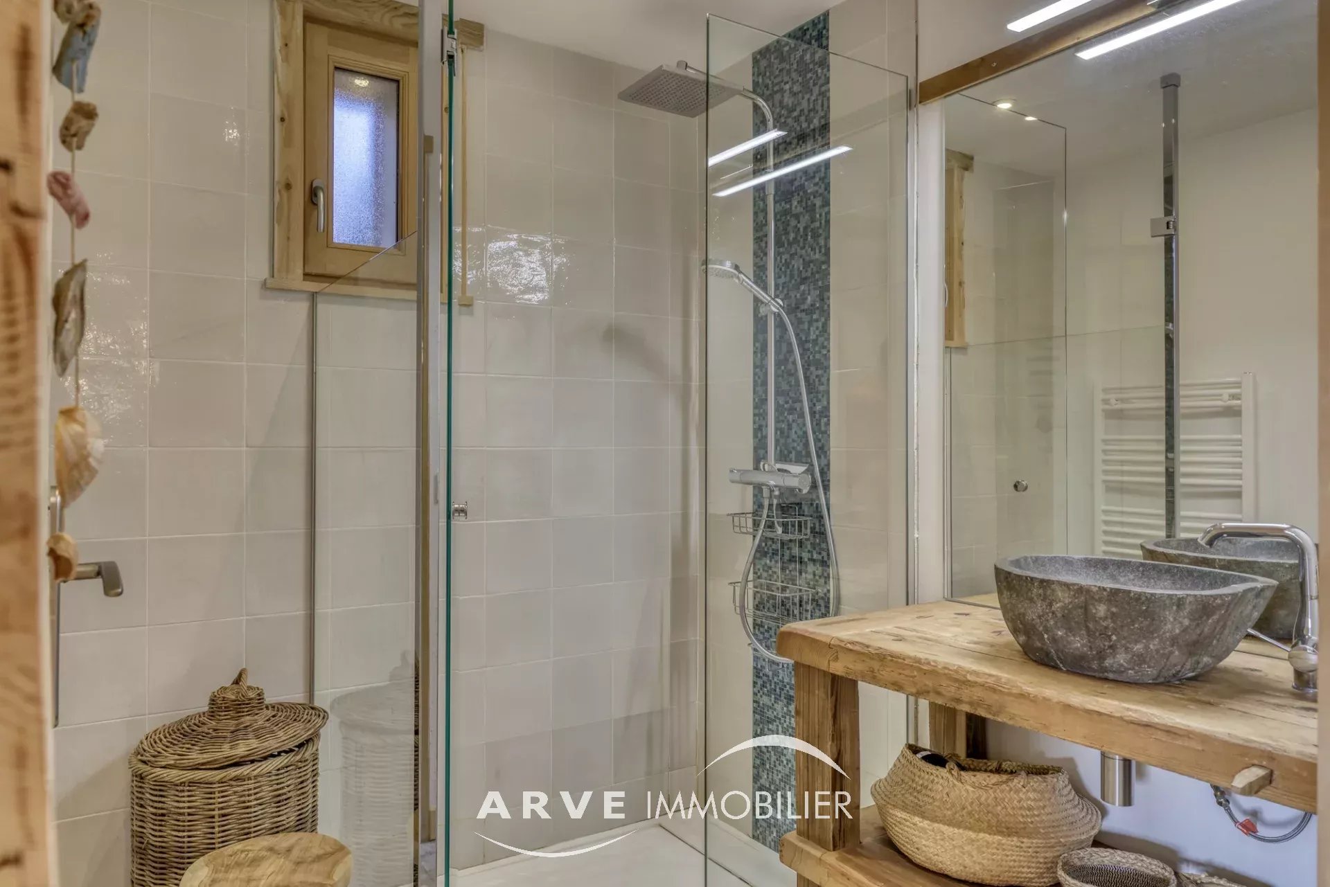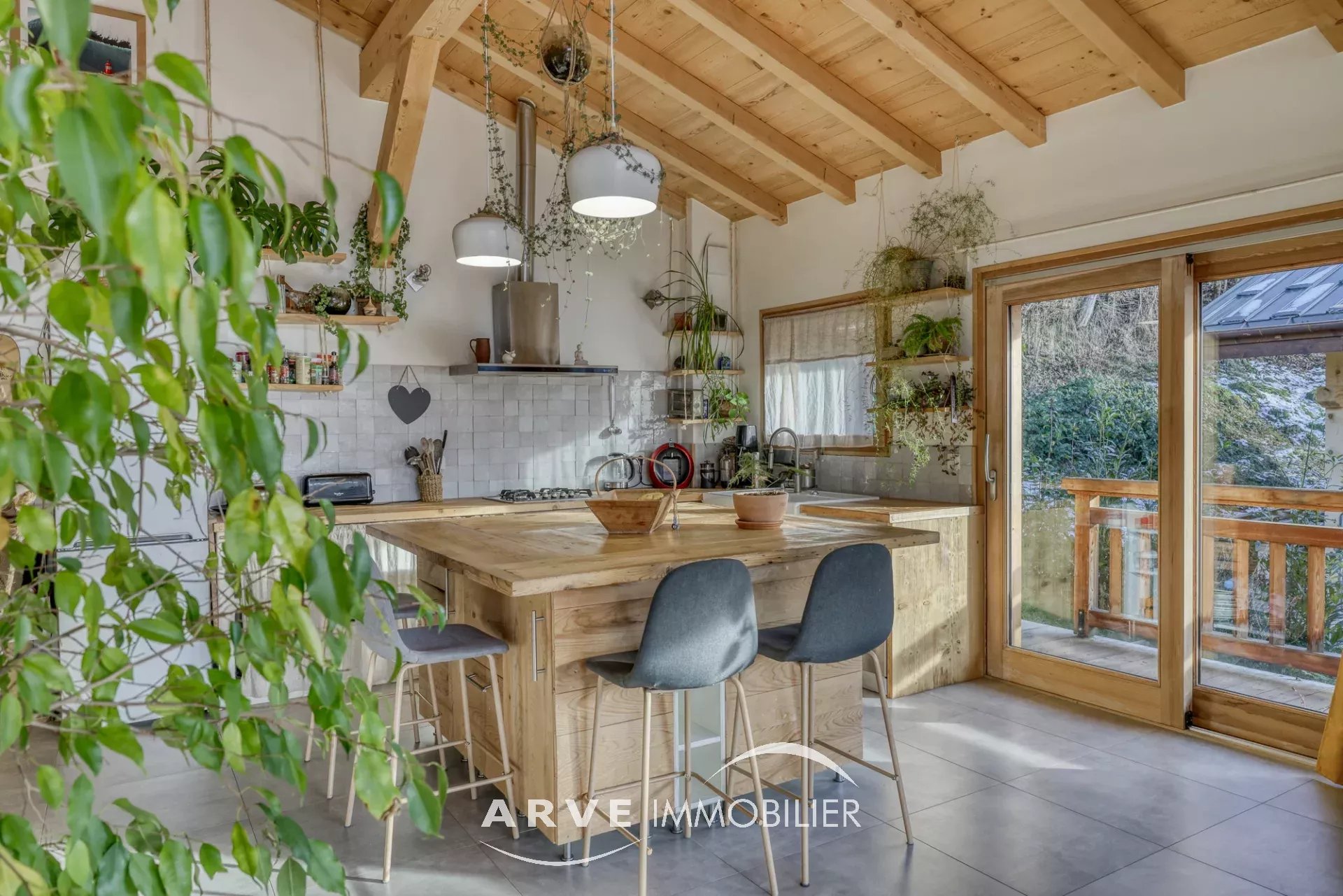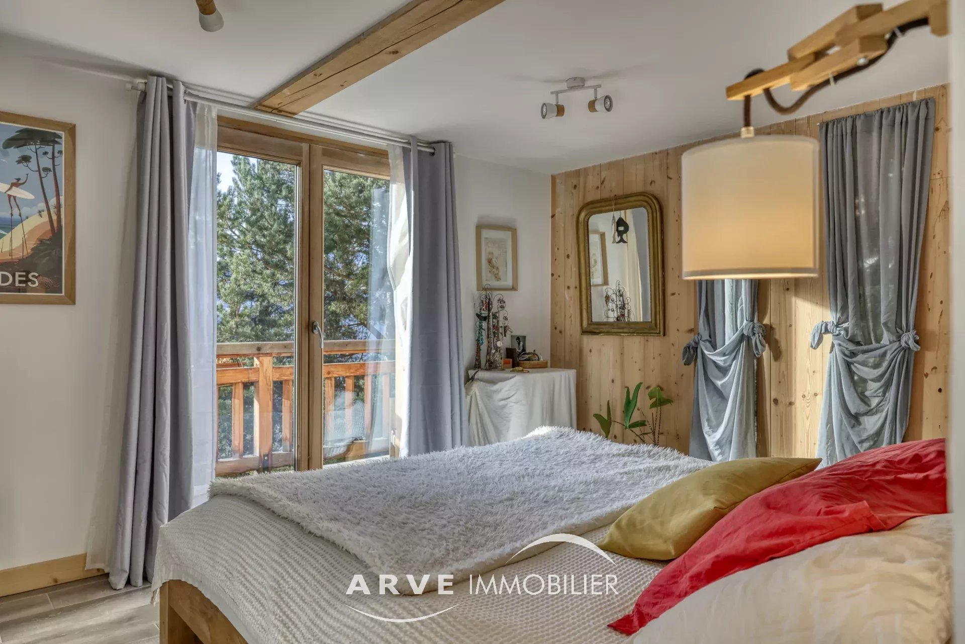 Chalet de type poteau poutre construit en 2019 par des artisans locaux reconnus, il est situé sur les hauteurs du village avec une vue panoramique sur les montagnes environnantes et la vallée, ensoleillement maximal jusque tard en soirée grâce aux orientations Sud et Ouest. Il peut être habité dans sa totalité ou en deux appartements. En rez-de-chaussée : un atelier, un double emplacement de parking protégé, le chalet qui est composé : une entrée donnant sur une belle pièce de vie très lumineuse grâce aux nombreuses ouvertures, belle hauteur sous plafond cathédrale, une cuisine américaine, un balcon d'angle donnant sur un jardin, une chambre donnant également sur le balcon, une salle d'eau et WC, un WC invités, une mezzanine, un accès par l'intérieur pour l'appartement du bas. En rez-de-jardin, une pièce de vie avec une kitchenette, deux chambres, tous trois donnant sur un jardin, une salle d'eau, un WC, une cave, un local technique. Plusieurs places de parking extérieur.