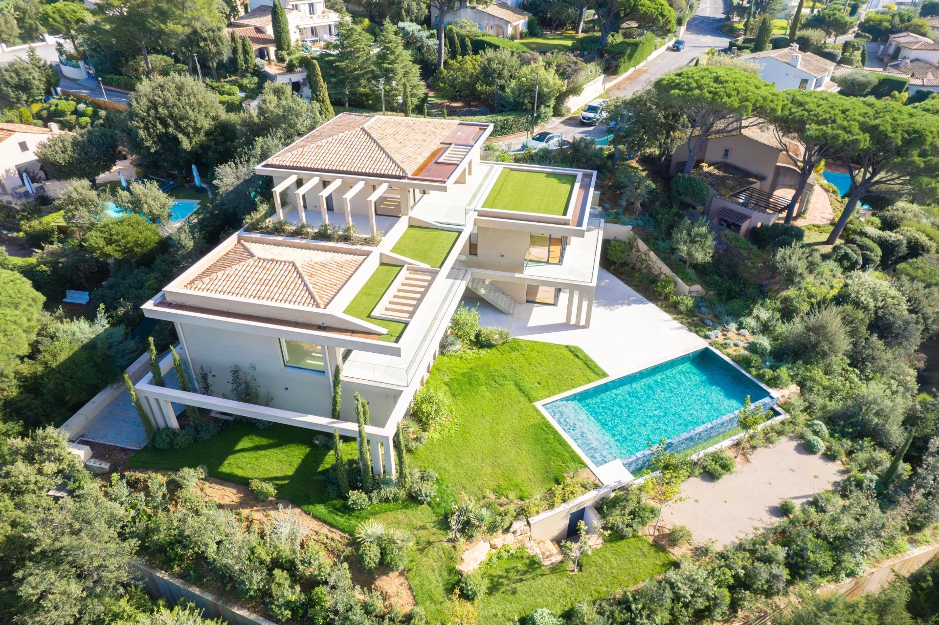 Située au sein du très recherché quartier du Sémaphore à Sainte-Maxime, cette villa d'exception de plus de 340 m² offre une vue mer panoramique sur tout le Golfe de Saint-Tropez. Construite sur un terrain de 1550m², cette villa luxueuses se distingue par ses lignes pures et modernes. Composée d'une vaste pièce de vie prolongée d'une terrasse au dimension hors normes offre une vue mer à couper le souffle. L'espace nuit est composée de six grandes suites dont une Master. Une piscine à débordement surplombant le golfe de Saint Tropez. La villa dispose d'un spacieux sous-sol de plus de 100 m² comprenant salle de Sport, buanderie, un grand garage pouvant accueillir cinq véhicules.