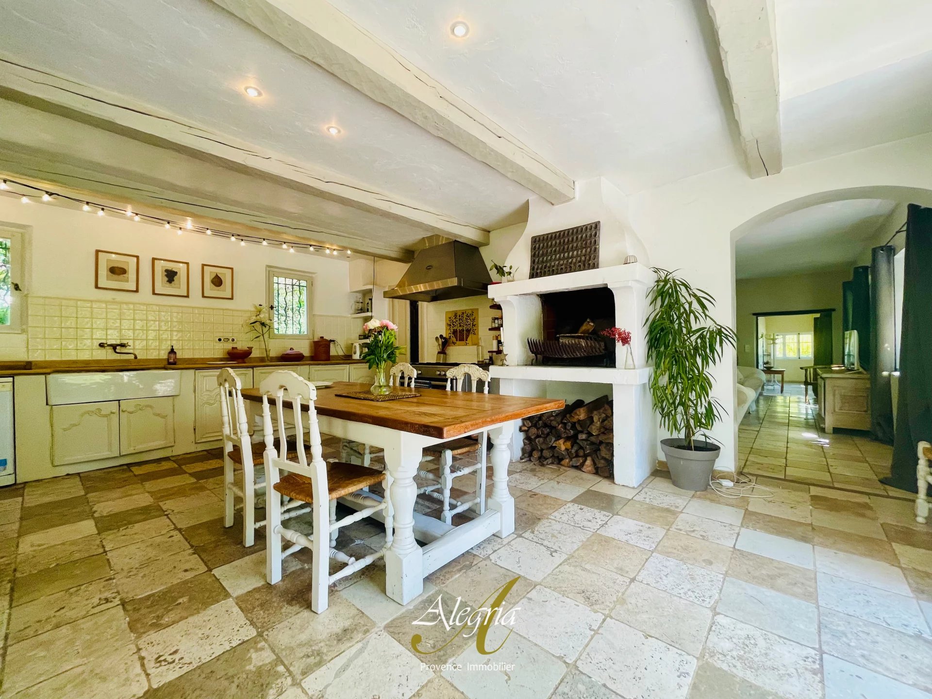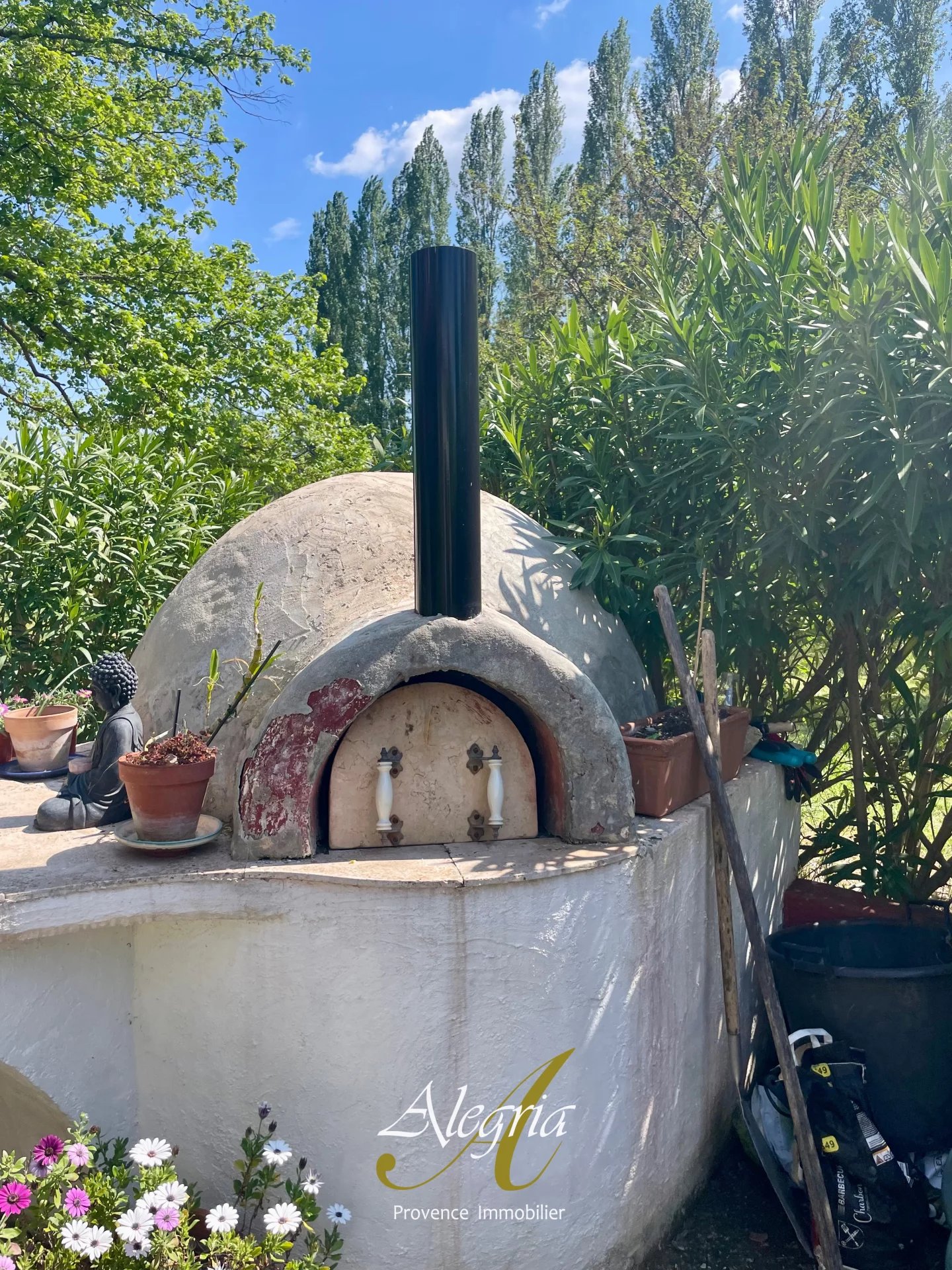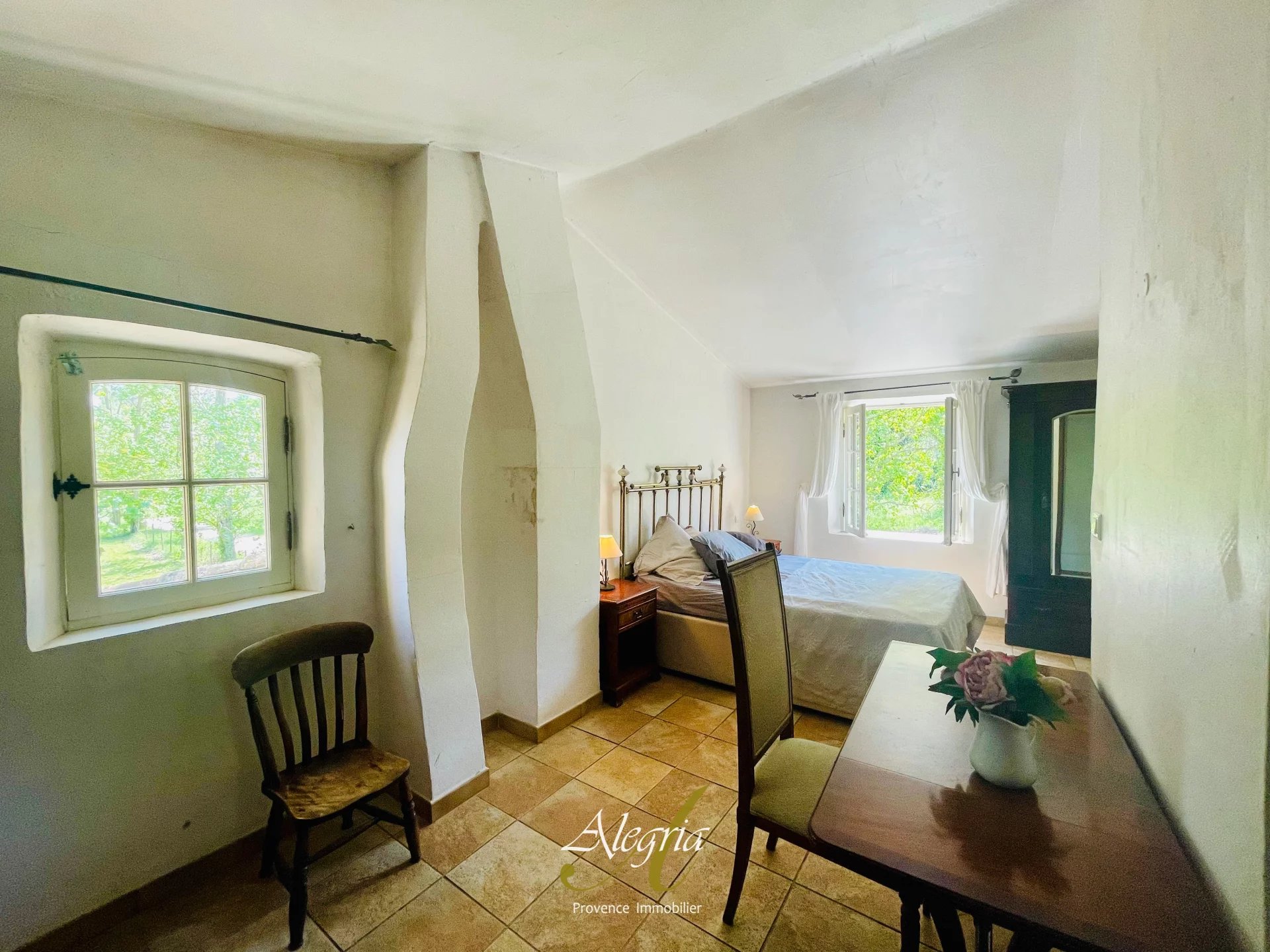 À l’extérieur, une piscine de 15 x 7 mètres, une cuisine d’été, des terrasses fleuries et des coins lounge créent un cadre de vie doux, élégant et tourné vers le plein air. Une source naturelle, un ruisseau et deux puits assurent l’autonomie en eau de ce domaine, qui dispose également d’un terrain plat idéal pour accueillir chevaux, animaux, cultures ou retraites bien-être.