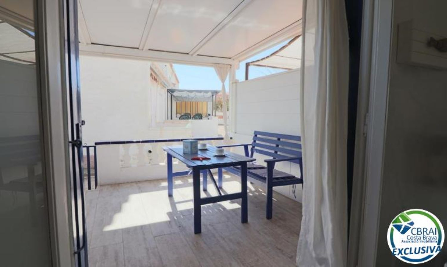 Cette charmante maison de 30 mètres carrés a été entièrement rénovée et offre des espaces ouverts, modernes et très lumineux. Au rez-de-chaussée, vous trouverez un salon-salle à manger relié à une cuisine ouverte, parfait pour se détendre et partager des moments conviviaux. Depuis le salon, vous accédez directement à la terrasse de 20 mètres carrés, orientée plein sud, qui garantit une lumière naturelle tout au long de la journée. La terrasse est également équipée d´une pergola, idéale pour profiter de l´extérieur à toute heure, même aux moments les plus ensoleillés. A l´étage, se trouve la chambre double avec sa salle de bain privée, offrant confort et intimité. La maison est vendue entièrement meublée, prête à être habitée dès le premier jour. Située dans le quartier paisible de Sant Maurici à Empuriabrava, la propriété se trouve à quelques minutes en voiture de la plage et à proximité des supermarchés, restaurants et transports publics. Bien que la maison ne fasse pas partie d´une copropriété, le terrain environnant est commun et dispose de places de parking pour votre voiture ainsi que pour celles de vos invités, un avantage non négligeable. Cette propriété est une excellente option, que ce soit pour un usage personnel ou pour un investissement en location saisonnière. Pour le prix d´un appartement, vous obtenez ici une maison indépendante sans frais de copropriété. C´est une opportunité unique à ne pas manquer !