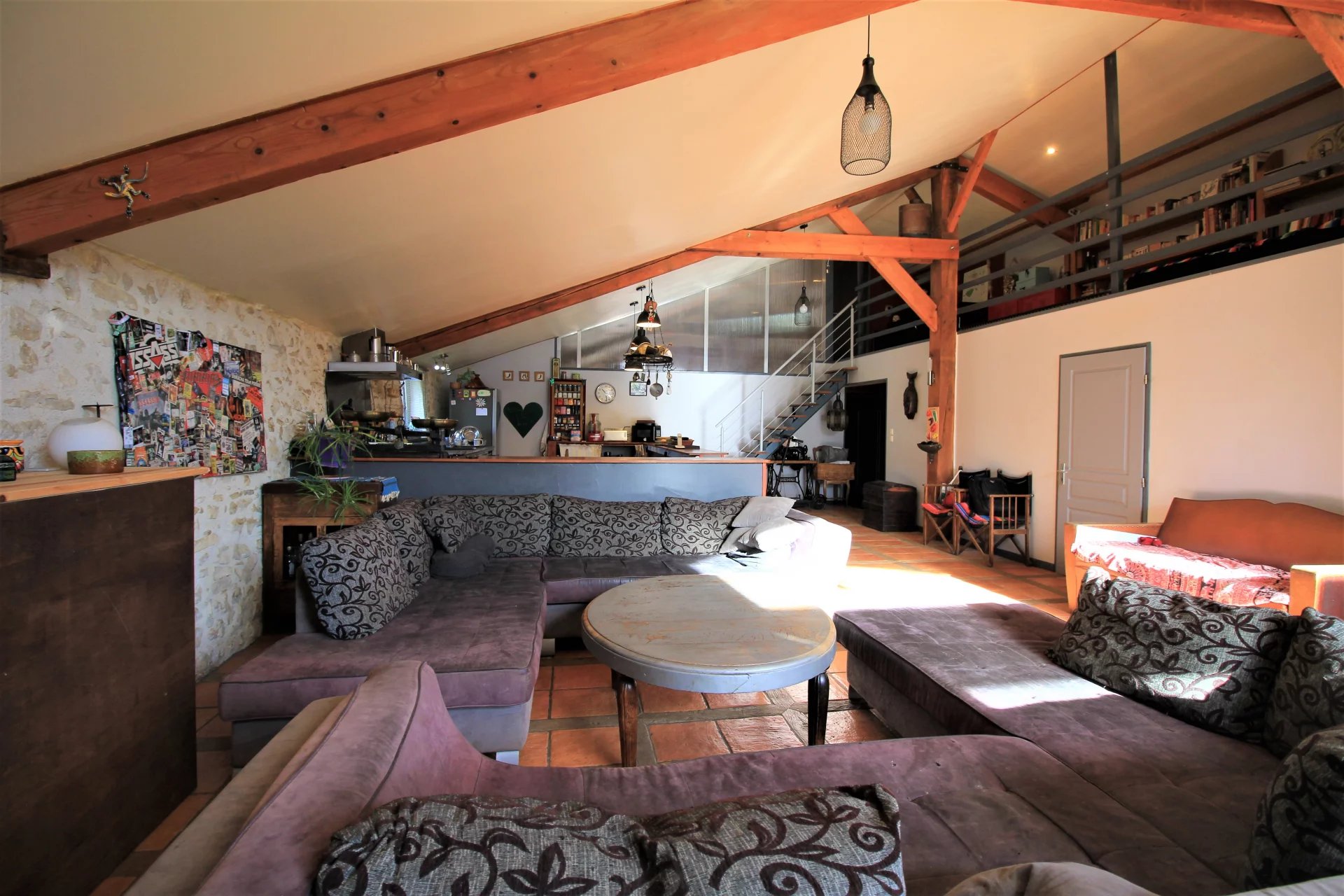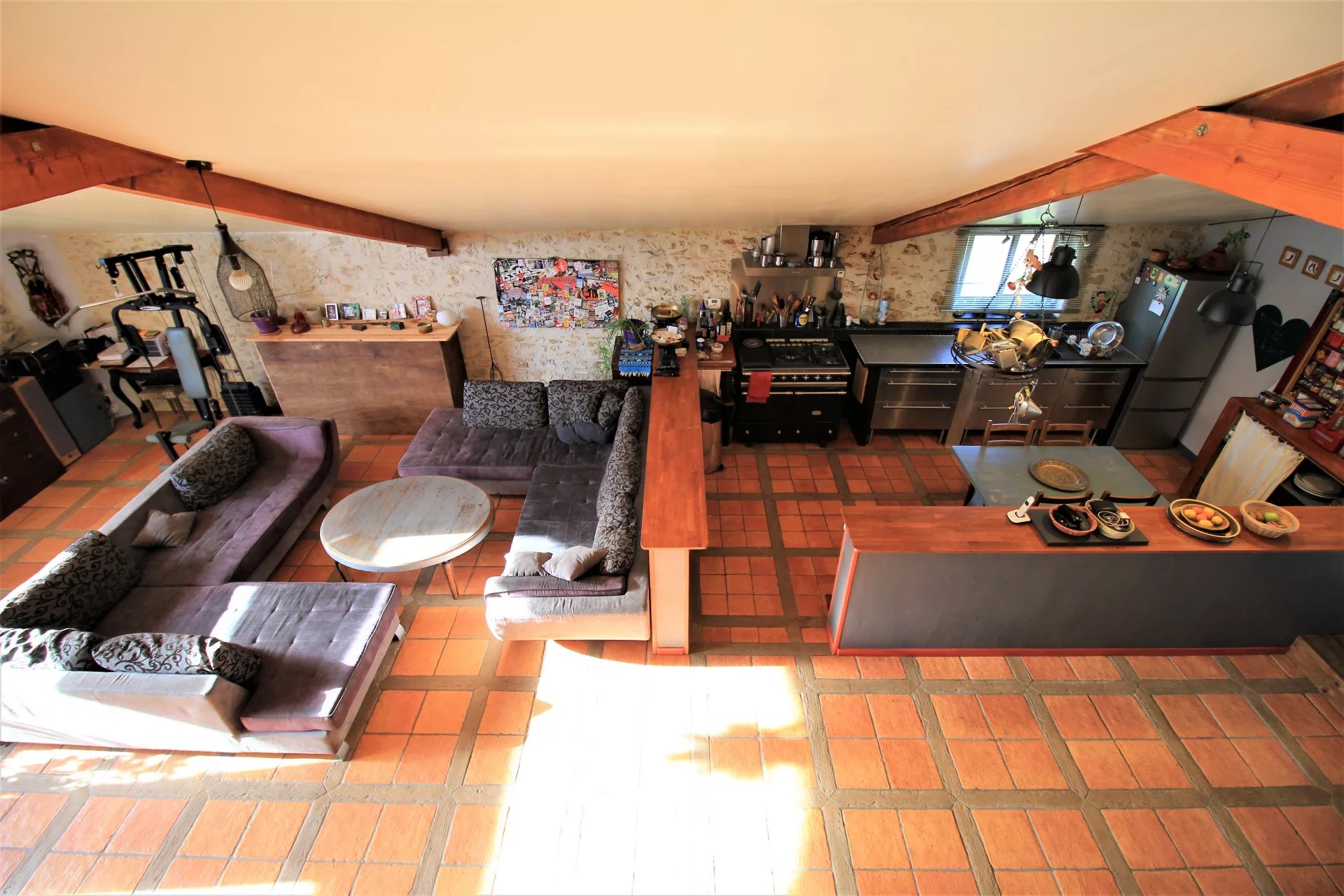 Superbe ensemble dans une campagne calme et verdoyante situé au bout d'une longue allée. Celui-ci comprend une première maison en pierre de 150m² sur 2 niveaux avec 2 chambres en rez-de-chaussée et 2 chambres à l'étage, 2 salles de bains, WC, cuisine, salle à manger, salon et un atelier attenant. La maison possède un chauffage central par aérothermie et des menuiseries double vitrage. Une belle terrasse en bois entoure la maison et donne sur une jolie piscine surplombant le terrain. De l'autre coté de la cour on trouve une deuxième maison en pierre (ancienne grange) de 200m², rénovée en 2007, comprenant 2 chambres en rez de chaussée dont une suite parentale avec terrasse privative, 1 salle d'eau, WC, une superbe pièce à vivre de 70m² avec cuisine ouverte, un espace détente et une chambre en mezzanine. La maison dispose d'une buanderie and espace atelier et un grand garage ouvert. La maison est équipée avec un chauffage au sol par aérothermie. Egalement sur la propriété on trouve une belle longère en pierre offrant de nombreuses possibilités (branchement réseaux déjà existant) et deux autres petites dépendances. Le tout sur un terrain d'environ 2.45 hectares comprenant un joli bois de chênes et une belle prairie. Le bien est située à proximité des commodités, sans nuisances ni voisins à proximité. Prix honoraires inclus : 572.400 € Prix honoraires exclus : 540.000 € Honoraires de 6 % TTC à charge acquéreur