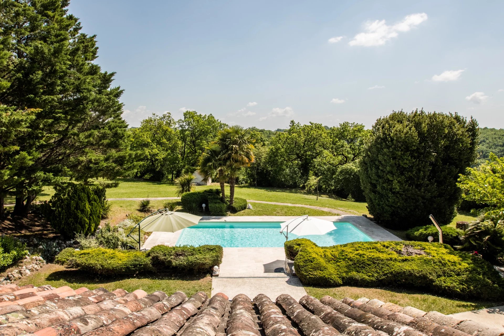 Incroyable vue dominante, cette propriété en pleine nature, chargée d'histoire avec ses éléments d'origine, tels que ses arbres bicentenaires et sa tourelle de guet, possède de multiples atouts. Le manoir du XIIIème se compose d'une cuisine, d'un spacieux salon avec cheminée, d'une salle à manger avec cheminée, d'une chambre, d'une salle d'eau/toilettes et d'une magnifique terrasse couverte avec vue sur la vallée. En rez-de-jardin se trouvent une chambre avec une superbe cheminée, salle de bains, bureau, toilettes, buanderie, et une terrasse couverte avec vue sur la vallée. Une première maison d'amis comprend un salon/salle à manger/cuisine, deux chambres, salle d'eau/toilettes, et bénéficie également d'un accès sur cour. Une seconde maison d'amis comprend une cuisine ouverte sur salon/salle à manger avec accès sur terrasse, salle d'eau/toilettes, deux chambres ainsi qu'une buanderie. Le bien dispose également d'un garage, d'un patio extérieur, avec son arche en pierre, très cosy pour les repas en famille. L'ensemble sur un parc arboré d'essences bicentenaires de 31256 m², avec une piscine au sel 12m x 6m et une source naturelle. Le chauffage du manoir est assuré par une chaudière au fuel et cheminées, et il bénéficie du double vitrage. Le chauffage des maisons d'amis est assuré par une pompe à chaleur avec chauffage au sol, elles sont équipées de volets roulants électriques et bénéficient du double vitrage.