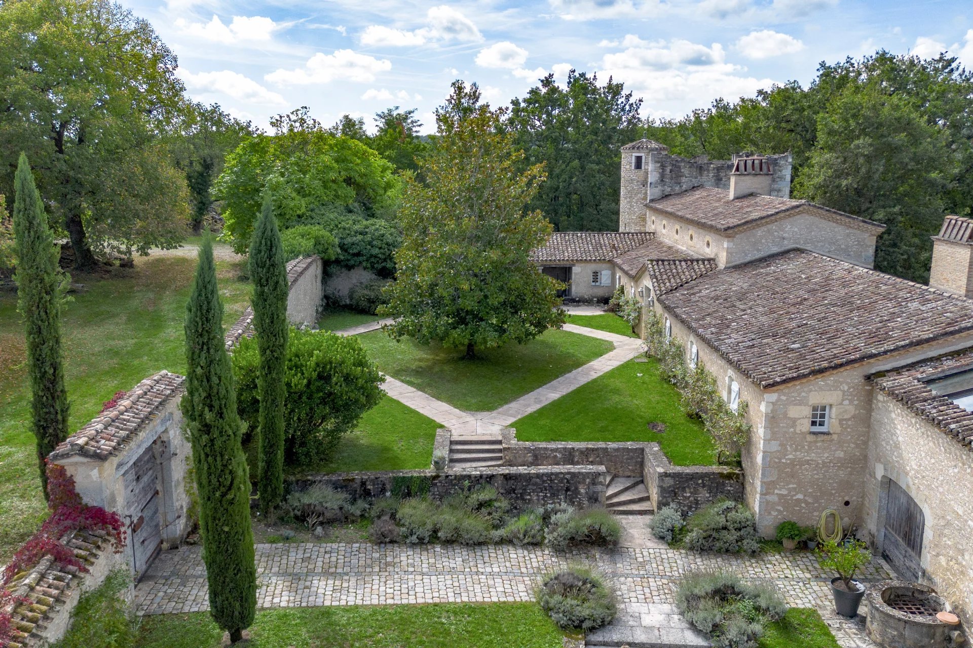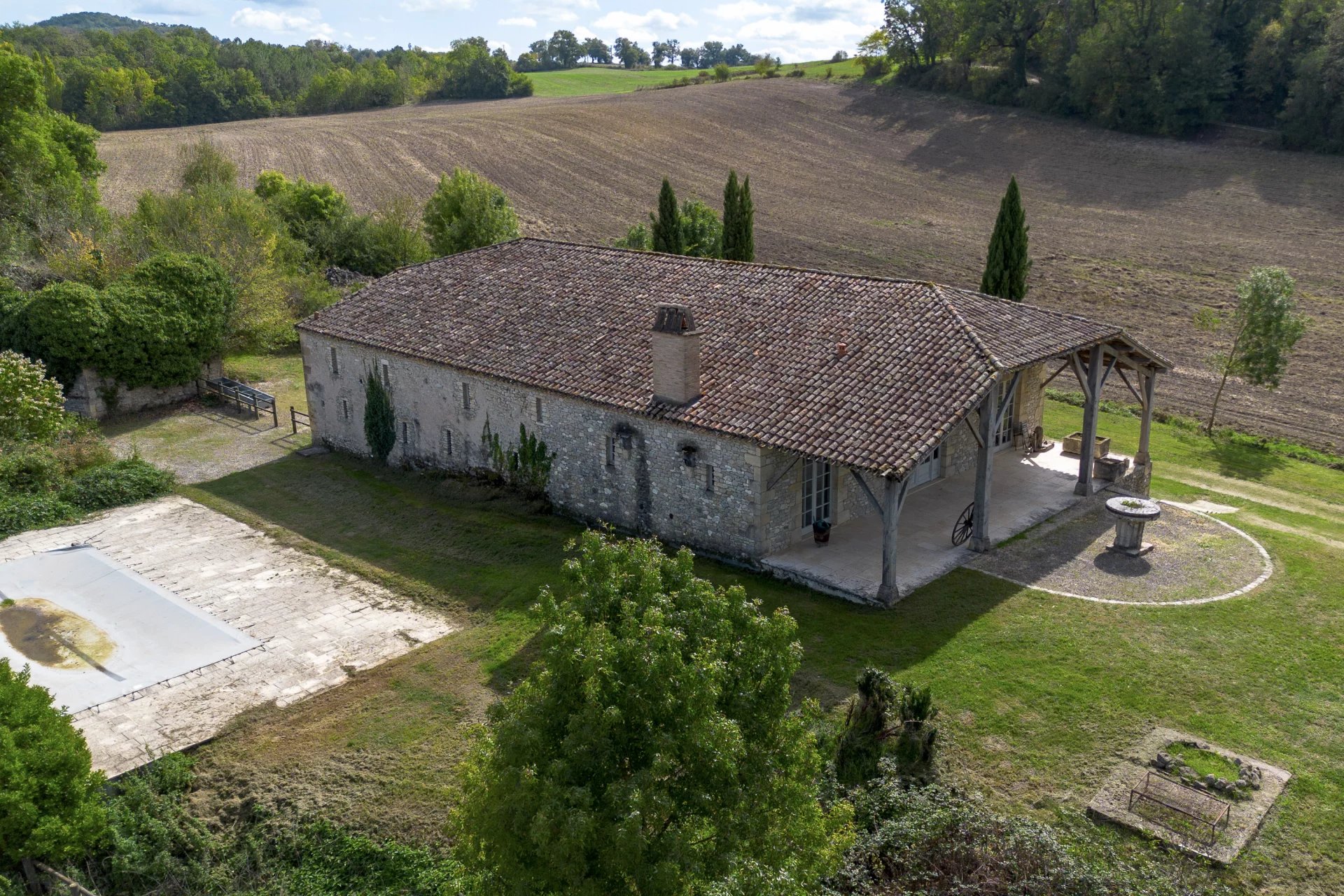 Perchée au sommet d'une colline douce et verdoyante, cette magnifique propriété entièrement restaurée de 850 m² marie harmonieusement le charme authentique à l’élégance contemporaine. Nichée au cœur de 68 hectares de nature préservée, elle offre des vues panoramiques à couper le souffle sur des prairies vallonnées et des champs de tournesols à perte de vue. Une maison de gardien de deux chambres avec grange attenante, ainsi qu’une maison d’amis, complètent cet ensemble d’exception. La propriété dispose également d’un vaste hangar de 2 200 m², pouvant être aménagée en manège couvert ou en écuries, ainsi que d’une piste de galop et d’un étang. L’accès au domaine se fait par une superbe allée privée bordée d’arbres, conférant dès l’entrée un sentiment de noblesse et de sérénité. Fruit de huit années de restauration minutieuse, les deux bâtiments agricoles d’origine ont été transformés en une demeure élégante en L, s’étendant sur plusieurs niveaux. Elle comprend huit chambres avec salles de bains privatives, de vastes pièces de réception, ainsi que plusieurs terrasses ensoleillées pour admirer le cadre bucolique. Une superbe piscine vient parfaire cet ensemble harmonieux. Chaque détail témoigne du raffinement et du respect du patrimoine. Les propriétaires actuels ont su redonner vie à cette demeure en sublimant la pierre et la lumière, créant ainsi une véritable œuvre d’art rurale. Il est également possible d’acquérir (en supplément du prix de vente) une grange rénovée en maison de jockey, comprenant sept chambres, une piscine privée et cinq hectares de terrain — idéale pour accueillir des invités ou du personnel. Aéroports à proximité : Bergerac et Agen (45 minutes), Toulouse et Bordeaux (1 h 30).