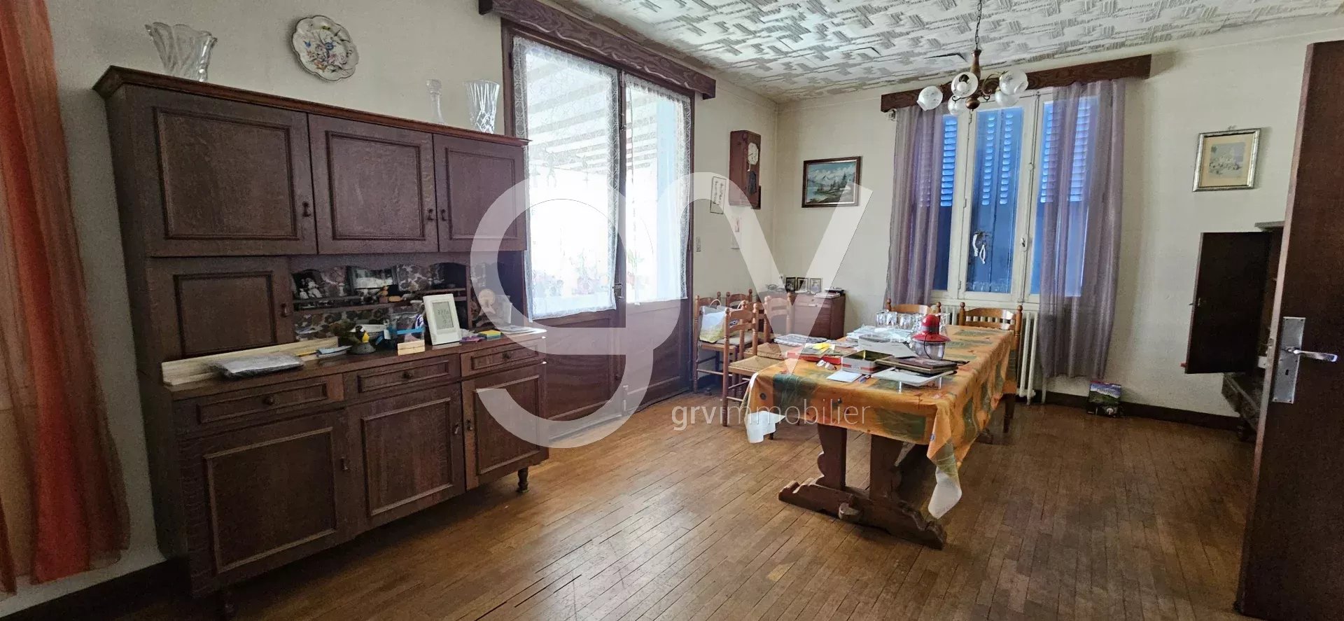 Travaux de rénovation à prévoir, mais la maison est grande, elle offre de beaux volumes et peut permettre un logement indépendant au RDC (éventuelle source de rapport locatif ou permettant d'y vivre soi-même le temps de restaurer la maison)