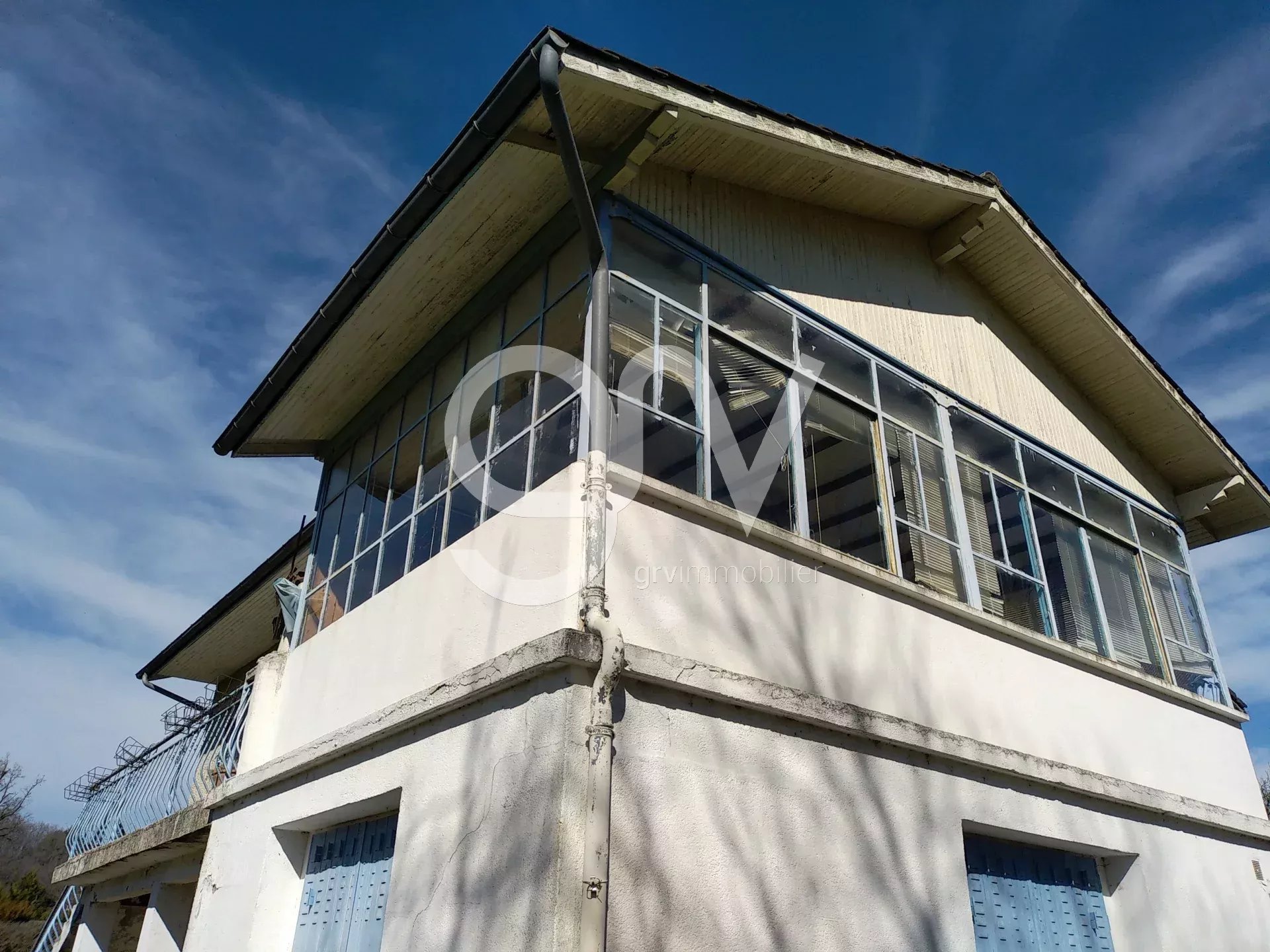 Maison avec soubassement en pierre, d'environ 100m2 par niveau, avec grand sous-sol et petit jardin attenant.