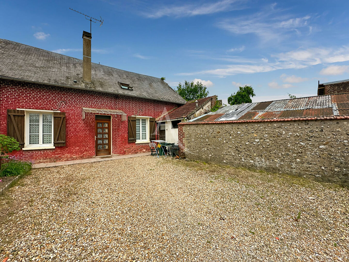 Proche ETREPAGNY Maison ancienne offrant : cuisine, salon-séjour avec véranda, second salon, salle de bains. A l'étage : palier, chambres parentale, 2 chambres. Dépendance de 80 m2 Cave Le tout sur 2702 m2 de terrain