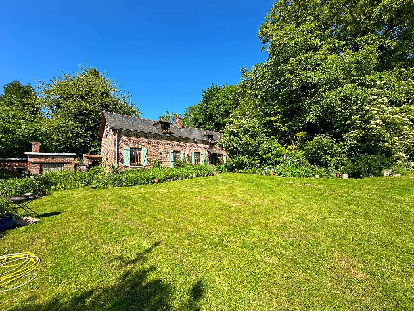 Dans un charmant village aux portes de Lyons la Forêt. Maison ancienne composée : Séjour salon de 48 m2, cuisine équipée , wc, salle d'eau , wc , chambre, bureau . A l'étage : belle pièce palière , deux chambres de plus de 20 m2, salle de bains, wc. Bureau , chaufferie . Dépendance. Jardin de 2330 m² DPE : D