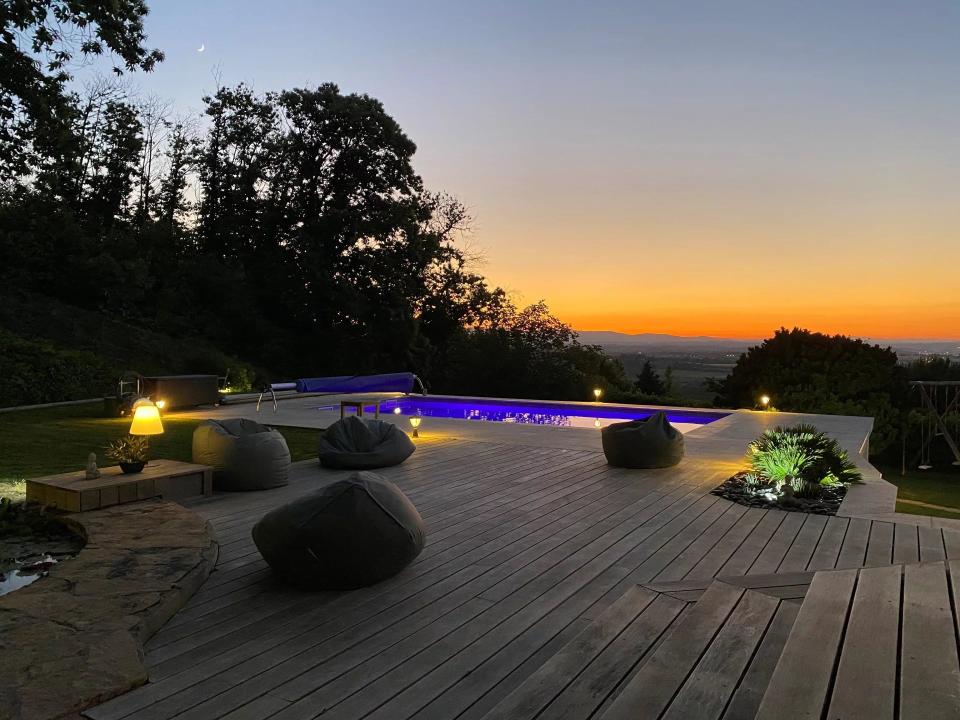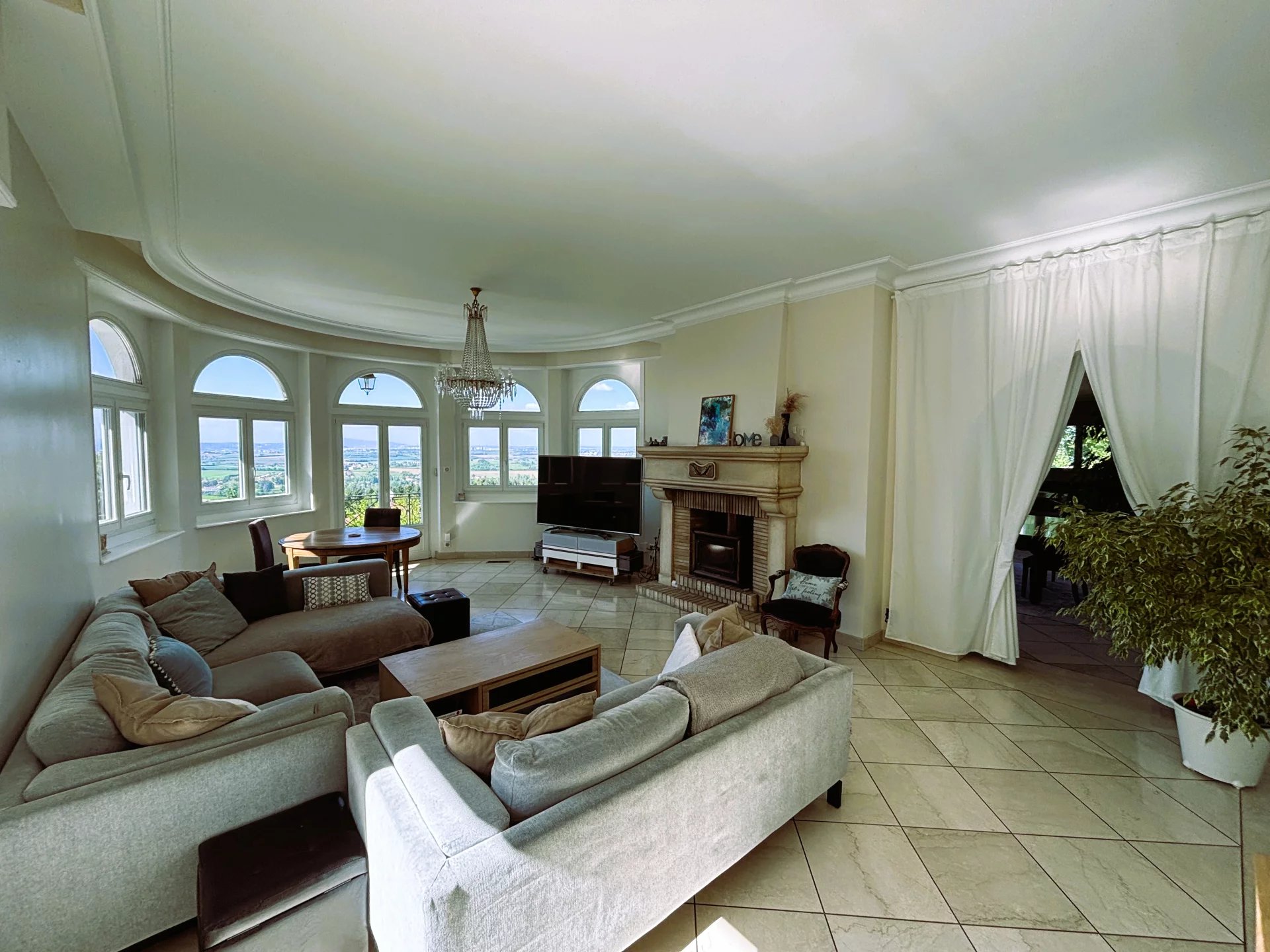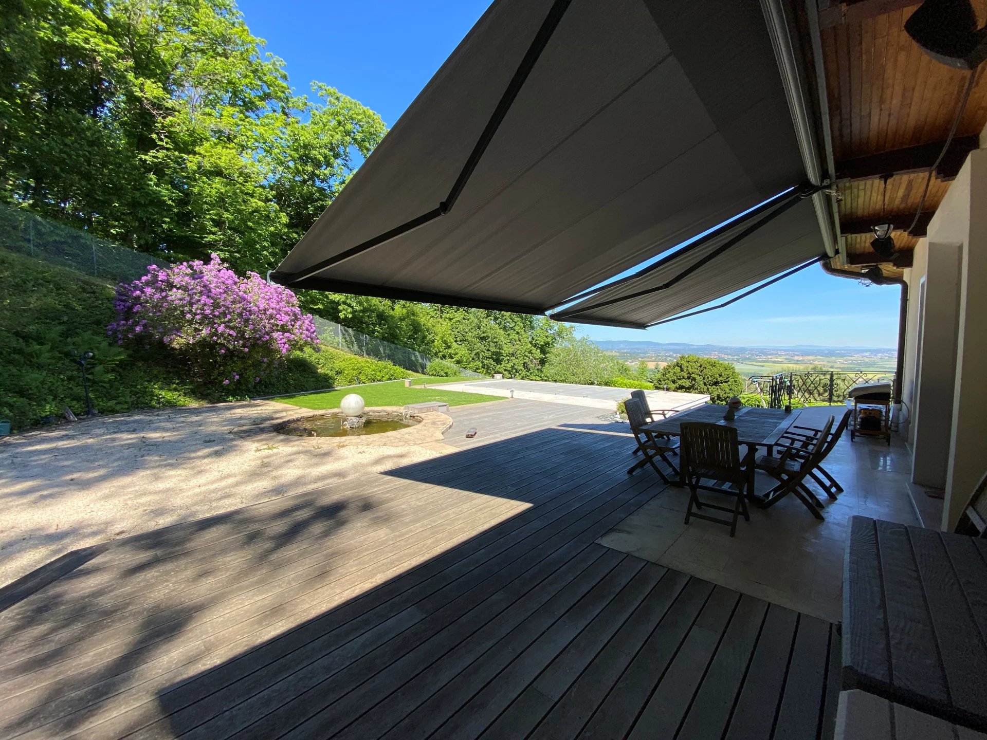* SOUS COMPROMIS * Nous avons le plaisir de vous présenter cette UNIQUE ET MAGNIFIQUE MAISON DE MAITRE bénéficiant d'une VUE PANORAMIQUE EXCEPTIONNELLE Nichée sur les hauteurs de la commune de Simandres, à 20mn de Lyon, SANS VIS-A-VIS et AU CALME, elle offre une surface habitable de 280m² (400m² au sol) avec de généreux espaces alliant charme et modernité: Niveau 1: Une pièce de vie d'environ 85m², une cuisine ouverte équipée, une grande suite parentale avec dressing et salle d'eau attenante, un bureau, WC séparés Niveau 2: 3 grandes chambres, une salle de bains avec douche et baignoire, des espaces de rangement, WC séparés En plus et en RDJ: un T1 totalement équipé de 44m² avec cuisine, salle d'eau et WC (pouvant également convenir pour un espace professionnel), un double garage (46m²), un atelier de 41m², une buanderie et 2 caves. L'extérieur de 4344m² arboré et aménagé avec soins dispose d'une belle piscine récente au sel et chauffée, une grande terrasse en bois et pierre, un bassin zen et des éclairages chaleureux. Il offre une vue imprenable sur Lyon et sa région. Les équipements sont nombreux et les matériaux de qualité: Toiture en ardoise, marbre, parquets massifs, panneaux photovoltaïques, PAC réversible, cheminée à foyer fermé, menuiseries triple vitrage, isolation refaite, domotique sur les équipements électroniques, vidéo surveillance, portail et portes de garages motorisés, stores, puits et arrosage intégré, parking extérieur...
