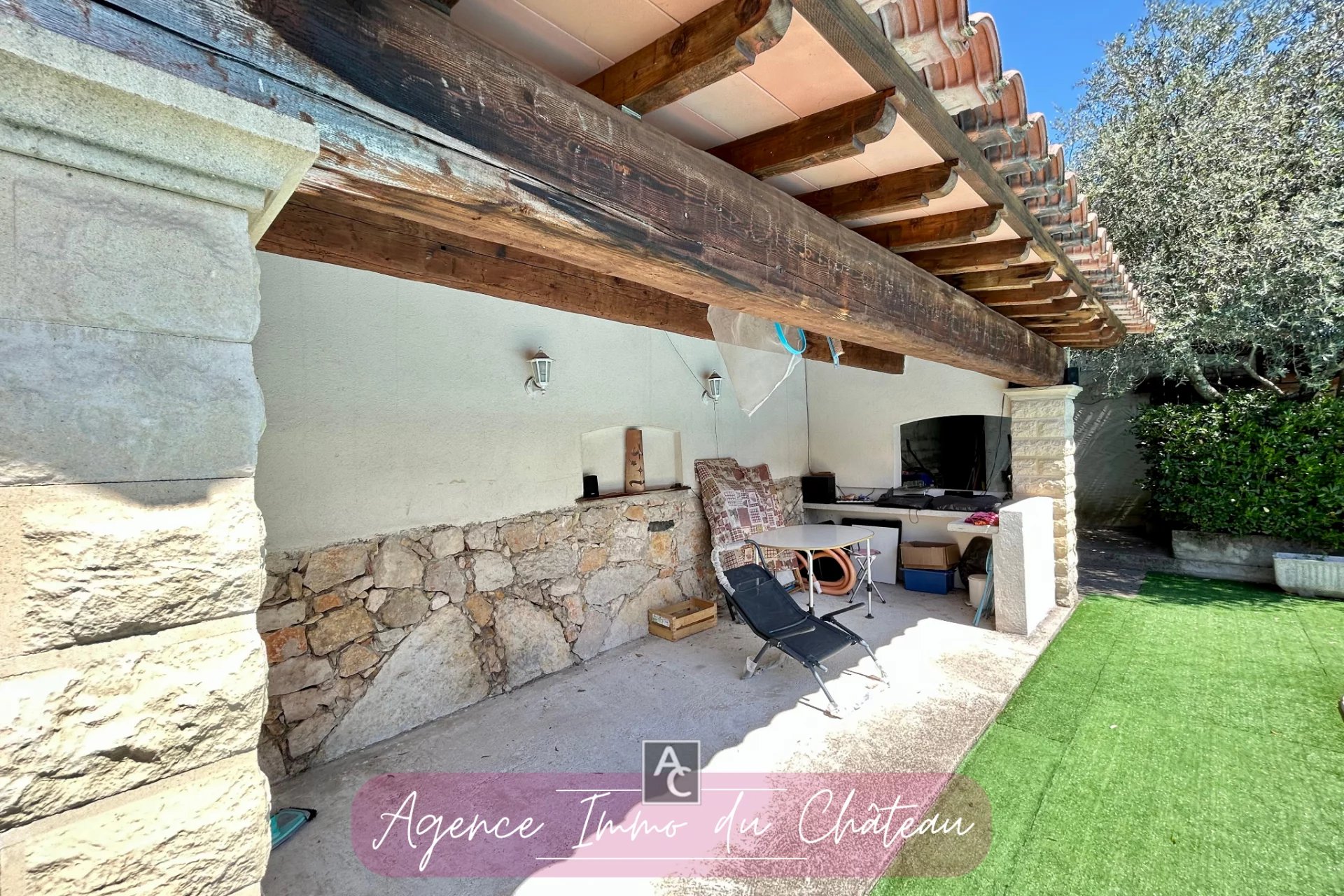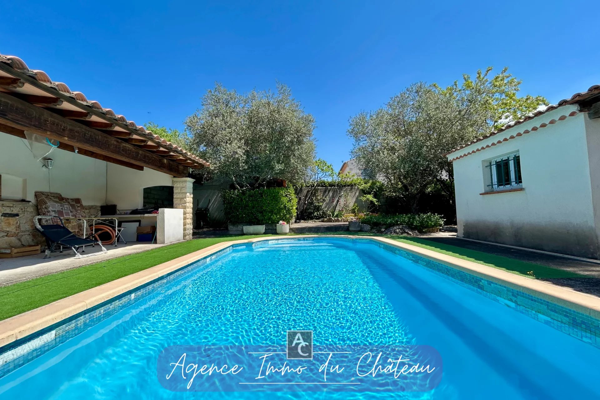 Maison 5 pièces – 127 m² – CAMPS-LA-SOURCE Calme, espace et potentiel à deux pas du village ! Située dans un environnement paisible, à proximité immédiate du centre du charmant village de Camps-la-Source, cette maison des années 80 saura séduire les amateurs de tranquillité. Elle se compose d’un hall d’entrée, d’un vaste séjour avec cheminée, d’une véranda idéale pour profiter de la lumière toute l’année, et d’une cuisine aménagée et équipée donnant accès à une agréable terrasse couverte. L’espace nuit propose quatre chambres, deux salles d’eau et deux WC séparés, offrant un confort optimal pour toute la famille. À l’extérieur, vous bénéficierez d’un terrain arboré et clôturé de 1 478 m², avec un garage d’environ 19 m², un atelier et un espace piscine avec poolhouse, parfait pour les beaux jours ! Des travaux de rafraîchissement sont à prévoir pour mettre la maison à votre goût. Chauffage central au gaz – raccordement au tout-à-l’égout. Villa actuellement louée, fin du bail 17/07/2026. Honoraires à la charge du vendeur. À visiter sans tarder avec l’Agence du Château !