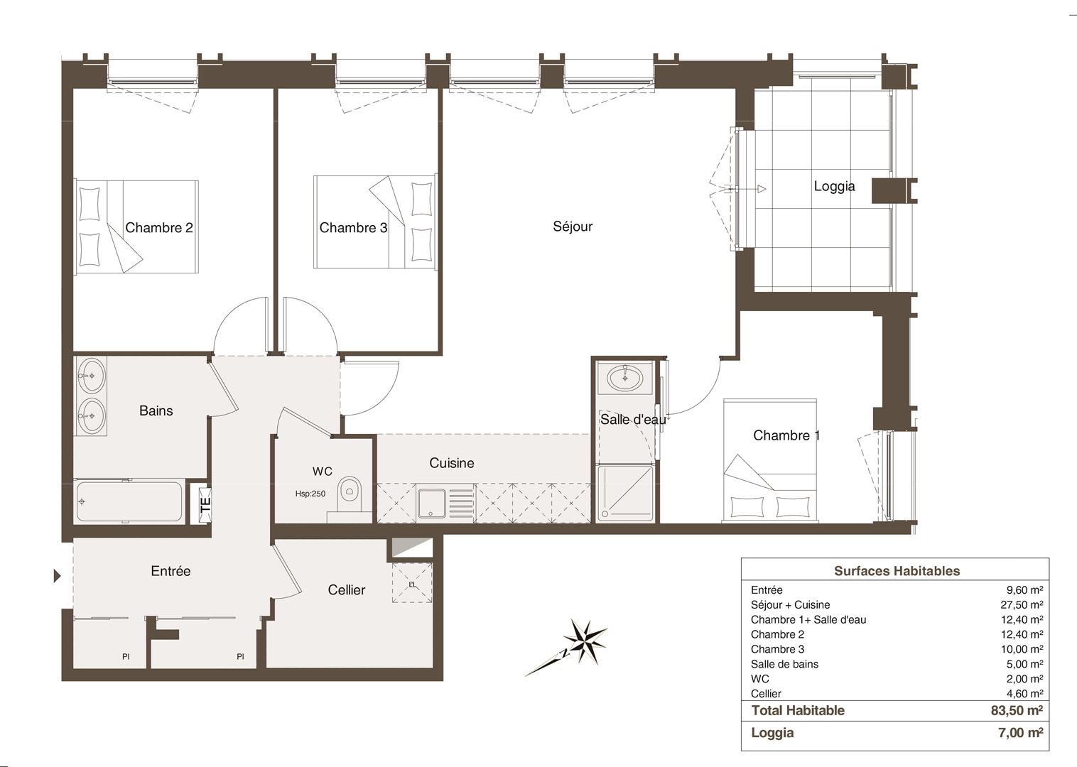 Appartement T4 neuf, dans une résidence de standing, entre le centre-ville de Bordeaux et le parc Bordelais. Situé au 2 ème étage et d'une superficie de 84 m², il offre un séjour-cuisine de 28 m², ouvrant sur une loggia, trois chambres de 10 à 12.40 m² dont une avec salle d'eau privative et une salle de bain. Conforme à la norme HPE rénovation 2009, il est équipé d'un chauffage électrique par radiateurs à inertie et dispose d'une place de stationnement au sous-sol. Le parc bordelais les commerces et le tram D sont à moins de 500 m. Travaux en cours, il sera disponible fin 2026. Taxe foncière 1930 euros, charges mensuelles 140 euros, honoraires à la charge du vendeur. Les informations sur les risques auxquels ce bien est exposé sont disponibles sur le site Géorisques : www.georisques.gouv.fr.