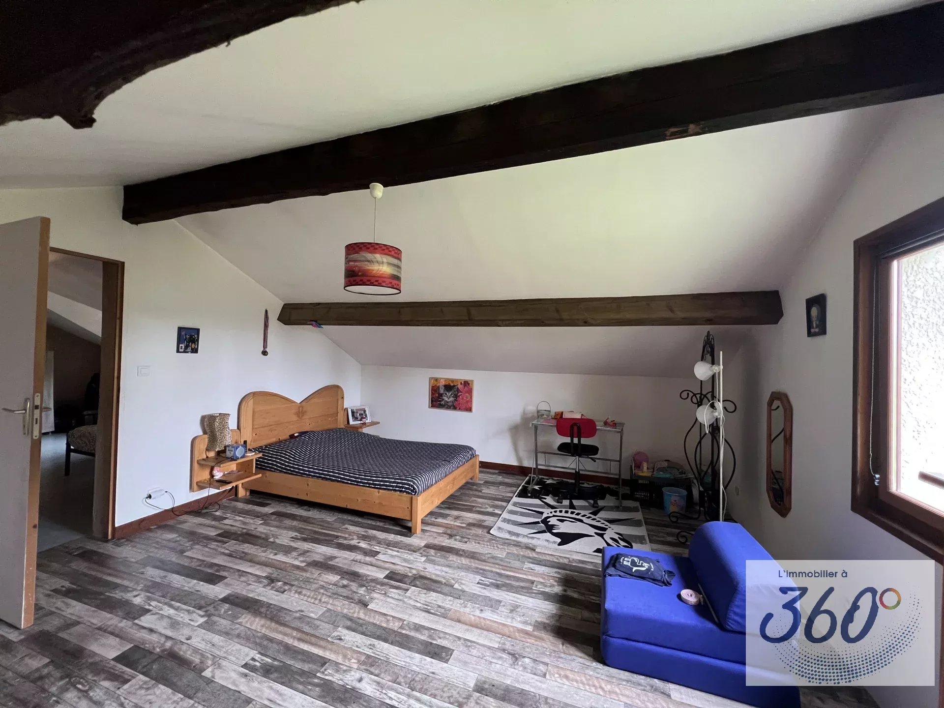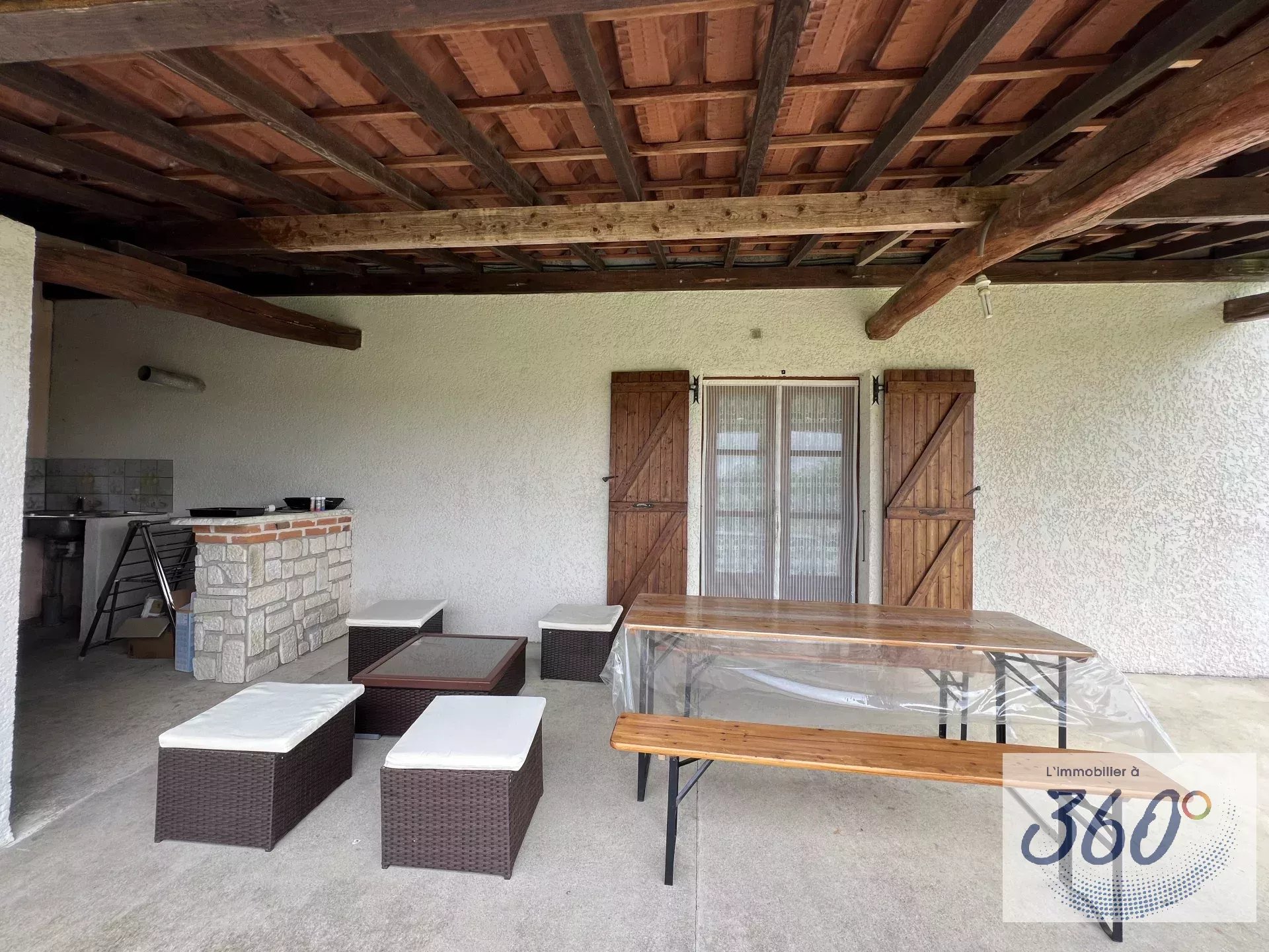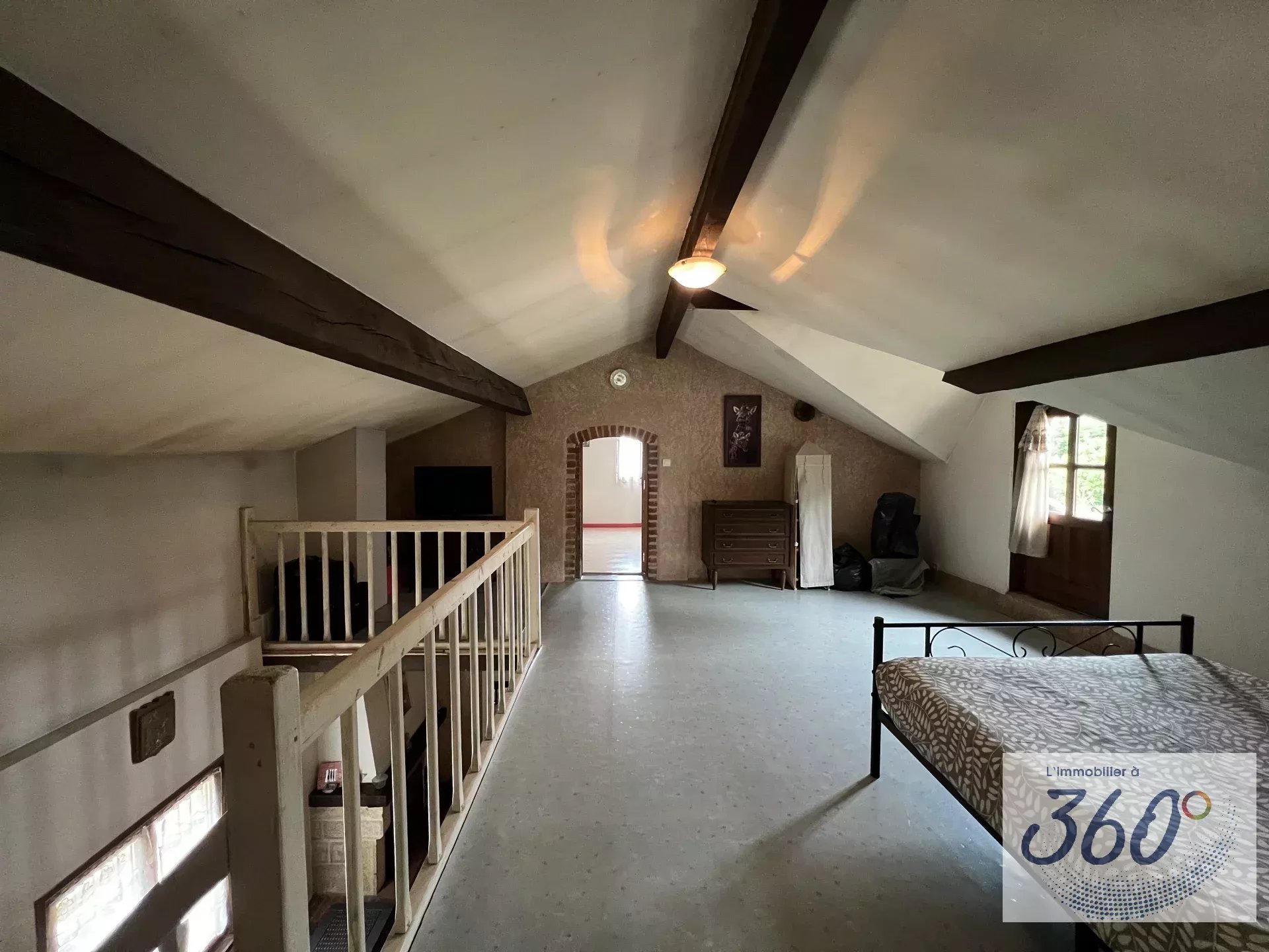 L'immobilier à 360° vous présente cette belle maison d'environ 130 m², idéalement située à proximité des commodités et de la sortie d'autoroute, offrant un cadre paisible et authentique. A l'intérieur: Cette propriété dispose de deux chambres spacieuses, avec la possibilité d'en aménager une supplémentaire, ce qui en fait un espace idéal pour les familles ou les professionnels à la recherche de flexibilité. Maison lumineuse et agrémentée d'une cheminée accueillante et d'un poêle à granulés performant, créant une atmosphère chaleureuse pour des moments de détente. Les commodités sont au rendez-vous, incluant du double vitrage pour un confort thermique et une connexion Internet à haut débit grâce à la fibre optique, garantissant une connectivité sans faille. À l'extérieur: Vous serez séduit par un terrain généreux d'environ 5000 m², offrant de nombreuses possibilités d'aménagement paysager et un espace idéal pour des activités en plein air, ainsi que pour les amoureux des animaux. La cour clôturée assure sécurité et intimité, faisant de cet espace un véritable havre de paix. La propriété comprend également un four à pain, un garage et un carport pratique pour protéger vos véhicules des intempéries et pour le rangement. Que vous recherchiez une résidence principale ou une maison de vacances, cette propriété représente une opportunité d'acquérir un bien. Nous vous invitons à nous contacter dès aujourd'hui pour organiser une visite et découvrir tout le potentiel de cette maison.