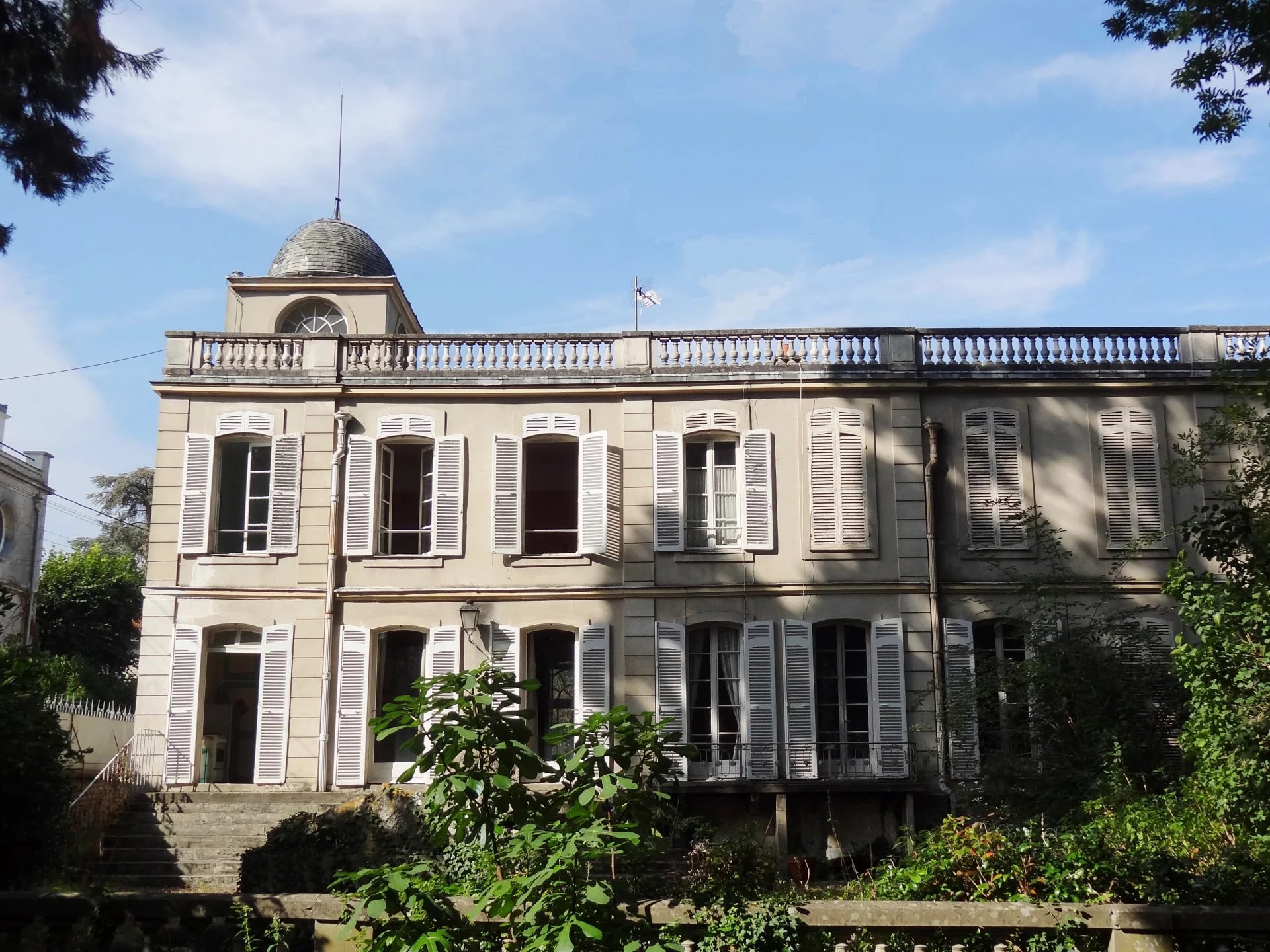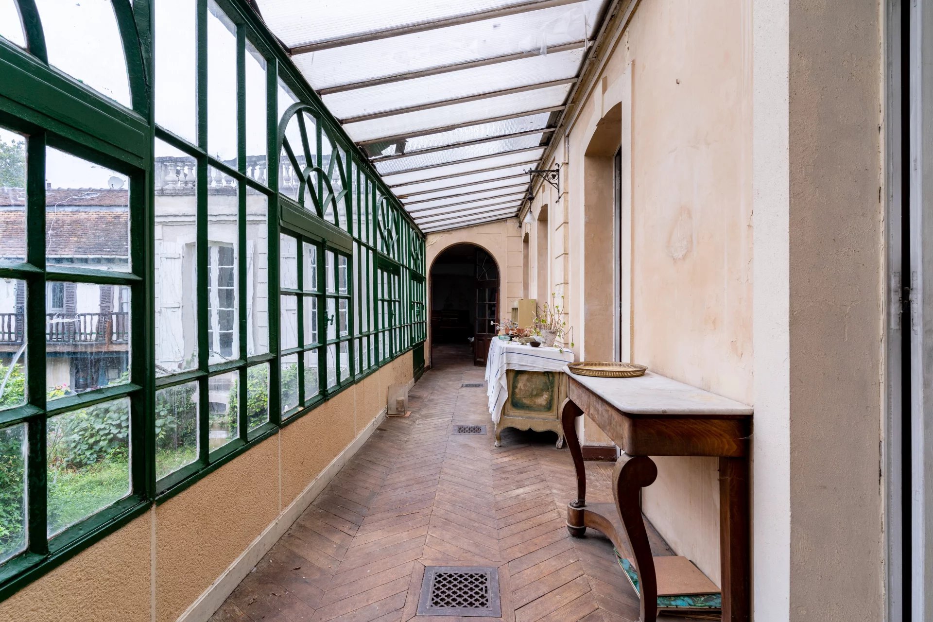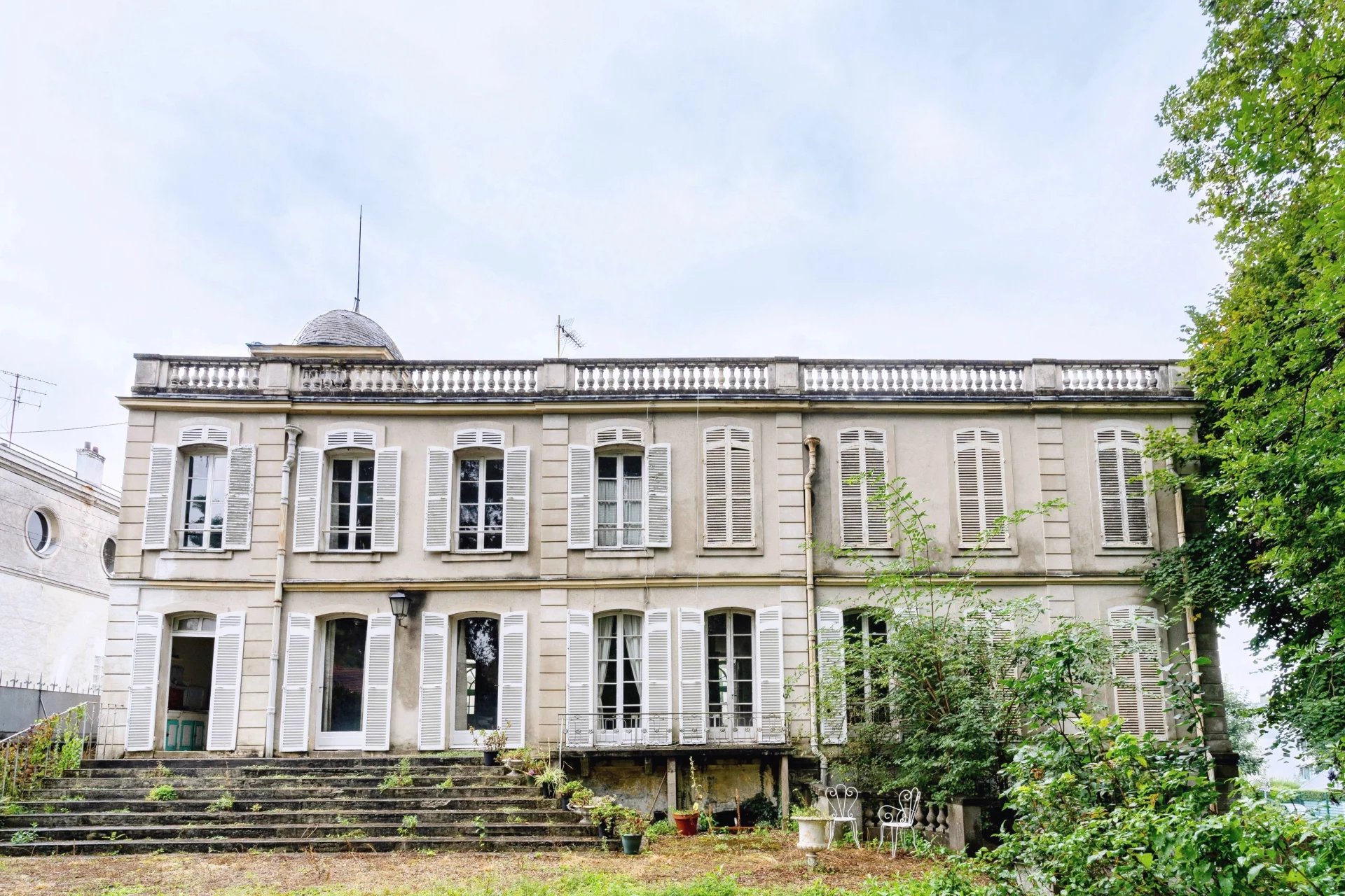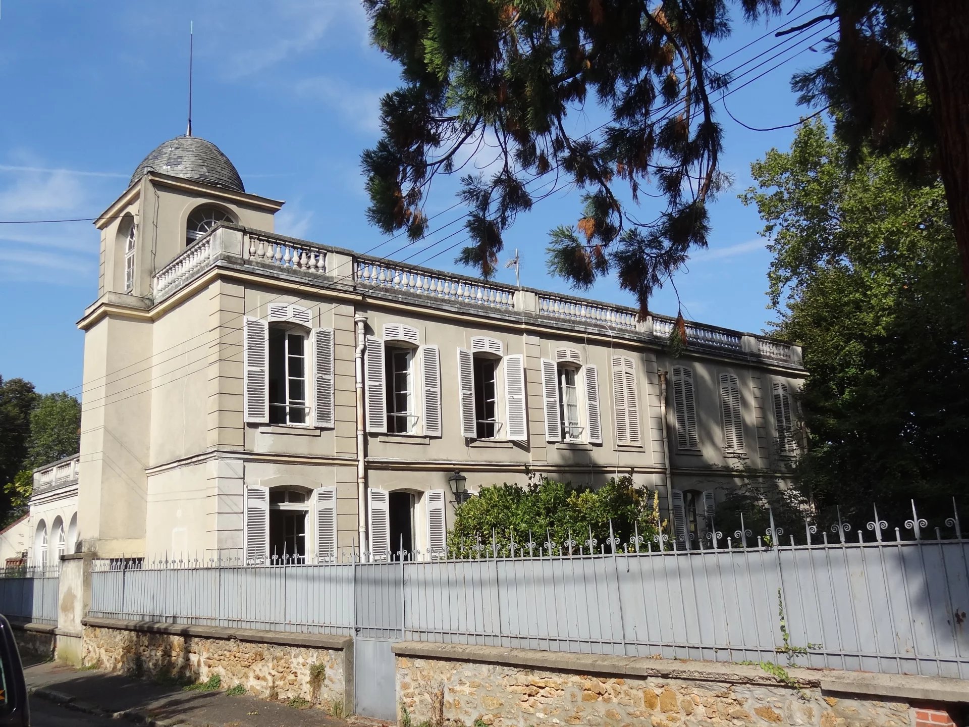 Dans un secteur résidentiel, hôtel particulier du début du XIXème siècle développant 320m2 habitables, édifié sur un parc arboré de 4334m2. L’entrée se fait par un corridor desservant, côte jardin, la salle à manger donnant d’un part sur la cuisine, d’autre part sur un bureau. Côté cour, une galerie permet d’accéder à un grand salon / bibliothèque avec un dôme vitré, puis une immense salle de réception ou atelier d’artiste avec une hauteur sous plafond correspondant à deux niveaux, comprenant une magnifique verrière art-déco, un escalier et une mezzanine en surplomb de la pièce. La plupart des éléments d’époque, dallages, parquets, moulures, boiseries, cheminées...ont été conservés. A l’étage, trois chambres, une salle de bain, un dressing, puis l’escalier se prolonge vers un belvédère donnant accès à un grand toit terrasse. En sous sol, un grand espace de garages, un atelier, une cave à vin... Le parc paysagé comprends des arbres centenaires, une belle végétation, un bassin en pierre avec une statue ancienne. Une jolie maison de gardien d’époque XVIIIème, comprenant un logement sur deux niveaux et des remises en rez-de-jardin vient compléter l’ensemble situé à 700m du centre-ville, 1km de la gare pour Paris Gare de Lyon en 30 min, 24 km de Paris. D’importants travaux de rénovation sont à prévoir. Pas de possibilités de divisions pour des terrains à bâtir.