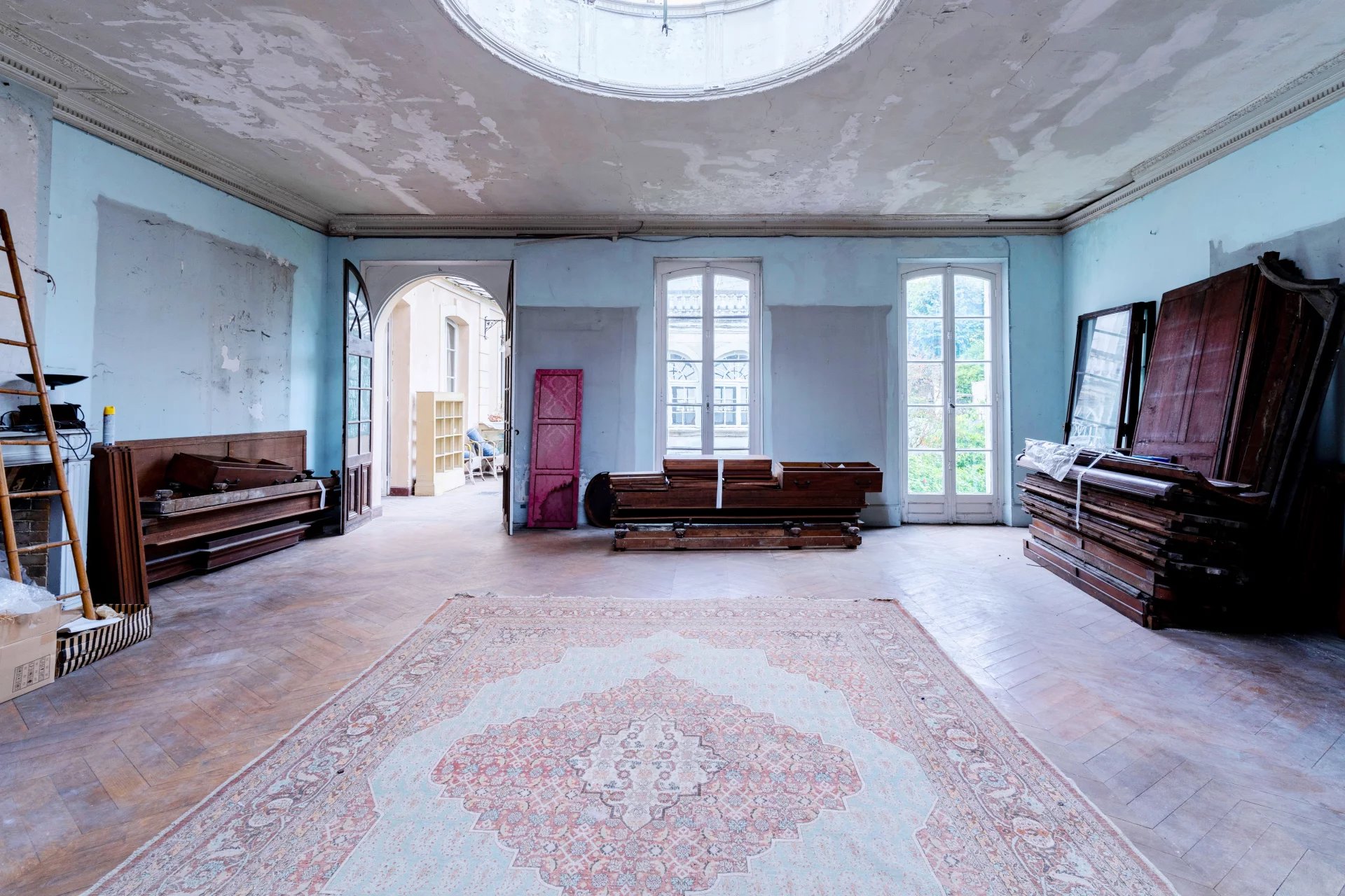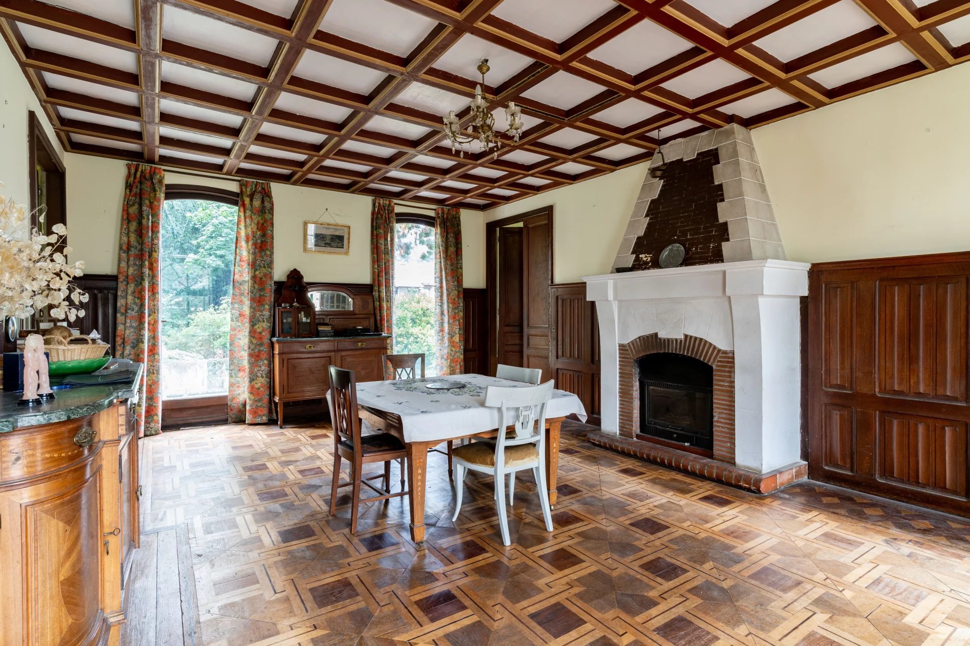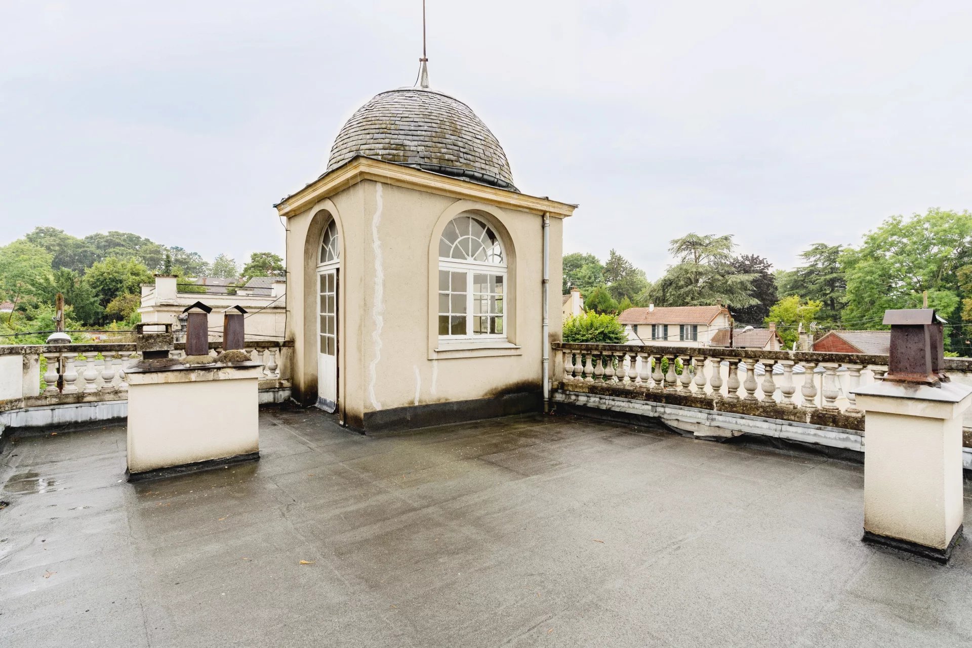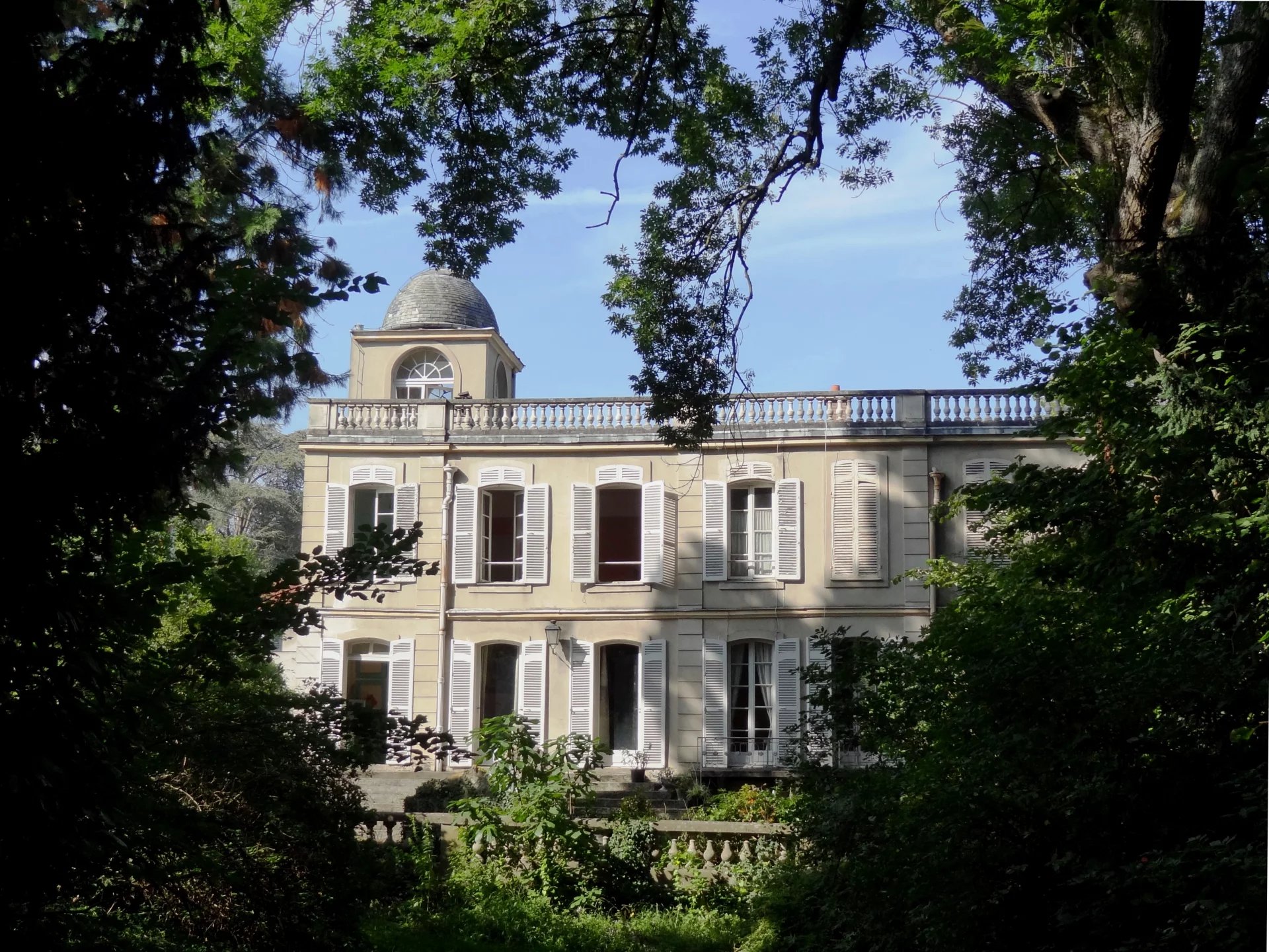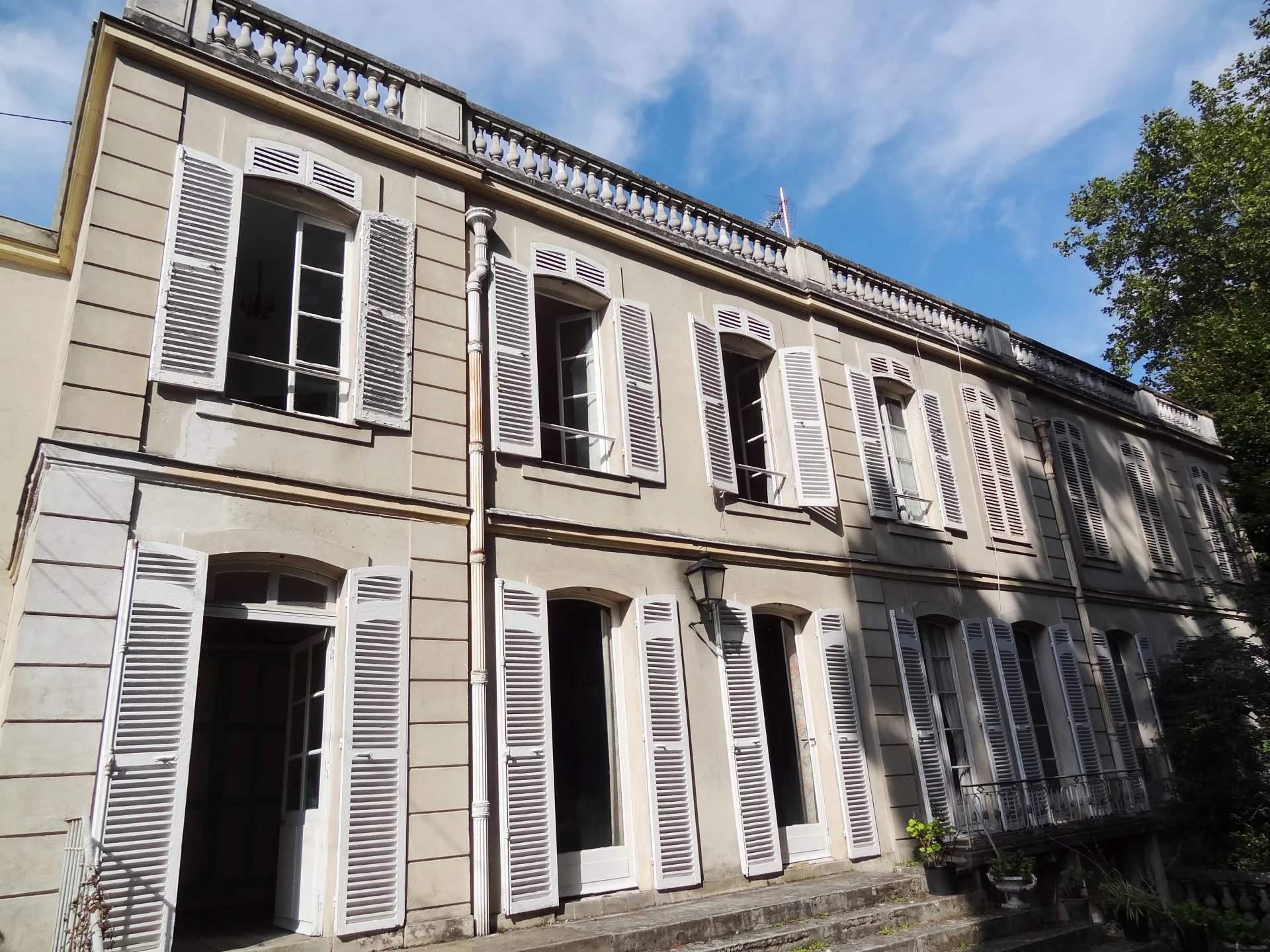 Dans un secteur résidentiel, hôtel particulier du début du XIXème siècle développant 320m2 habitables, édifié sur un parc arboré de 4334m2. L’entrée se fait par un corridor desservant, côte jardin, la salle à manger donnant d’un part sur la cuisine, d’autre part sur un bureau. Côté cour, une galerie permet d’accéder à un grand salon / bibliothèque avec un dôme vitré, puis une immense salle de réception ou atelier d’artiste avec une hauteur sous plafond correspondant à deux niveaux, comprenant une magnifique verrière art-déco, un escalier et une mezzanine en surplomb de la pièce. La plupart des éléments d’époque, dallages, parquets, moulures, boiseries, cheminées...ont été conservés. A l’étage, trois chambres, une salle de bain, un dressing, puis l’escalier se prolonge vers un belvédère donnant accès à un grand toit terrasse. En sous sol, un grand espace de garages, un atelier, une cave à vin... Le parc paysagé comprends des arbres centenaires, une belle végétation, un bassin en pierre avec une statue ancienne. Une jolie maison de gardien d’époque XVIIIème, comprenant un logement sur deux niveaux et des remises en rez-de-jardin vient compléter l’ensemble situé à 700m du centre-ville, 1km de la gare pour Paris Gare de Lyon en 30 min, 24 km de Paris. D’importants travaux de rénovation sont à prévoir. Pas de possibilités de divisions pour des terrains à bâtir.