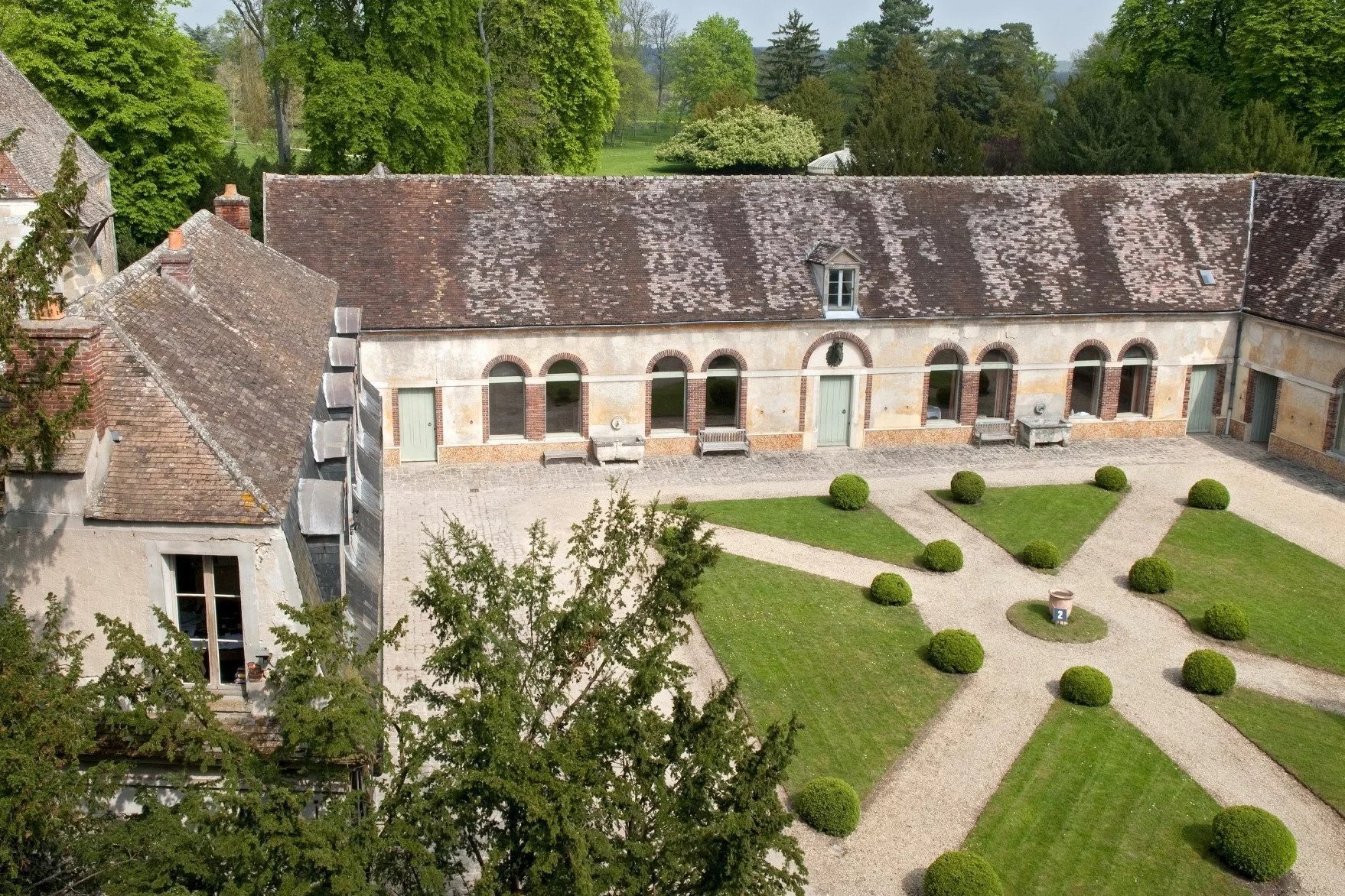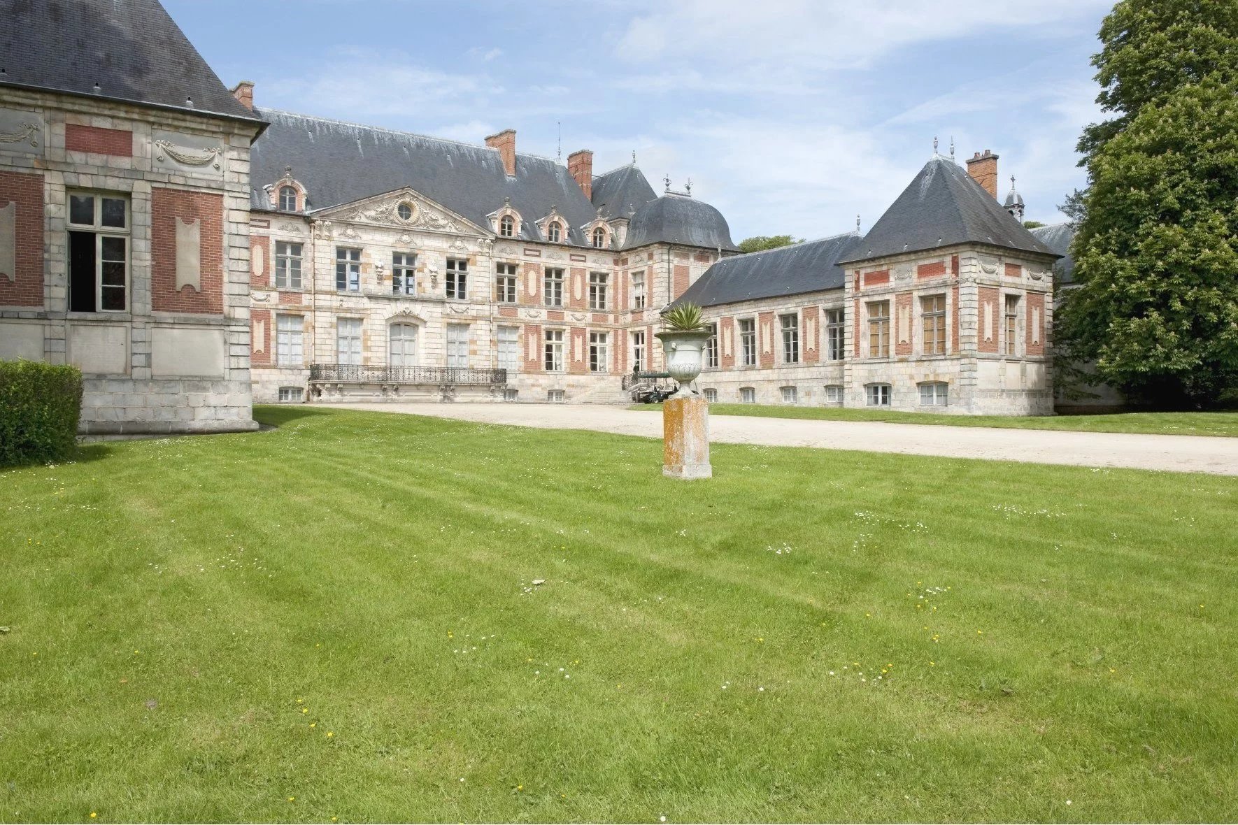 A 35 km au sud de Paris, Chateau du XVIIème siècle classée Monument Historique édifié sur un parc de 45 hectares labellisé « jardin remarquable ». Ce château dont les origines remontent au XVIème siècle, sous forme de manoir, a été fortement remanié au XVIIème siècle puis étendu au XIXème siècle pour un ensemble tel que nous pouvons le découvrir de nos jours. Les jardins à l'anglaise, agrémentés par une grande pièce d'eau, contribuent à la renommée du lieu. Le château est constitué d'un grand corps central et deux ailes basses donnant sur la cour d'honneur. Au sud, une extension dite, « le petit château » avec sa cour intérieure a été réalisée au XIXème. Les pièces de réception en enfilade bénéficient d'une double orientation cour d'honneur et jardins. En partie centrale le monumental salon dit "à l'italienne", d'origine du 17ème siècle, s'étend sur 17m de long et deux niveaux et se caractérise par ses volumes et ses décors exceptionnels. Accessible par le grand escalier de l'aile sud, une vaste salle à manger, un salon et un appartement privatif. Dans les étages supérieurs, un total de 14 chambres sur cette partie du château. Les dépendances, faisant face au château au nord, totalisent une surface de plus de 700 m² comprenant d'anciennes écuries converties en salles de réception, deux appartements, une chapelle du XVIIIème, garages et remises. Plus loin un château d'eau de 1640 avec son installation hydraulique remarquable. Deux pavillons d'environ 100m² chacun encadrent l'entrée de la propriété; dans le parc, deux serres du 19ème siècle et une gloriette. L'ensemble est situé dans un secteur de campagne au calme à 35 km de Paris par la N118 ou Autoroute A10, 30 km d'Orly, 20 km de Massy TGV.