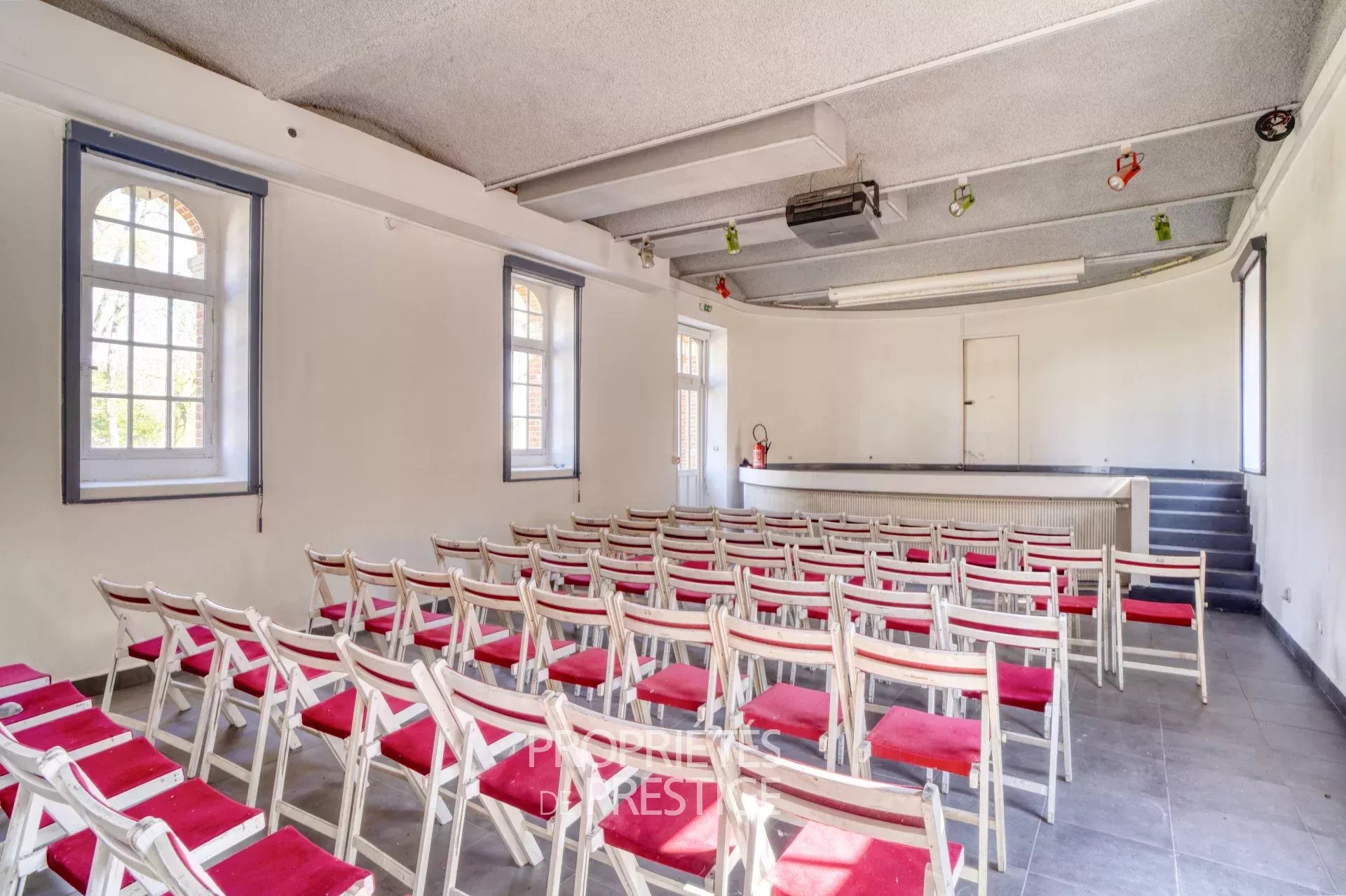 Dans un petit village à 23 km de Fontainebleau, propriété de 12,5 hectares composée de : - un château de XVIIIème siècle comptant 54 pièces sur 1850m² habitables, comprenant, en RDC : hall d’entrée, accueil, 2 salles de réception, salle de bal, cafétéria, cuisine professionnelle, sanitaires; au 1er étage : salle de billard, bureau/bibliothèque, 13 chambres familiales avec salle de bain et mezzanine ; au 2ème étage : 19 chambres avec salle de bain ; en sous-sol : cave, cellier, stockages - un corps de bâtiment annexe, anciens communs, comptant 35 pièces sur 1000m² habitables comprenant, en RDC : lingerie, bureau, salle de formation, salle de réunion, salle de spectacle, salon cheminée, salle de sport, sauna ; à l’étage : salle de formation, 2 studios, 9 chambres avec salle de bain, un appartement 5 pièces, un appartement 3 pièces - un bâtiment de 190m² comprenant stockage, chaufferie, atelier Une parcelle de 6000m² du terrain est constructible pour des projets professionnels. Situé à 5 km de tous commerces et SNCF pour Paris Gare de Lyon.