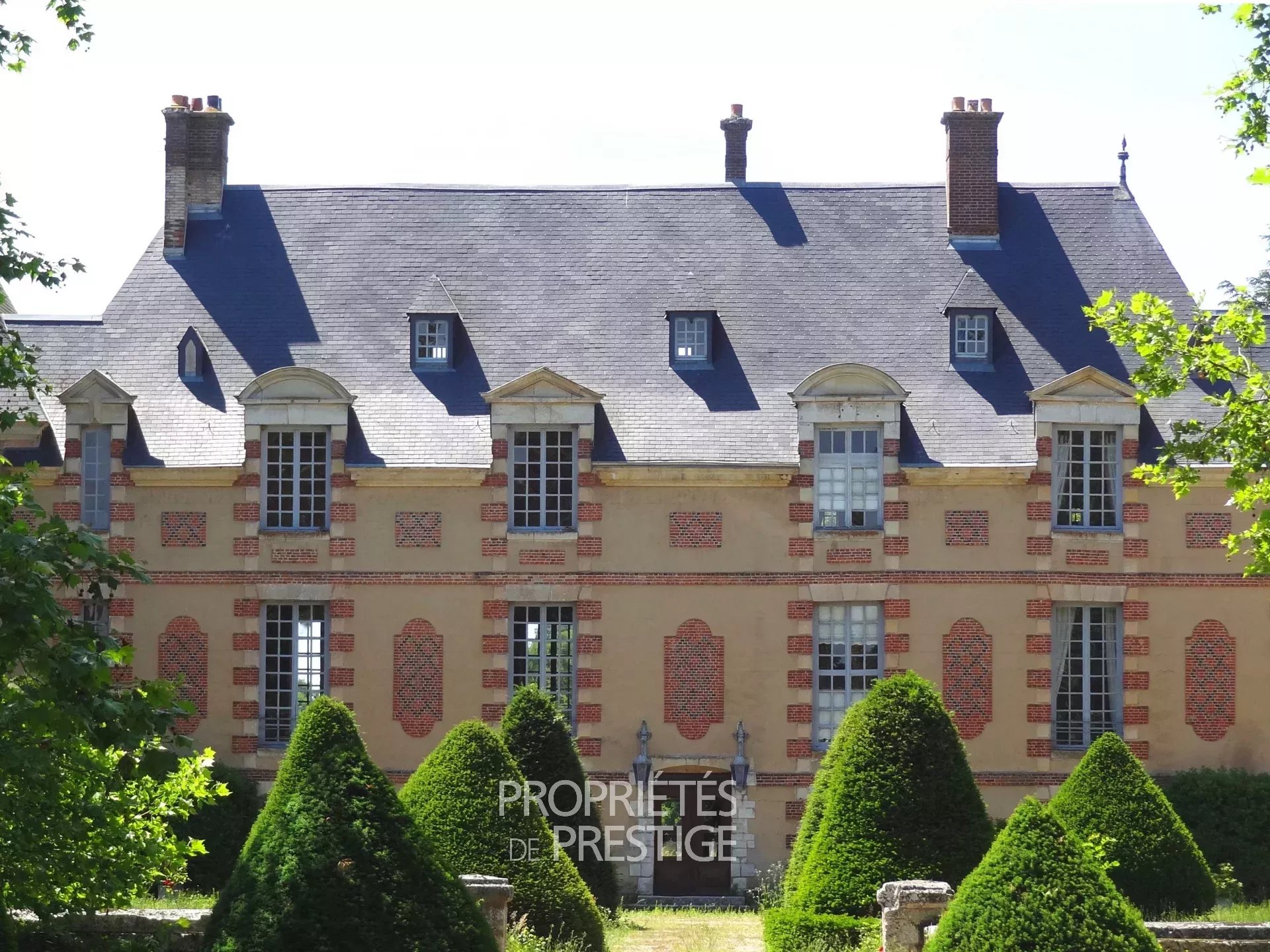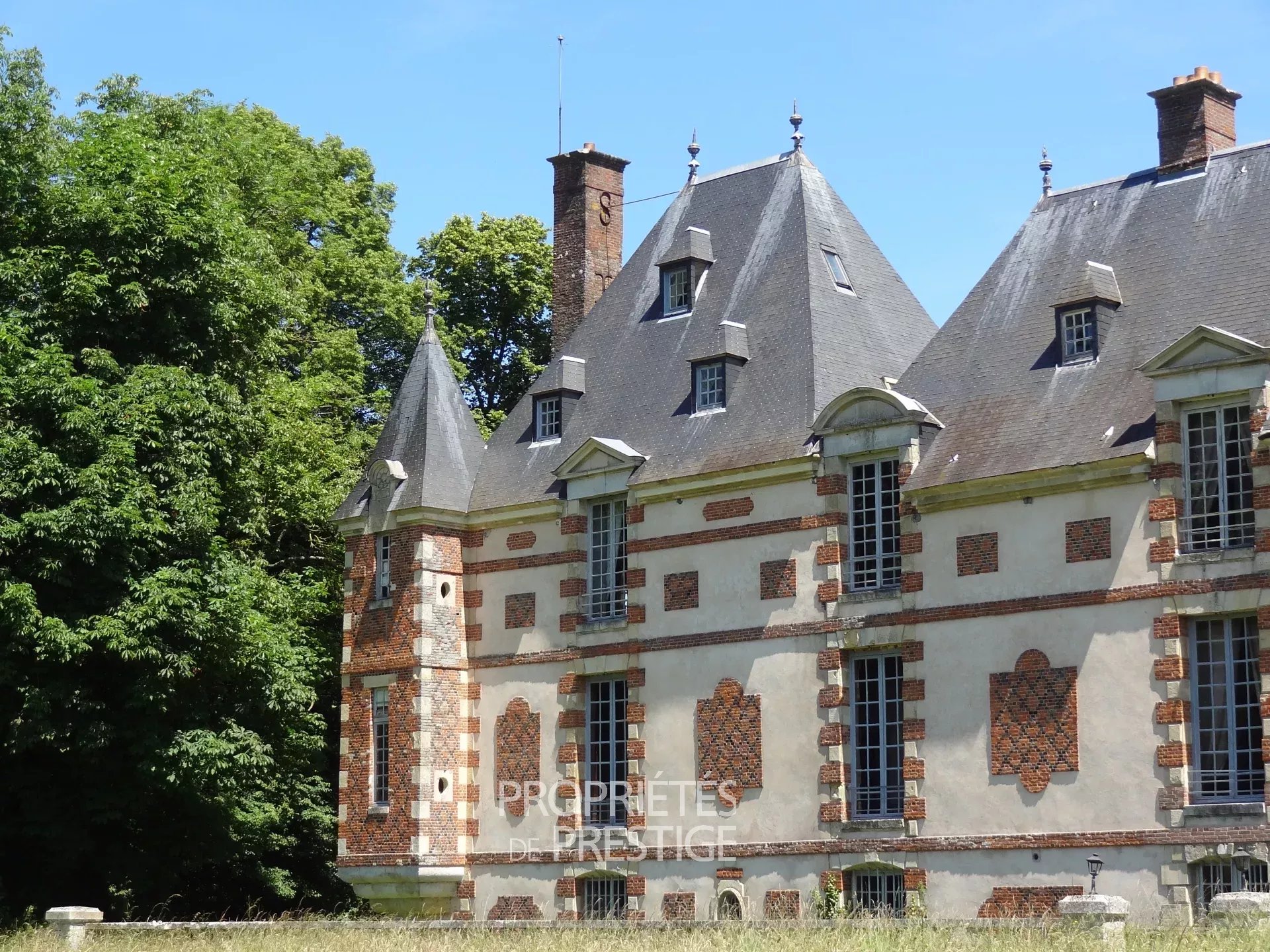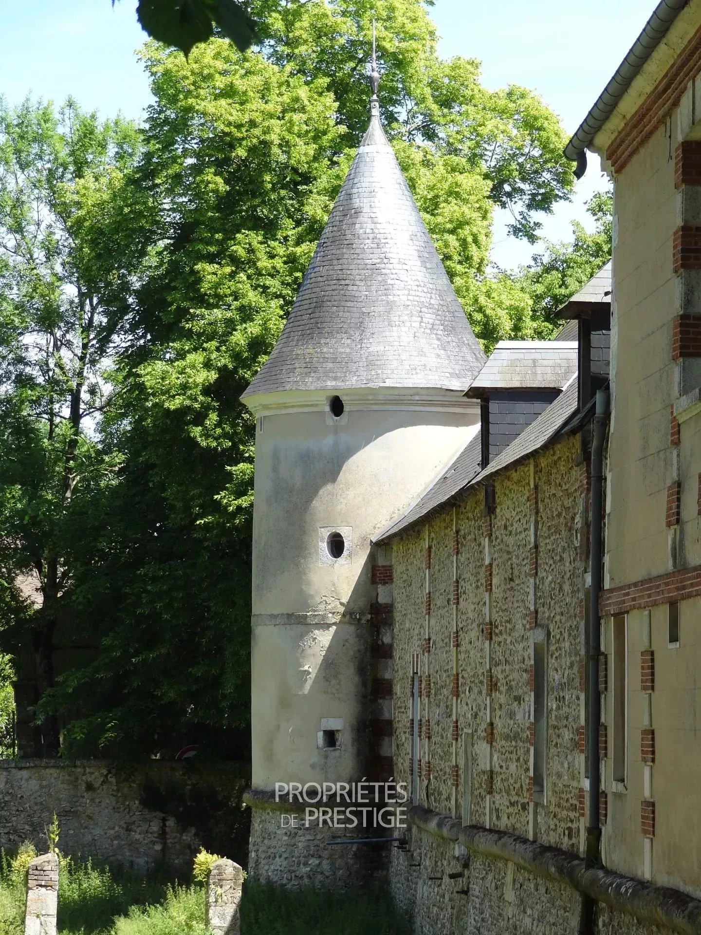 Situé à la limite des Yvelines et de l'Eure, ce château du 17ème siècle, Inscrit Monument Historique, a été édifié, sur les fondations d'un ancien manoir entouré de douves datant du 16ème siècle. A la révolution Française, le château fut cédé par adjudication comme bien national, puis redevint une propriété privée au 19ème siècle. Au corps principal d'origine orienté vers le parc, furent adjoints, au 18ème siècle, deux pavillons prolongés de tours poivrières suivant le dessin des douves et encadrant la cour d'honneurs. Ces pavillons furent au 19ème siècle reliés au bâtiment principal par deux ailes reprenant le style Louis XIII du corps d'origine. Le hall d'entrée et la réception distribuent, d'une part sur la vaste salle d'arme et sa grande cheminée, d'autre part sur la cuisine professionnelle et ses pièces annexes. A l'étage, par l'escalier d'honneur, vous accédez d'un côté à une belle pièce de réception, puis deux salons en enfilade, à l'opposé, deux grandes suites aux cheminées et boiseries anciennes. Aménagées dans les ailes du château et dans les étages supérieurs jusqu'aux combles, un total de trente chambres avec salles de bains, pour partie avec un salon. Une piscine intérieure a été aménagée au rez-de-chaussée d'une des ailes, alors que le pavillon en prolongement de l'aile sud accueille deux grandes salles de réunions situées au rez-de-chaussée et à l'étage. Le pavillon d'en face est un espace de bureaux avec deux appartements à l'étage. A proximité de l'entrée de la propriété, une salle de réception de 450m², comprenant des pièces aménagées pour les traiteurs, ainsi qu'un bâtiment annexe comprenant les sanitaires de la salle de réception, quatre chambres pour le personnel à l'étage ainsi qu'une vaste pièce cathédrale en cours d'aménagement. Le parc de 21 hectares majoritairement boisé est percé de deux grandes pelouses laissant place à de belles perspectives à l'ouest. Le site est idéalement placé, à proximité de Pacy sur Eure et proche de l'accès A13 pour Paris à 73 km.