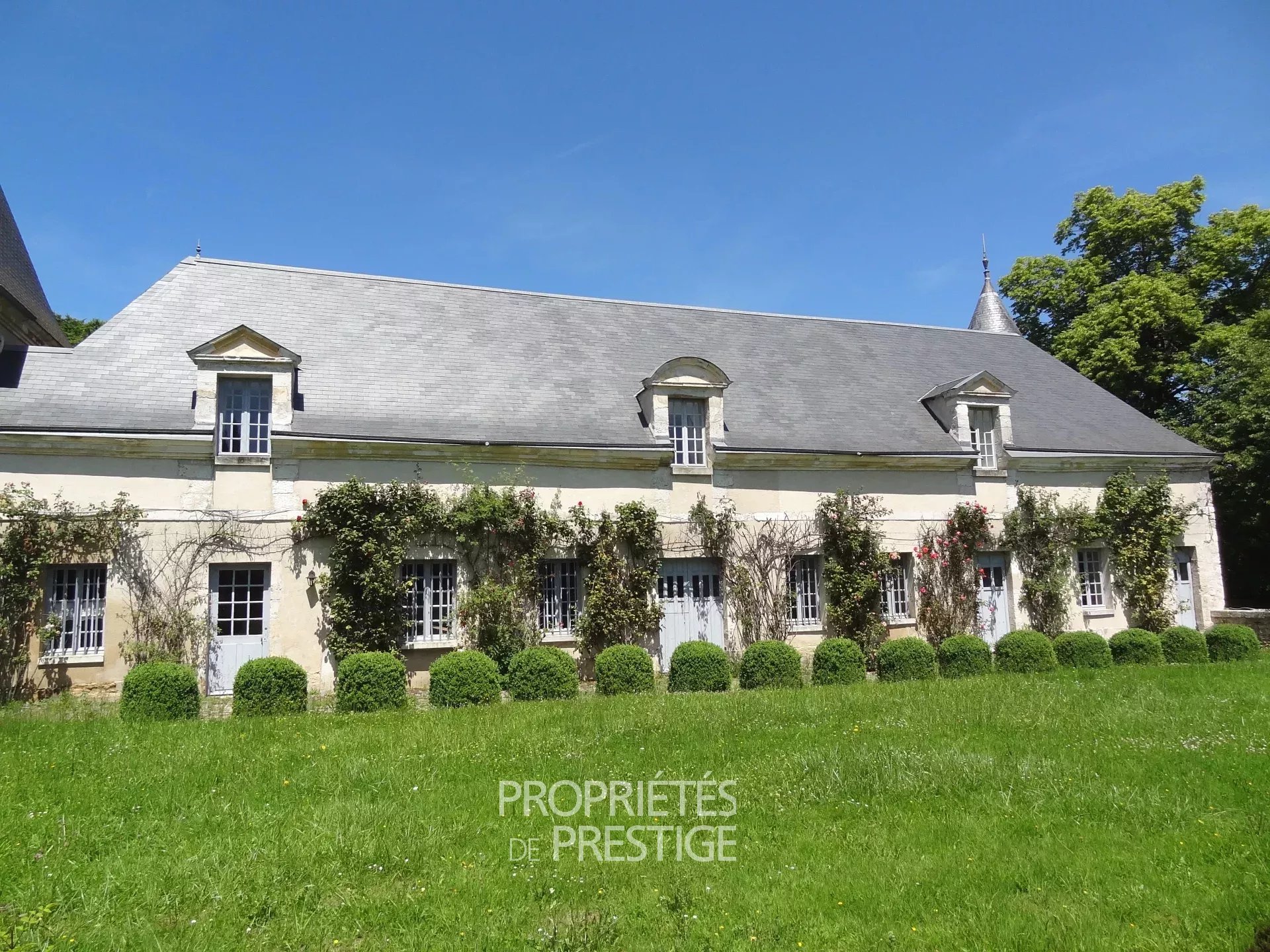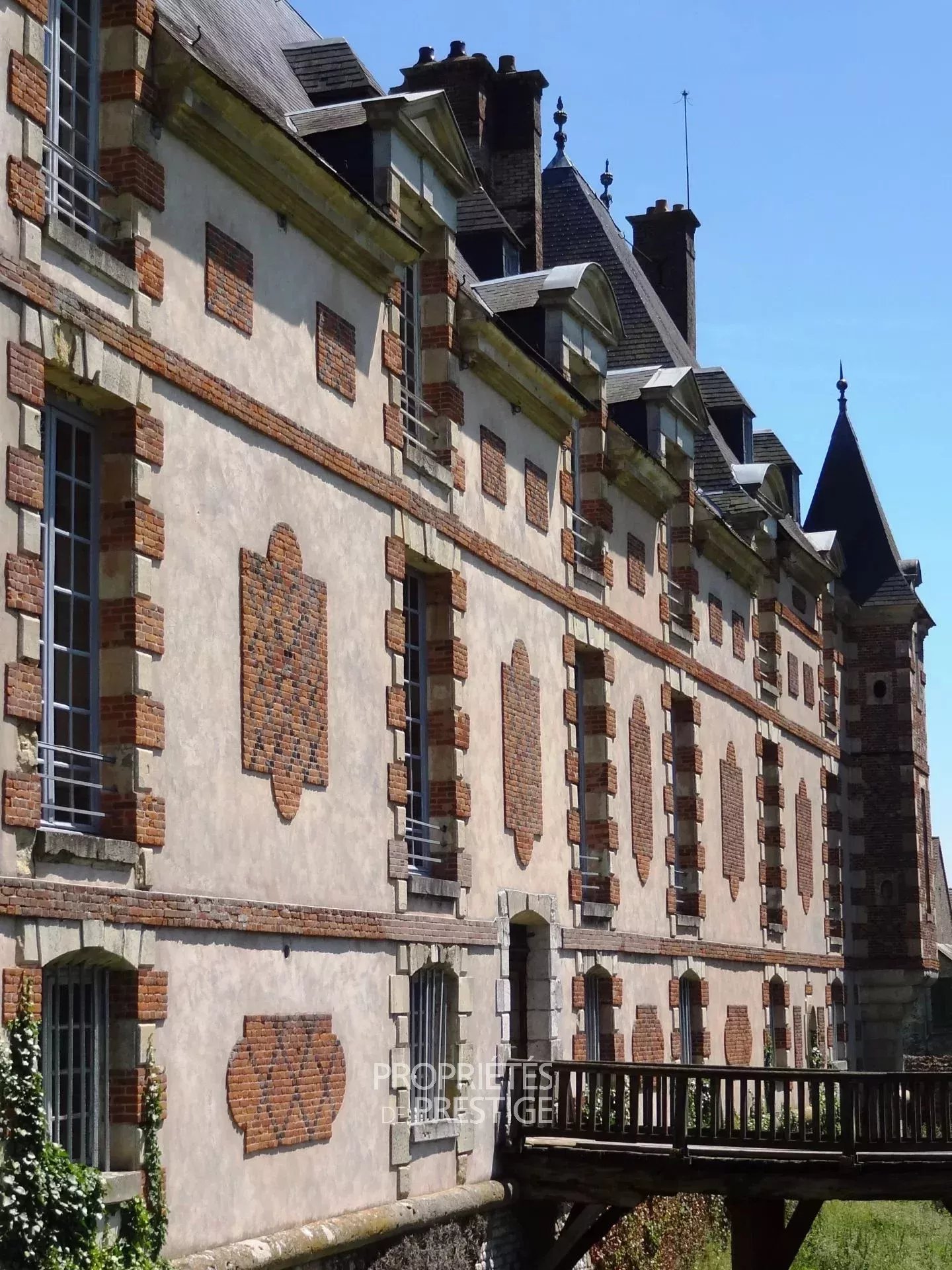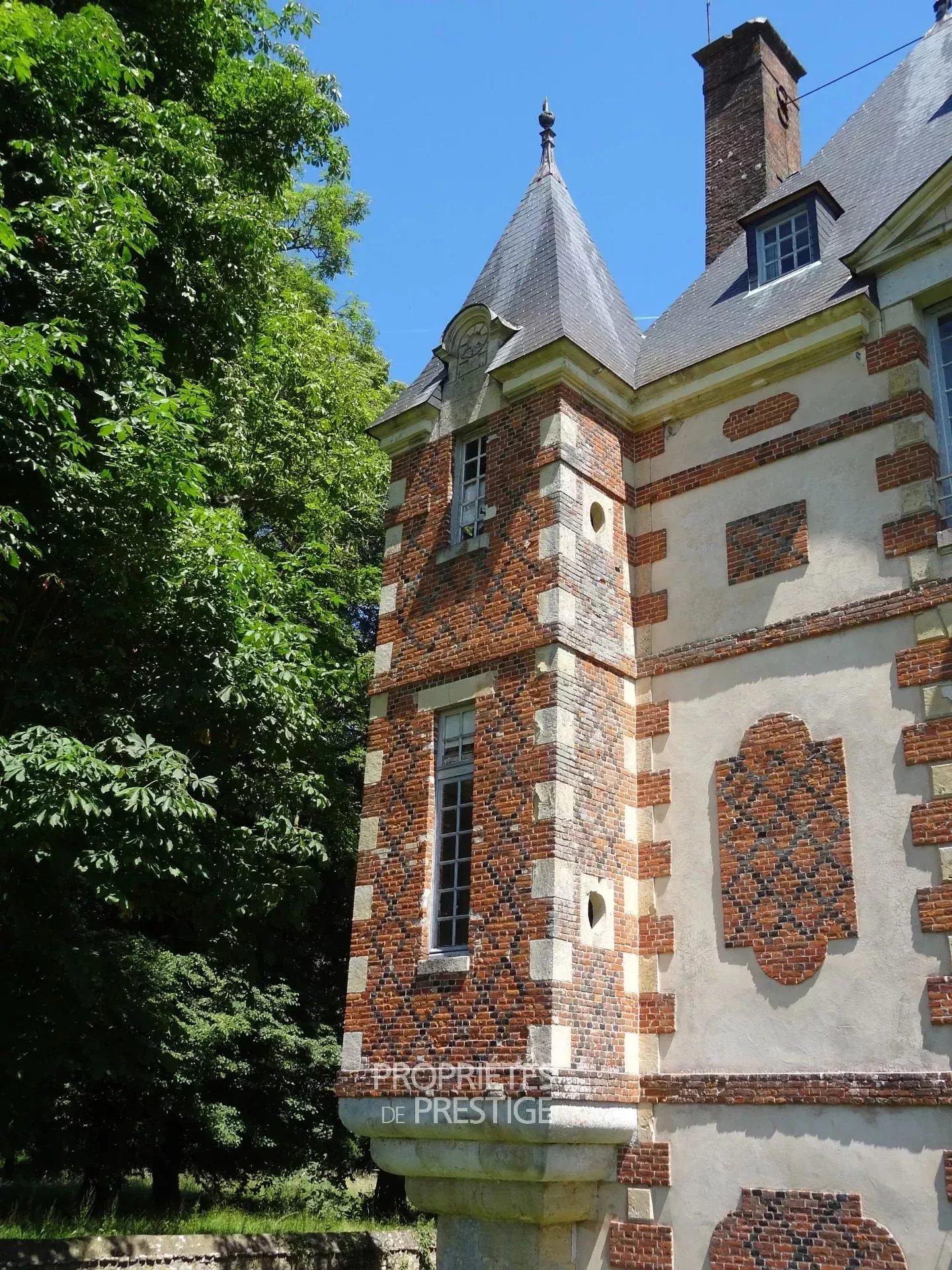 Situé à la limite des Yvelines et de l'Eure, ce château du 17ème siècle, Inscrit Monument Historique, a été édifié, sur les fondations d'un ancien manoir entouré de douves datant du 16ème siècle. A la révolution Française, le château fut cédé par adjudication comme bien national, puis redevint une propriété privée au 19ème siècle. Au corps principal d'origine orienté vers le parc, furent adjoints, au 18ème siècle, deux pavillons prolongés de tours poivrières suivant le dessin des douves et encadrant la cour d'honneurs. Ces pavillons furent au 19ème siècle reliés au bâtiment principal par deux ailes reprenant le style Louis XIII du corps d'origine. Le hall d'entrée et la réception distribuent, d'une part sur la vaste salle d'arme et sa grande cheminée, d'autre part sur la cuisine professionnelle et ses pièces annexes. A l'étage, par l'escalier d'honneur, vous accédez d'un côté à une belle pièce de réception, puis deux salons en enfilade, à l'opposé, deux grandes suites aux cheminées et boiseries anciennes. Aménagées dans les ailes du château et dans les étages supérieurs jusqu'aux combles, un total de trente chambres avec salles de bains, pour partie avec un salon. Une piscine intérieure a été aménagée au rez-de-chaussée d'une des ailes, alors que le pavillon en prolongement de l'aile sud accueille deux grandes salles de réunions situées au rez-de-chaussée et à l'étage. Le pavillon d'en face est un espace de bureaux avec deux appartements à l'étage. A proximité de l'entrée de la propriété, une salle de réception de 450m², comprenant des pièces aménagées pour les traiteurs, ainsi qu'un bâtiment annexe comprenant les sanitaires de la salle de réception, quatre chambres pour le personnel à l'étage ainsi qu'une vaste pièce cathédrale en cours d'aménagement. Le parc de 21 hectares majoritairement boisé est percé de deux grandes pelouses laissant place à de belles perspectives à l'ouest. Le site est idéalement placé, à proximité de Pacy sur Eure et proche de l'accès A13 pour Paris à 73 km.