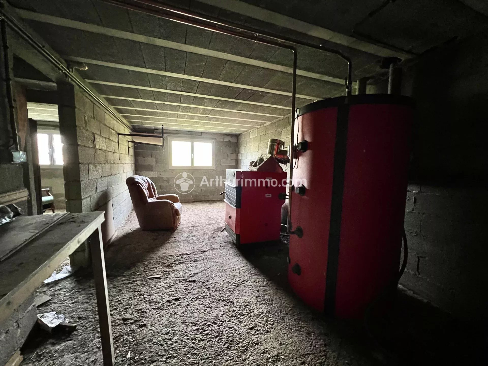 Pavillon de plain-pied sur sous sol, entrée, couloir desservant 2 chambres, une salle d'eau avec cabine de douche et un vasque. Une cuisine semi-équipée et grand séjour séparés exposés sud avec baie vitré. Toute l'habitation est en état usagé. Sous sol avec surface équivalente de l'habitat comprenant un garage (avec descente pour véhicule) porte coulissante, un espace chaufferie pour la chaudière fioul et cuve, une annexe et un grand espace avec chaudière bois. Terrain d'environ : 1924 m2 Électricité et fosses toutes eaux (filtre sable) remise aux normes en 2018. Chauffe-eau électrique. Double vitrage partout/volet PVC. DPE G - Audit réalisé