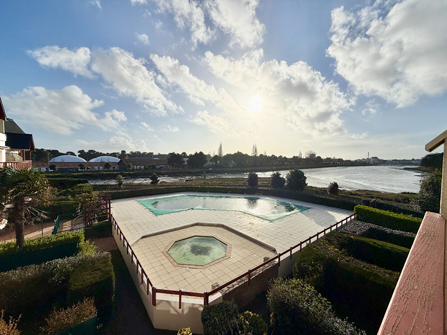Le pied- à-terre idéal pour profiter de la région. A 600m de la plage Benoit, bel appartement T3, aujourd'hui aménagé en T2 pour offrir une plus grande pièce de vie. Vue agréable sur la piscine de la résidence et sur l'étier. Cuisine aménagée et équipée, Salon-séjour Sud Ouest donnant sur sa terrasse. A l'étage, un espace mezzanine pouvant faire office de bureau ou offrir du couchage supplémentaire. Une grande chambre de 15m2. Un parking extérieur complète ce bien. (4.00 % honoraires TTC à la charge de l'acquéreur.) Copropriété de 404 lots. Charges annuelles : 1410 euros.