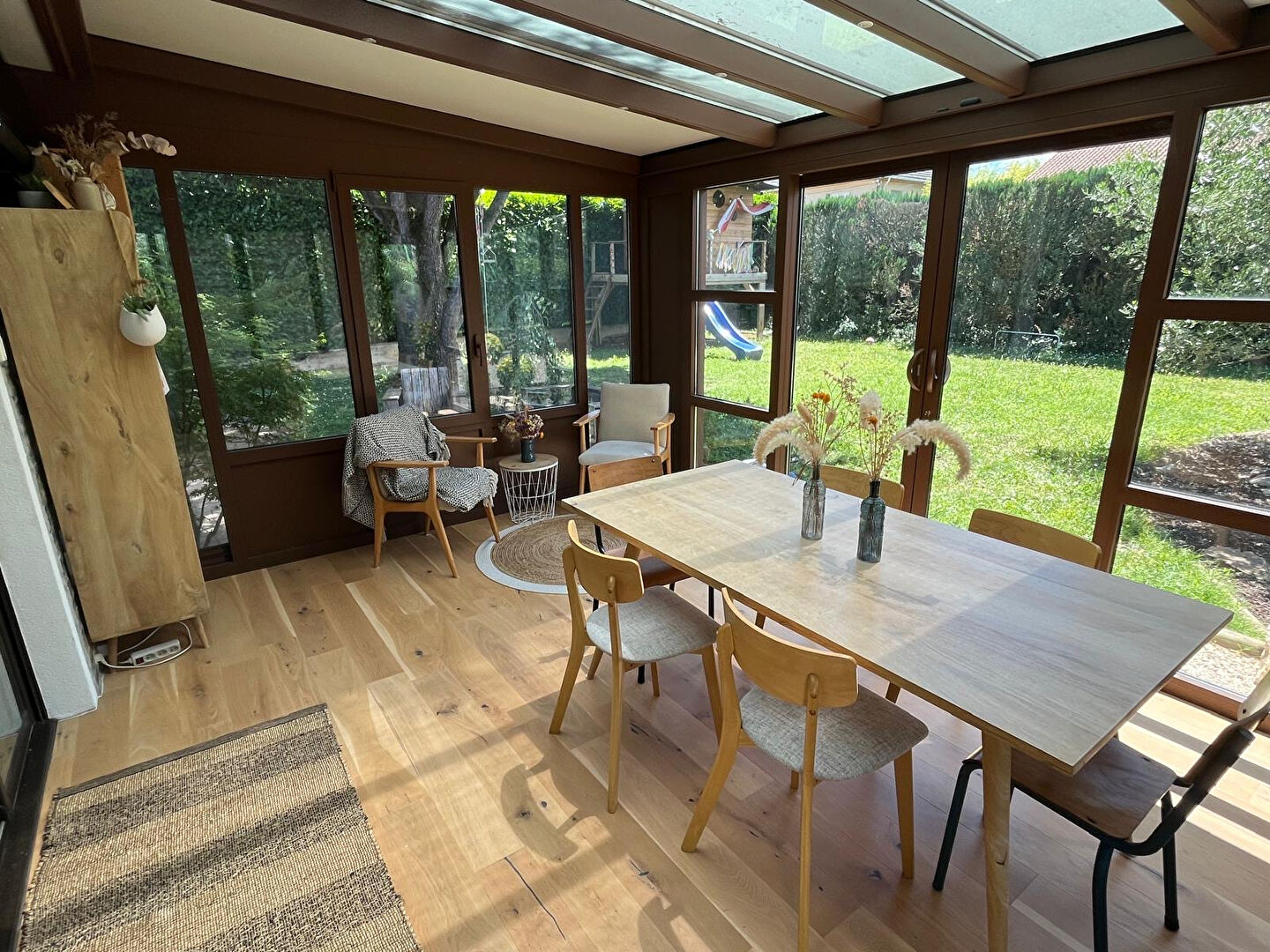 Découvrez notre nouvelle jolie maison T6 sur la commune de Villette d'Anthon dans un secteur calme et privilégié. Idéalement située dans une impasse, cette agréable maison de plain-pied offrant presque 120m² habitable + garage indépendant de 33m² et implantée sur un terrain de 1 260m² clos et bien paysagé. Ce bien immobilier est composé d'un hall d'entrée avec placard, cuisine équipée et meublée, salon et véranda, 4 chambres , une salle de bains + WC indépendant. Chauffage pompe à chaleur gainable, portail d'entrée automatique, piscine sécurisée et chauffée, un abri et une cabane de jardin. Réf : 2823/VDA Prix: 430 000 euros FAI dont frais agence à la charge vendeur DPE : C et C Montant estimé des dépenses annuelles d'énergie pour un usage standard entre 1 920 euros 2 660 euros www.berti-immobilier.com 04 72 93 23 37 SECTEUR EST LYONNAIS PROCHE A43 ET ROCADE EST Delphine GIANGRECO (EI) Agent Commercial - Numéro RSAC : 852726975 - VIENNE.