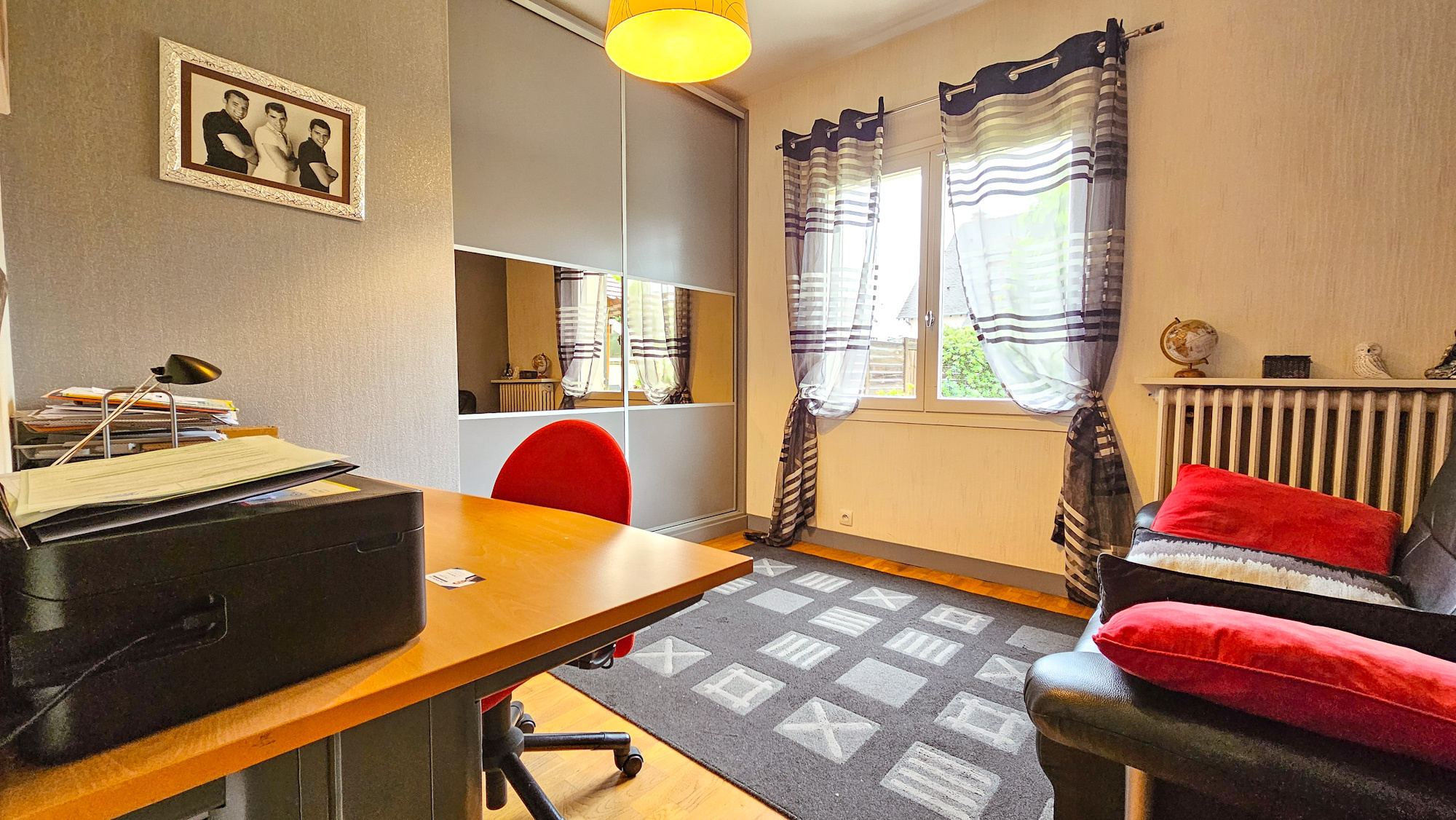 À l'étage : 4 chambres dont un bureau (anciennement une salle d'eau) et un WC séparé.