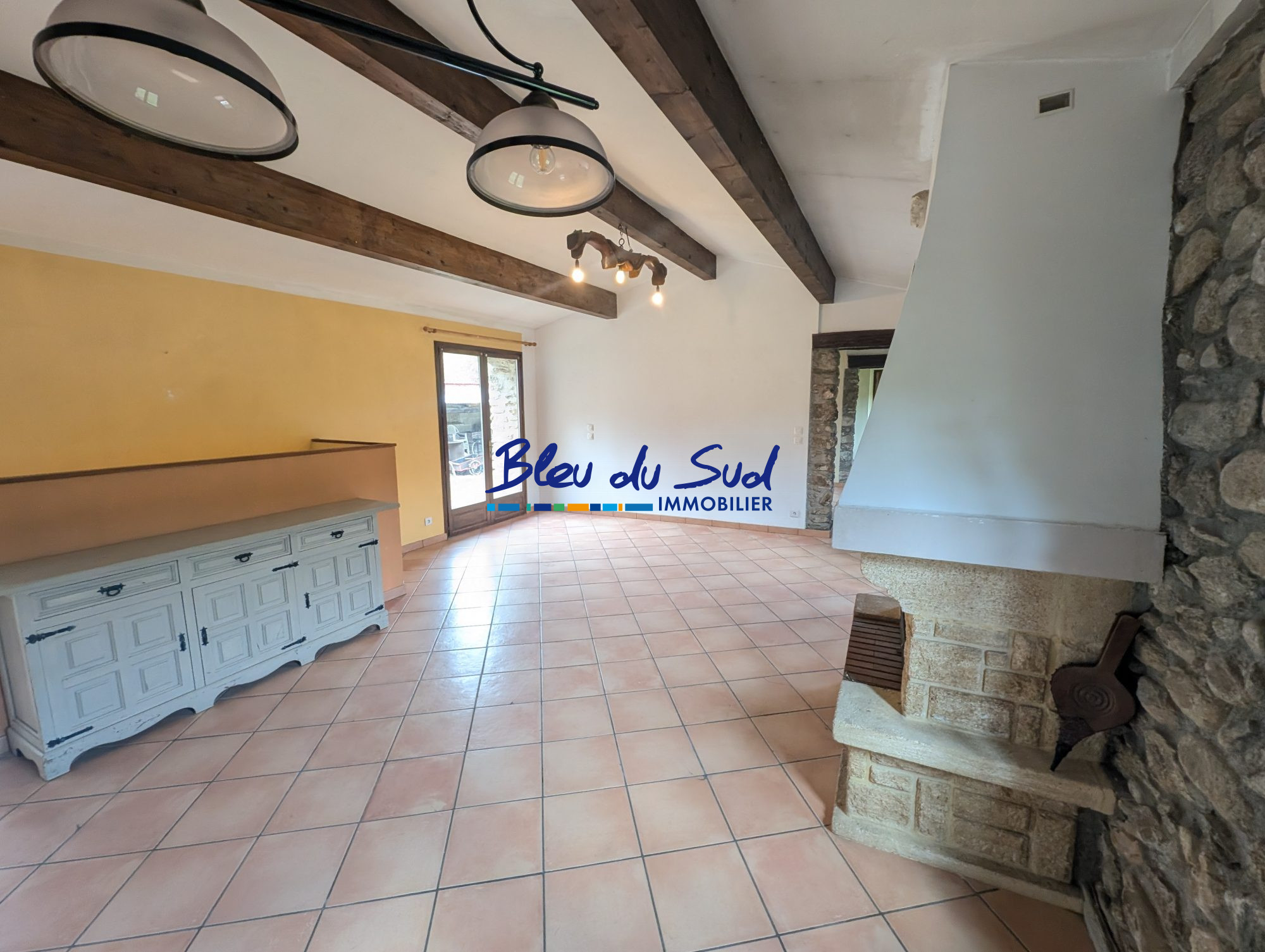 Elle se compose en RDC d'un salon - salle à manger de 32 m2 avec cheminée à insert, d'une cuisine séparée de 15 m2, d'une chambre de 13.3 m2 et d'un WC séparé.