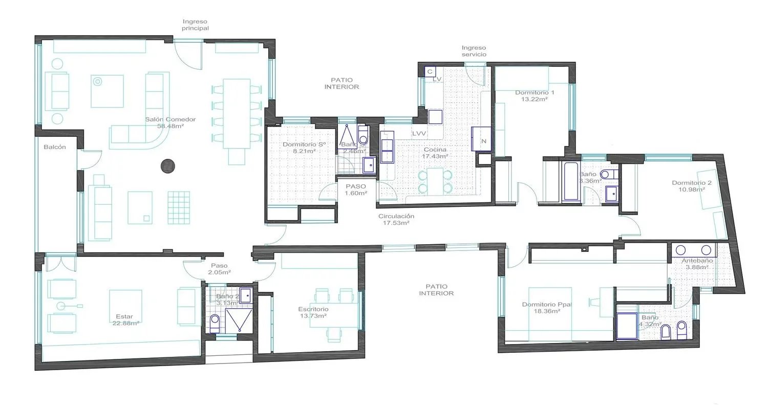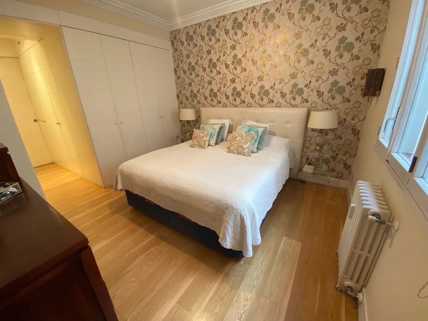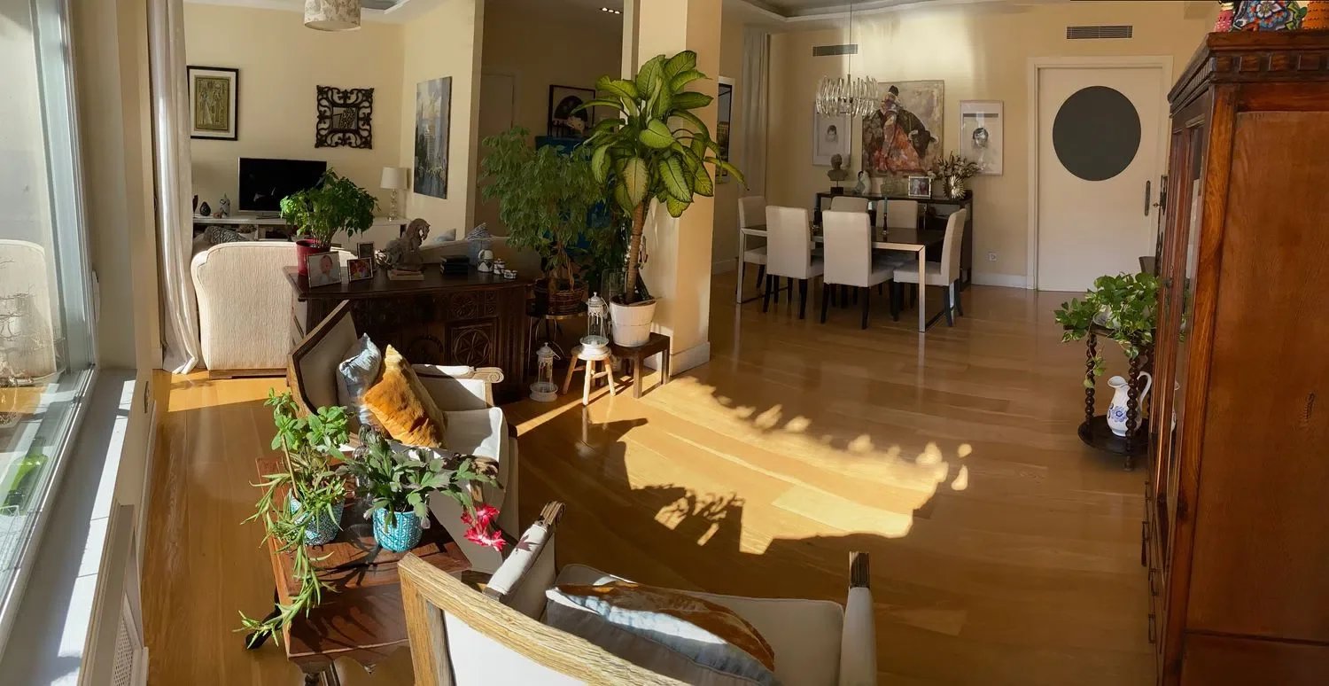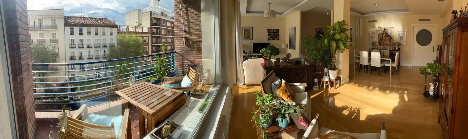 Veraltia presents this magnificent apartment located in the heart of the iconic Chamberí-Trafalgar neighborhood. Situated in a building dating back to 1958, it stands out for its spacious layout and abundant natural light. The property features four large windows, two of which open onto a charming terrace with exterior views. It was fully renovated in 2011 and remains in excellent condition. Upon entering the apartment, you are welcomed by a spacious hall that leads to a bright living-dining room. The L-shaped kitchen is designed with two distinct areas. The master bedroom includes a generous en-suite bathroom with natural light. In addition, the apartment offers five more bedrooms and three further bathrooms, one of which serves as a guest powder room. Elegant wooden flooring adds warmth and sophistication throughout the home. The sale also includes the right to use a large parking space just 250 meters from the building. The property benefits from an elevator and concierge service, ensuring greater comfort and security.