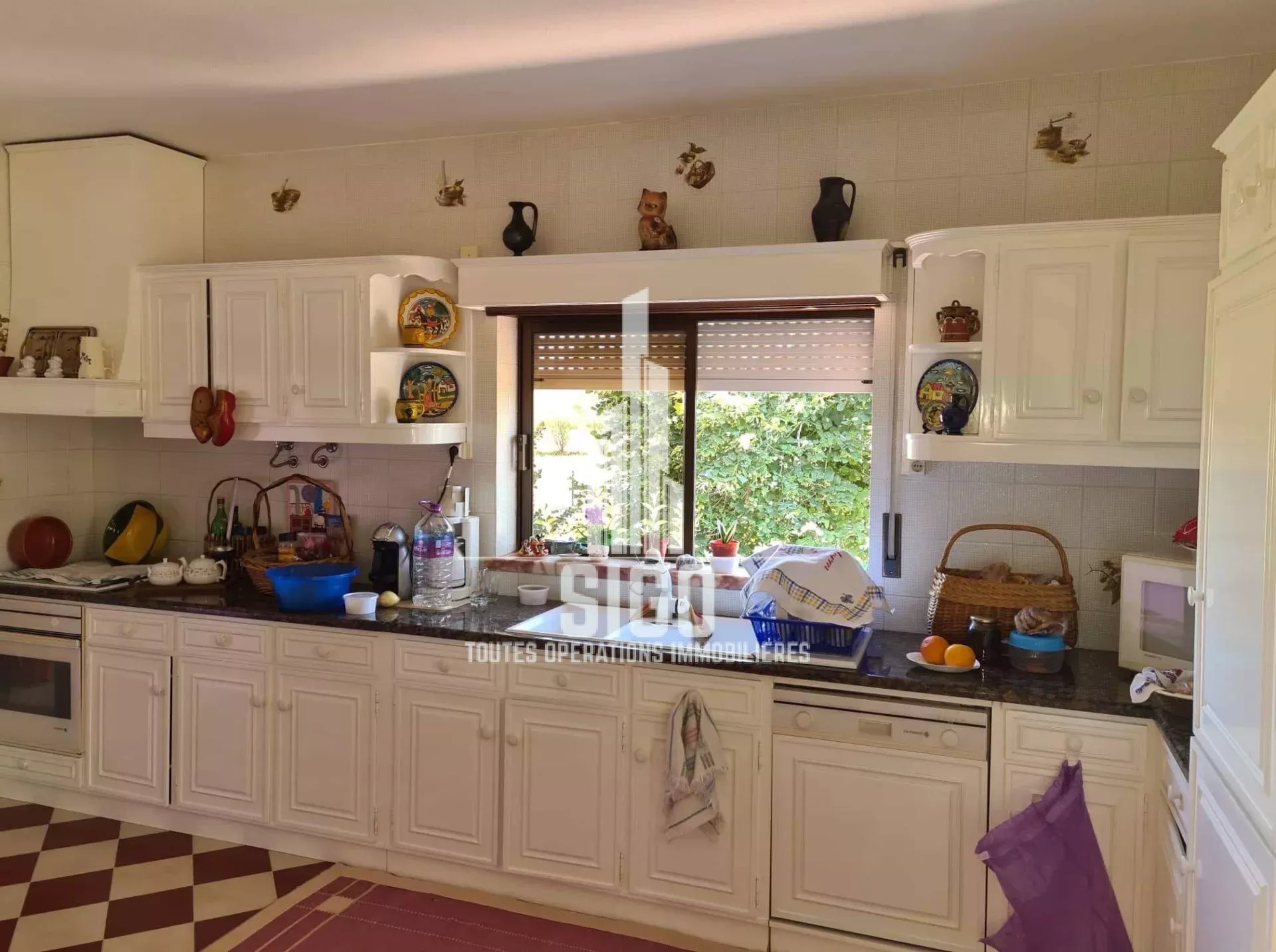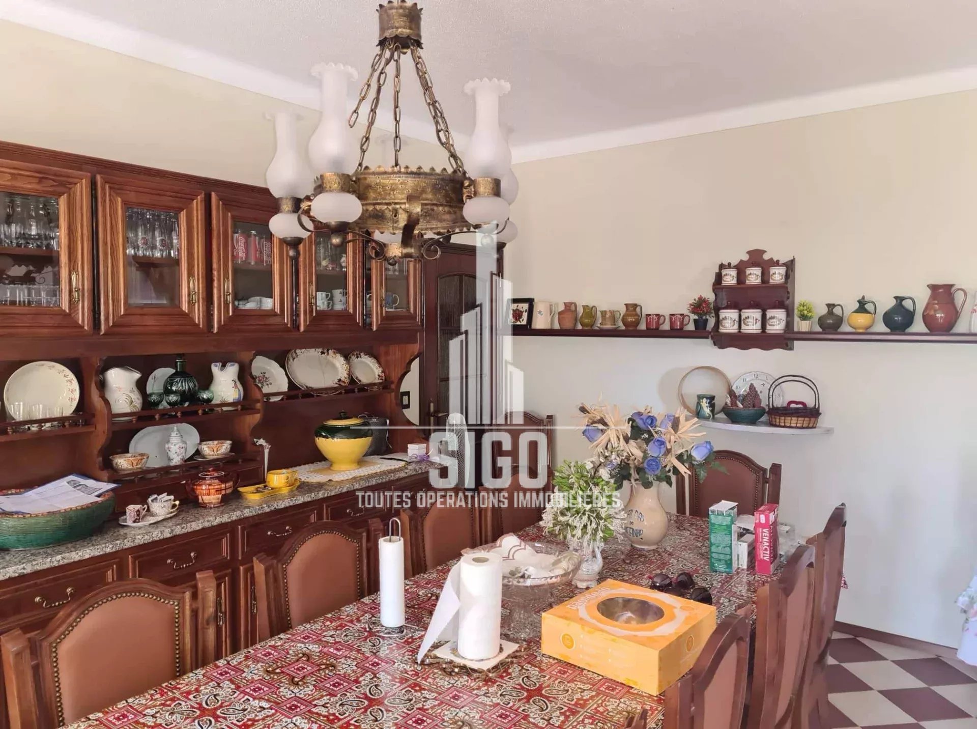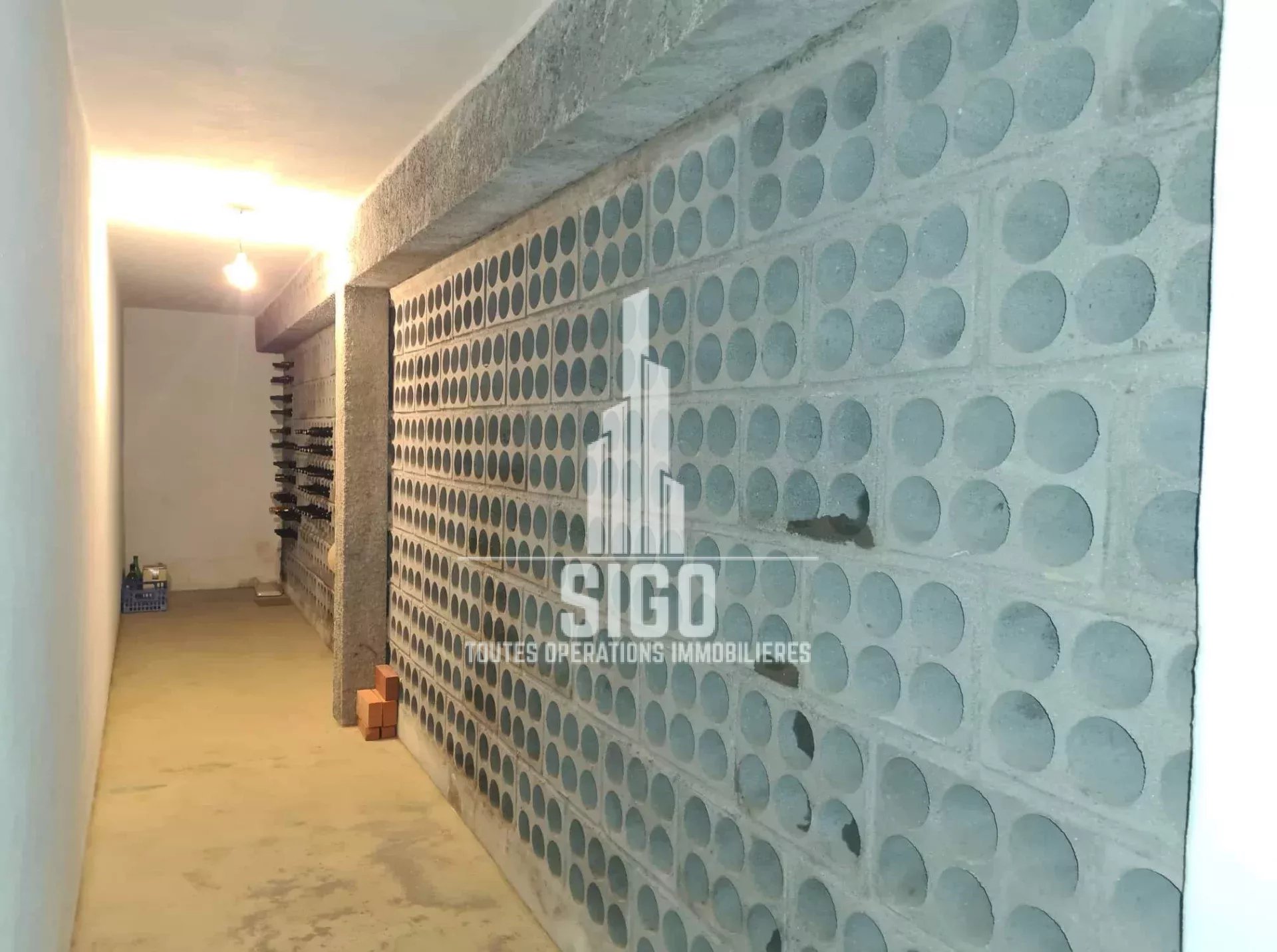 Cette villa spacieuse en parfaites conditions d'habitation située sur un terrain de 3826m2, est composée au rez-de-jardin d'un grand espace de vie, d'une cuisine, d'un four à bois, d'une cave à vin, d'une salle de bain, d'une chambre à coucher (actuellement transformée en débarras et d'un grand garage ; au rez-de-chaussée se trouve le hall d'entrée, une cuisine entièrement équipée avec salle à manger (style garde-manger), avec accès à un balcon fermé, un salon, deux chambres à coucher (dont une avec balcon), une salle de bain et une toilette ; au 1er étage se trouvent encore trois chambres à coucher et une salle de bain. La villa est équipée de la climatisation et d'une cheminée/feu ouvert.