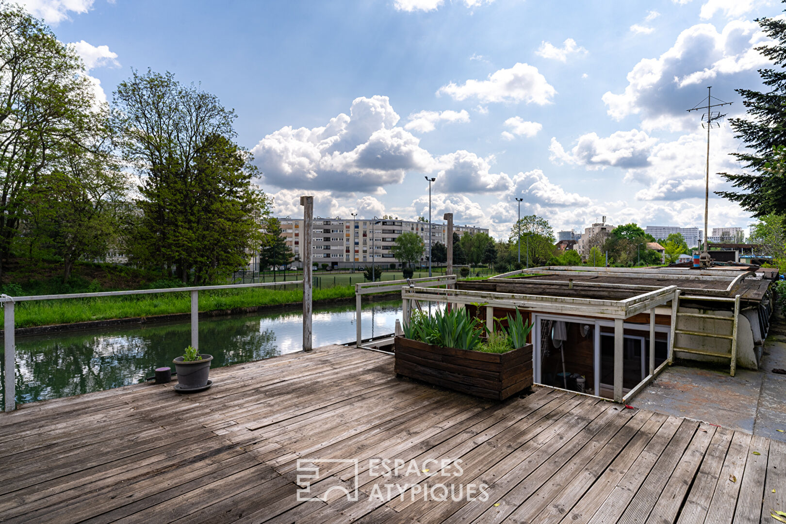 Amarrée le long du canal de la Marne au Rhin, cette péniche de type Freycinet construite en 1950 déploie une surface habitable de 141 m², répartie sur 39 mètres de long et 5 mètres de large. Réhabilitée en habitation flottante, elle offre un cadre de vie unique, mêlant intimité, calme et contact direct avec la nature. Sa coque a été entièrement remplacée en 2008, garantissant sa solidité. Une terrasse plein ciel permet de profiter d'un environnement apaisant, avec une vue dégagée sur l'eau et le parlement Européen. Située à proximité de toutes les commodités, elle bénéficie d'un emplacement stratégique entre ville et quiétude fluviale. L'entrée dans le logement s'effectue depuis le pont, par une généreuse pièce de vie de 47 m², avec une cuisine équipée ouverte sur le séjour. Les nombreuses ouvertures offrent des perspectives directes sur le canal, invitant à la contemplation. En direction de la proue, une salle de bain ainsi qu'un espace technique de 26 m², actuellement dédié à la pompe à chaleur, peuvent facilement être réaménagés en chambre, bureau ou espace de loisir. Côté poupe, une chambre de 28 m² propose un volume confortable et lumineux. La timonerie a été transformée en pièce de 10 m². Un escalier permet d'accéder à l'ancienne cabine du batelier, un espace indépendant pouvant accueillir un projet de location saisonnière ou un logement d'appoint. A l'extérieur, la terrasse installée sur le pont permet de profiter pleinement des beaux jours, dans un cadre dépaysant et végétalisé. Cet espace à ciel ouvert invite à créer un jardin flottant ou à installer un salon d'extérieur. L'environnement immédiat allie nature et accessibilité : commerces, écoles, transports et services sont accessibles à quelques minutes à pied ou à vélo, rendant ce lieu de vie aussi pratique qu'original. Cette péniche se distingue par son potentiel de transformation, la générosité de ses volumes et la rareté de son format habitable. Parfaite pour un projet de résidence principale où le confort n'a pas été oublié, grâce notamment à un chauffage au sol, elle offre un mode de vie au fil de l'eau, dans un habitat à la fois mobile, poétique, authentique permettant également la location insolite. Un bien singulier à repenser selon ses envies, pour une expérience de vie hors des cadres traditionnels de l'immobilier. Arrêt de tram à 8 minutes à pied Gare de Strasbourg à 12 minutes Aéroport Entzheim à 23 minutes Non soumis au DPE Contact : Alain 06.88.95.38.73 Alain ROY (EI) Agent Commercial - Numéro RSAC : 981413313 - Strasbourg.