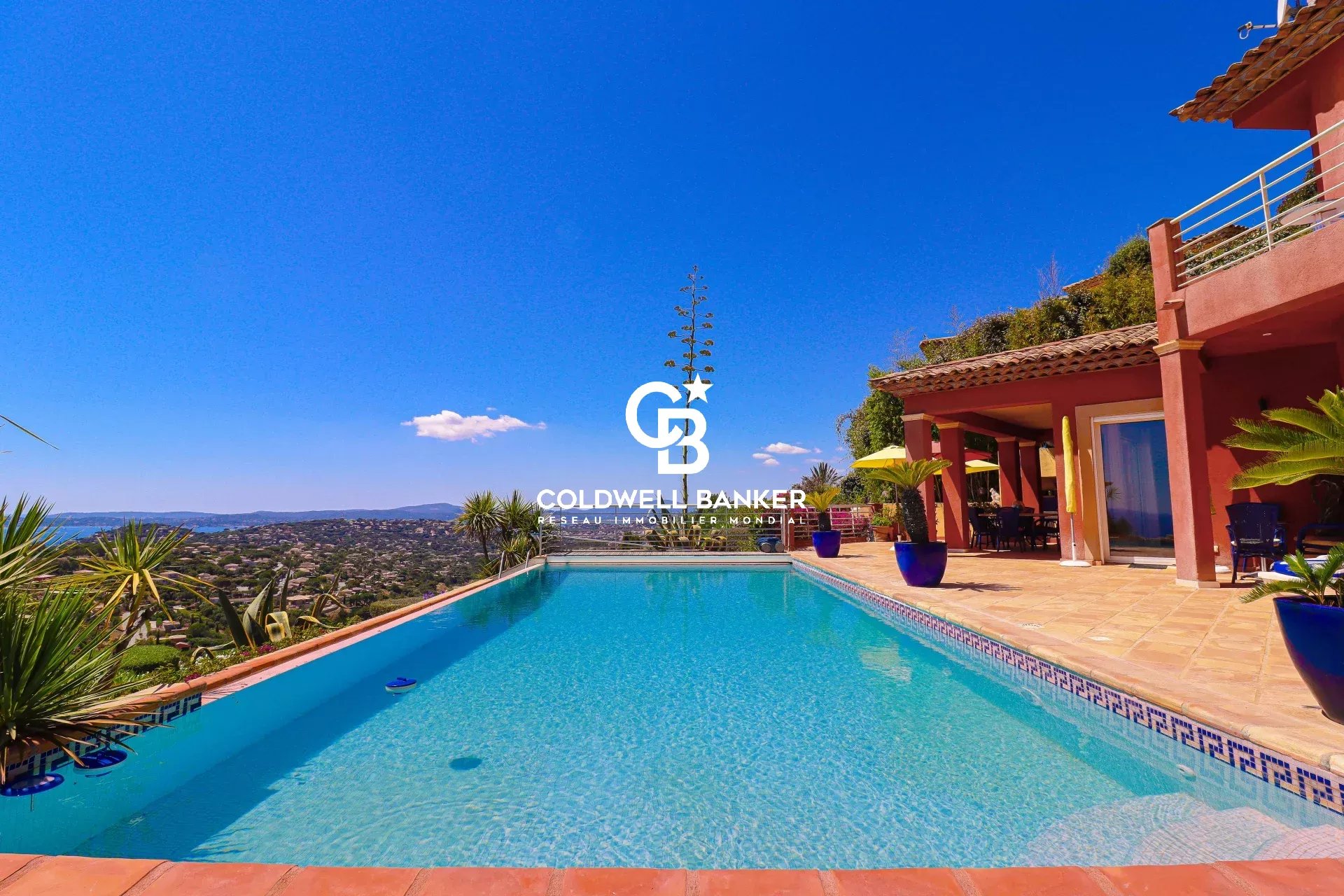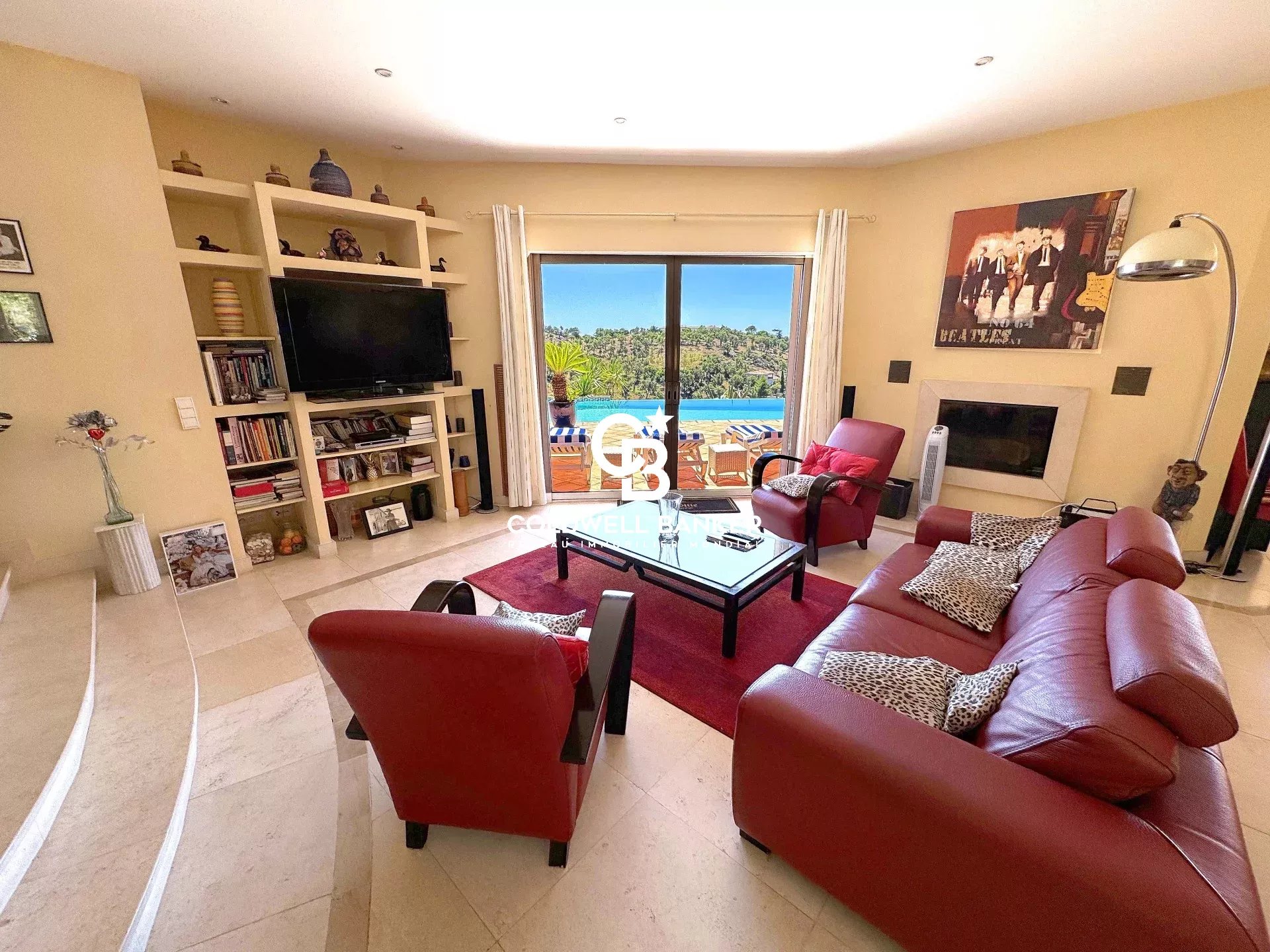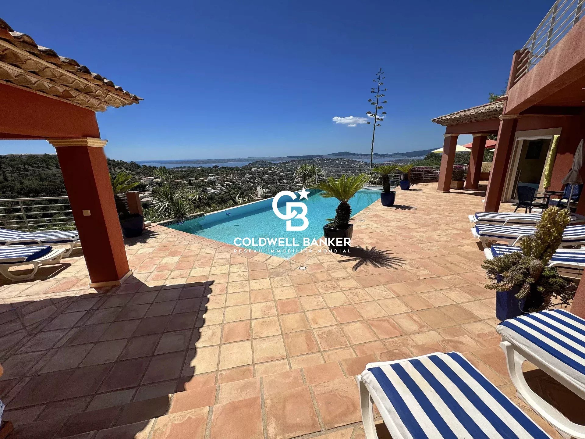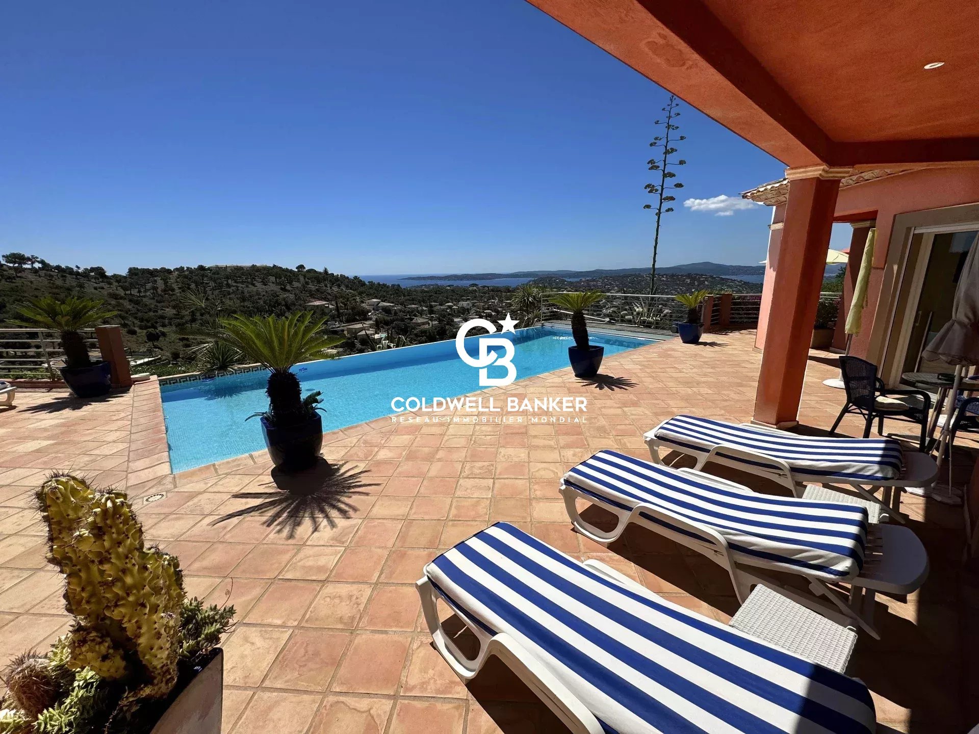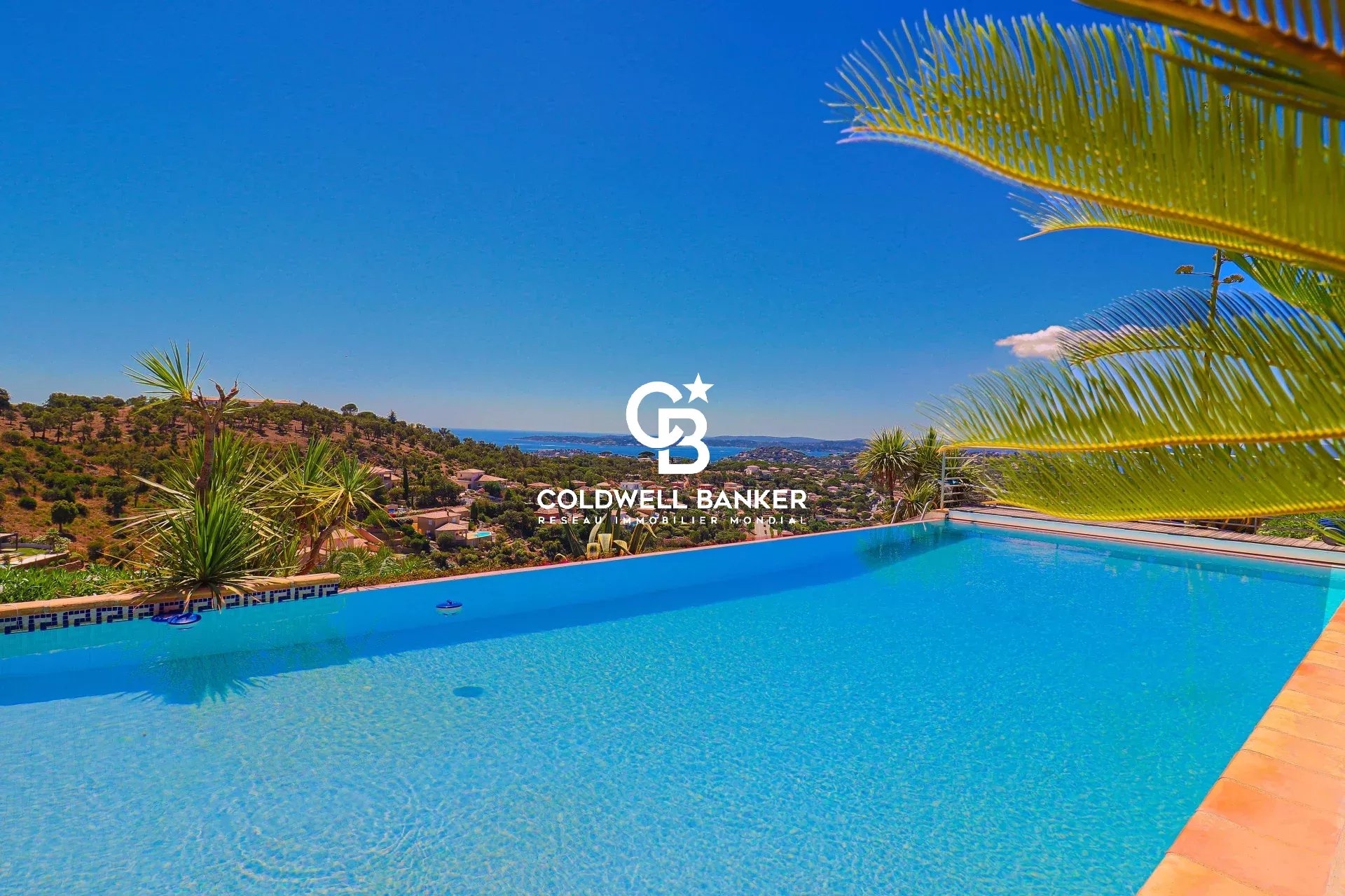 Position dominante pour cette superbe villa néo-provençale, à l'allure “tropézienne“ avec vue panoramique 180°sur la baie de Saint Raphaël et celle du Golfe de Saint Tropez. Un horizon à perte de vue, plein sud, au calme, sans vis-à-vis, dans un domaine privé, autour des collines environnantes et des faiways du golf 18 trous de Sainte-Maxime 8 pièces – 5 chambres climatisées – 4 SDB – 4 WC Un grand jardin, arboré et luxuriant de 2900 m2, autour de la bâtisse principale de 207 m2, à laquelle il faut ajouter 80 m2 de sous-sol habitable & aménageable. La demeure dispose également d’un appartement réceptif de 65 m2, avec entrée privative, 2 chambres, 4 couchages, SDB / WC et une terrasse de 30 m2, vue mer. Soit 352 m2 hab actuels, avec possibilité de 400 m2 au global. Bâtisse principale : Rez de jardin : Salon, salle à manger, cuisine, bar, bel espace privilégiant aussi bien la confidentialité que les réunions familiales. Chambre de maitre, comprenant 2 chambres, WC privés, SDB, dressing et grand balcon vue panoramique mer et montagne. Belle terrasse de plus de 60 m2, vue mer et collines, avec solarium, espaces détente, cuisine & salle à manger extérieures - Piscine à débordement & pool house À l’étage : 2 chambres avec SDB, WC et grandes terrasses “tropéziennes“, vue mer et collines Dépendances : 2X garage– Atelier 85 m2- Terrasse 20 m2 à l’arrière Prestations : Chauffage air conditionné & clim au sol – Split dans toutes les chambres – carrelage marbre & Grés, terrasses abritées, places de parkings Un aménagement glamour, des lieux de vie harmonieux, une belle évolution d'urbanisme en place … de réels atouts pour cette majestueuse villégiature, face à l’immensité de la méditerranée