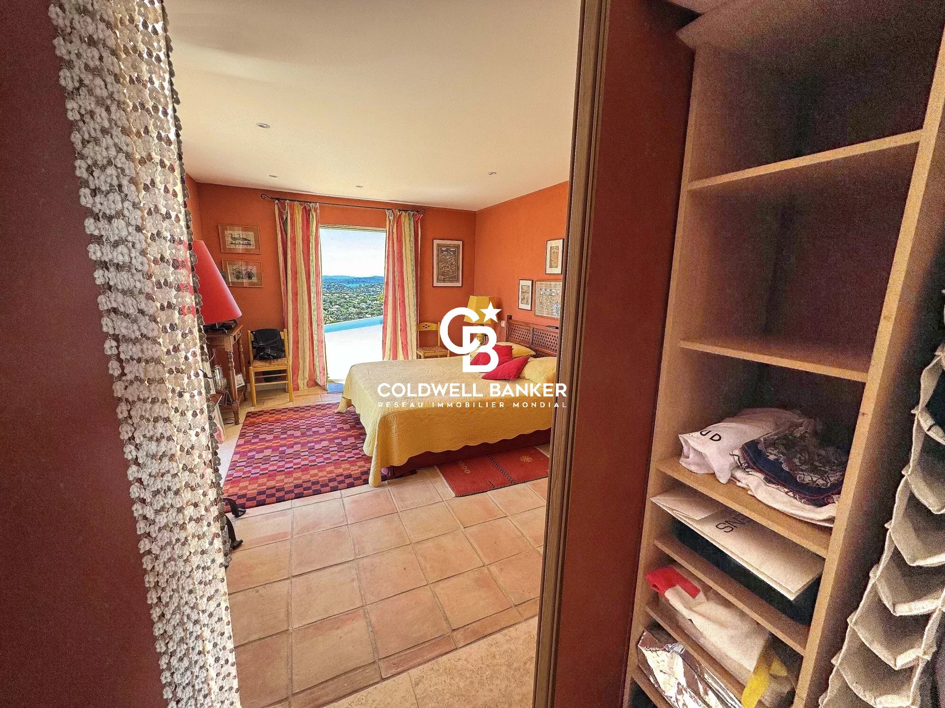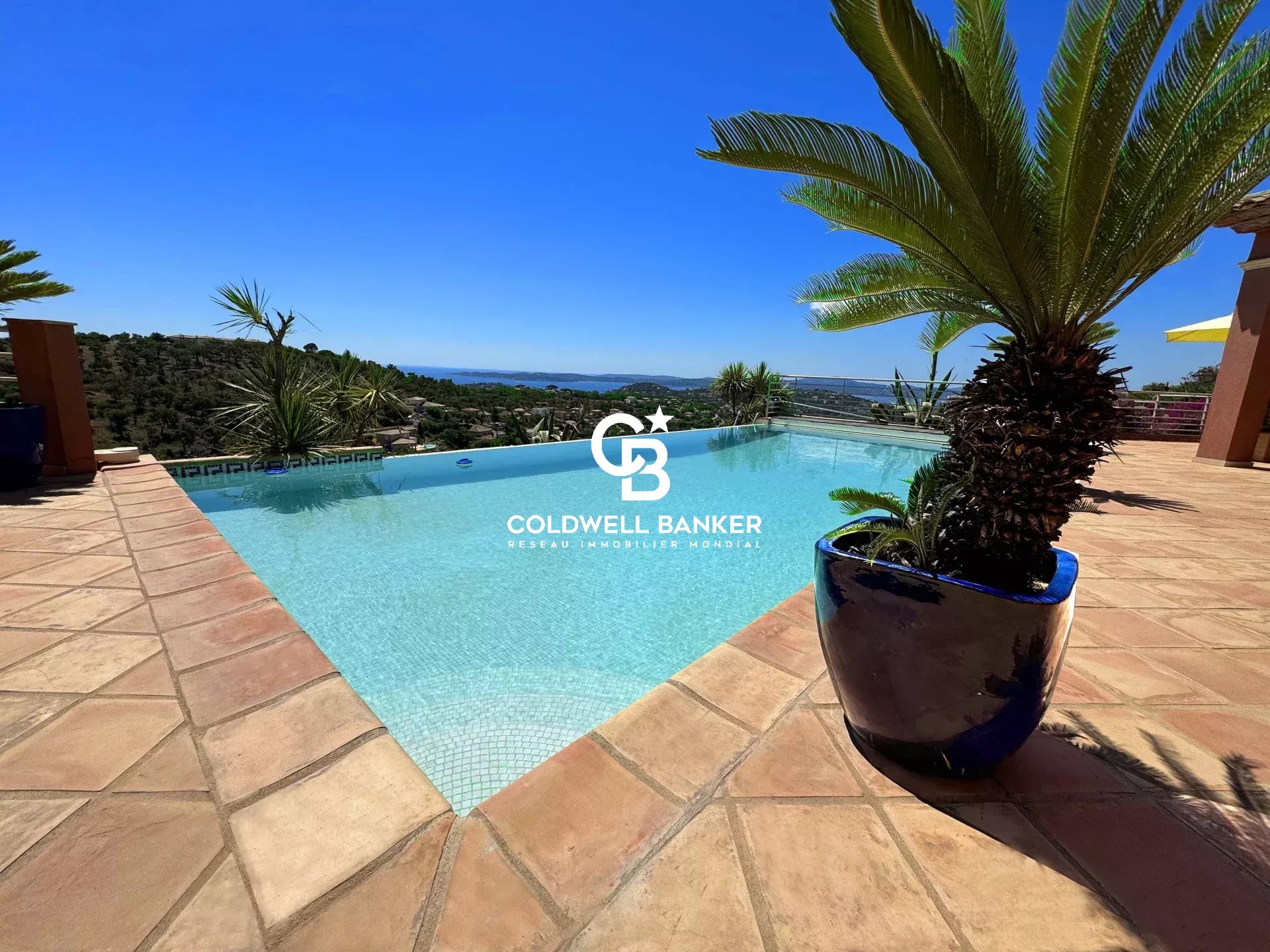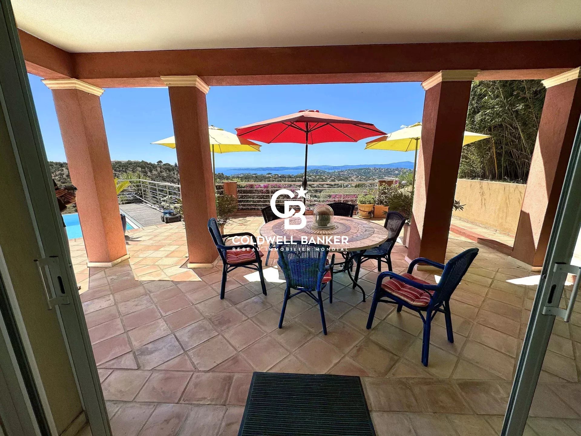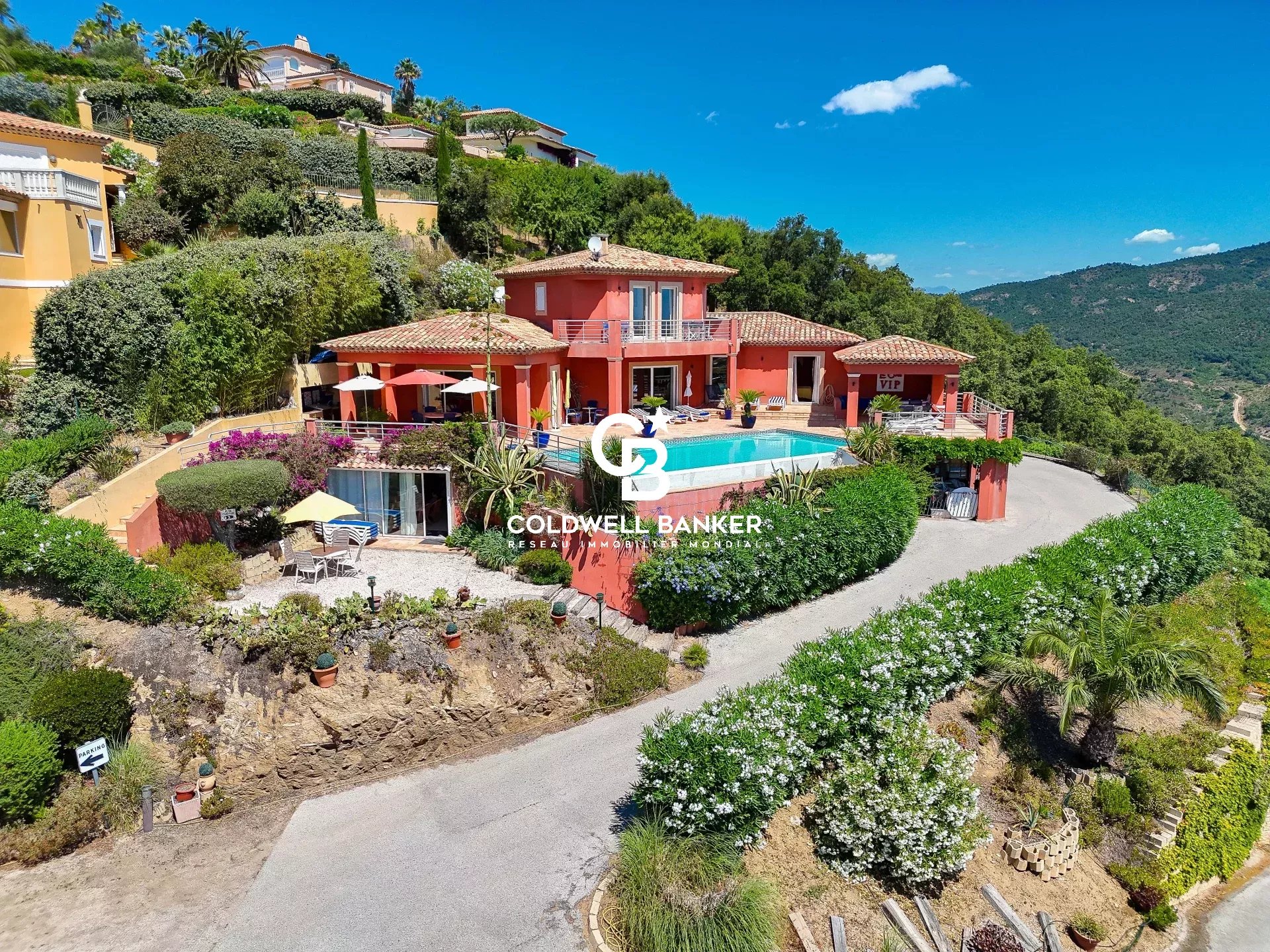 Position dominante pour cette superbe villa néo-provençale, à l'allure “tropézienne“ avec vue panoramique 180°sur la baie de Saint Raphaël et celle du Golfe de Saint Tropez. Un horizon à perte de vue, plein sud, au calme, sans vis-à-vis, dans un domaine privé, autour des collines environnantes et des faiways du golf 18 trous de Sainte-Maxime 8 pièces – 5 chambres climatisées – 4 SDB – 4 WC Un grand jardin, arboré et luxuriant de 2900 m2, autour de la bâtisse principale de 207 m2, à laquelle il faut ajouter 80 m2 de sous-sol habitable & aménageable. La demeure dispose également d’un appartement réceptif de 65 m2, avec entrée privative, 2 chambres, 4 couchages, SDB / WC et une terrasse de 30 m2, vue mer. Soit 352 m2 hab actuels, avec possibilité de 400 m2 au global. Bâtisse principale : Rez de jardin : Salon, salle à manger, cuisine, bar, bel espace privilégiant aussi bien la confidentialité que les réunions familiales. Chambre de maitre, comprenant 2 chambres, WC privés, SDB, dressing et grand balcon vue panoramique mer et montagne. Belle terrasse de plus de 60 m2, vue mer et collines, avec solarium, espaces détente, cuisine & salle à manger extérieures - Piscine à débordement & pool house À l’étage : 2 chambres avec SDB, WC et grandes terrasses “tropéziennes“, vue mer et collines Dépendances : 2X garage– Atelier 85 m2- Terrasse 20 m2 à l’arrière Prestations : Chauffage air conditionné & clim au sol – Split dans toutes les chambres – carrelage marbre & Grés, terrasses abritées, places de parkings Un aménagement glamour, des lieux de vie harmonieux, une belle évolution d'urbanisme en place … de réels atouts pour cette majestueuse villégiature, face à l’immensité de la méditerranée