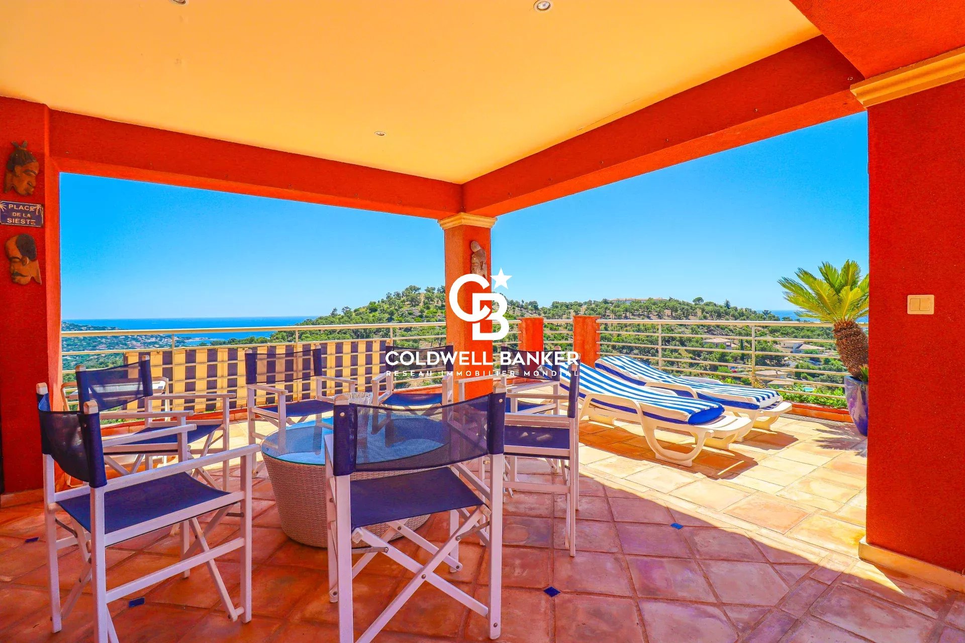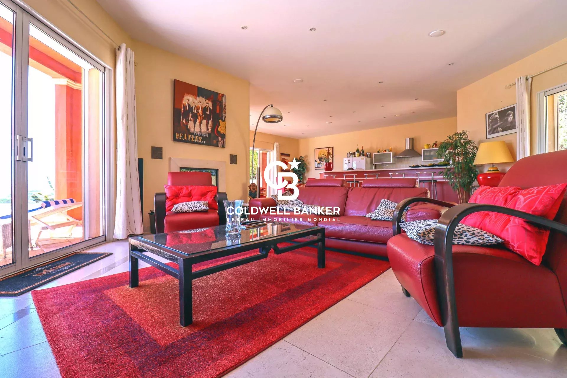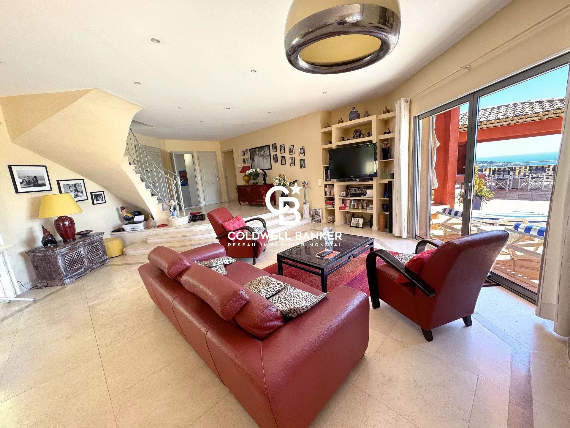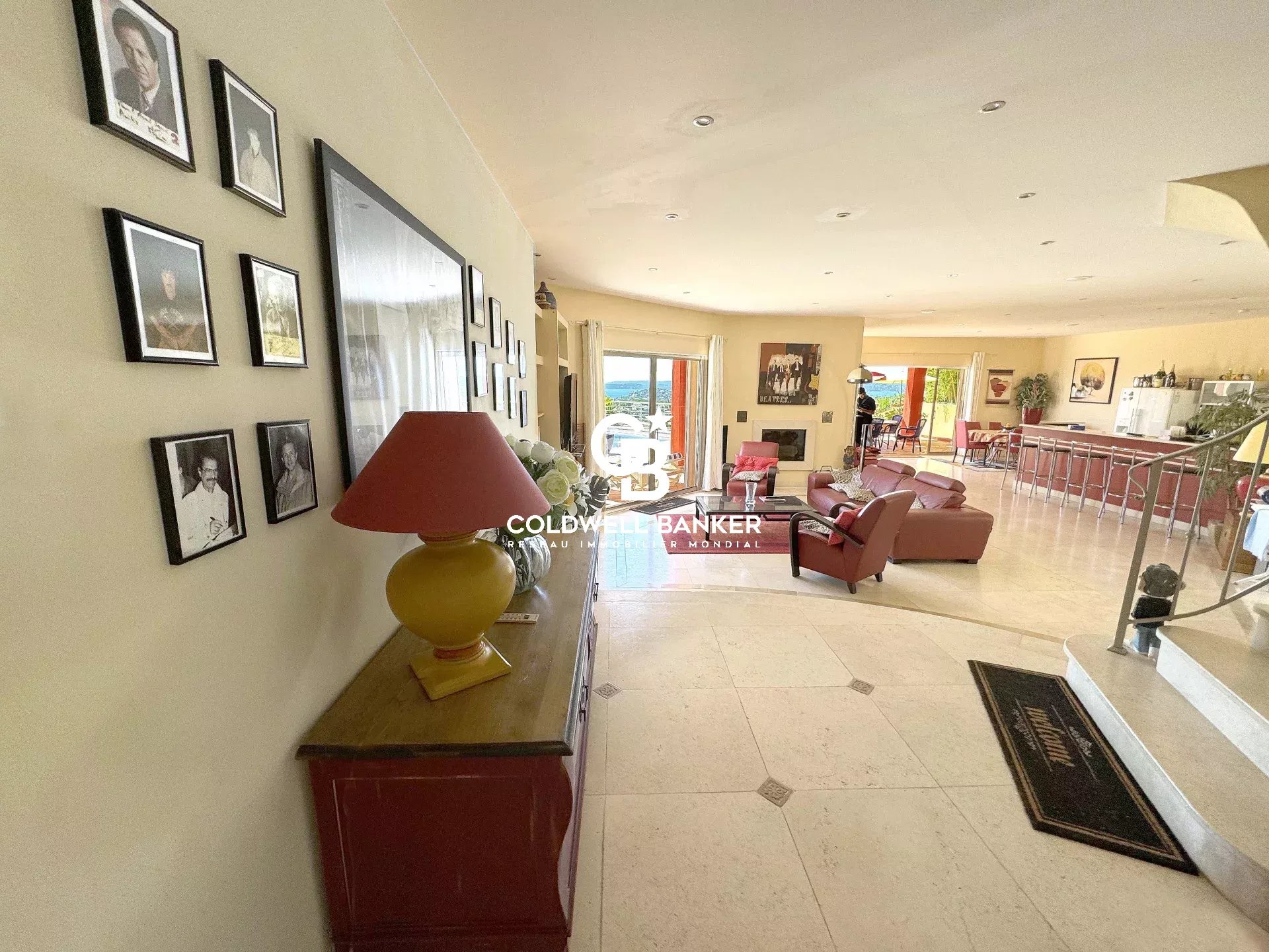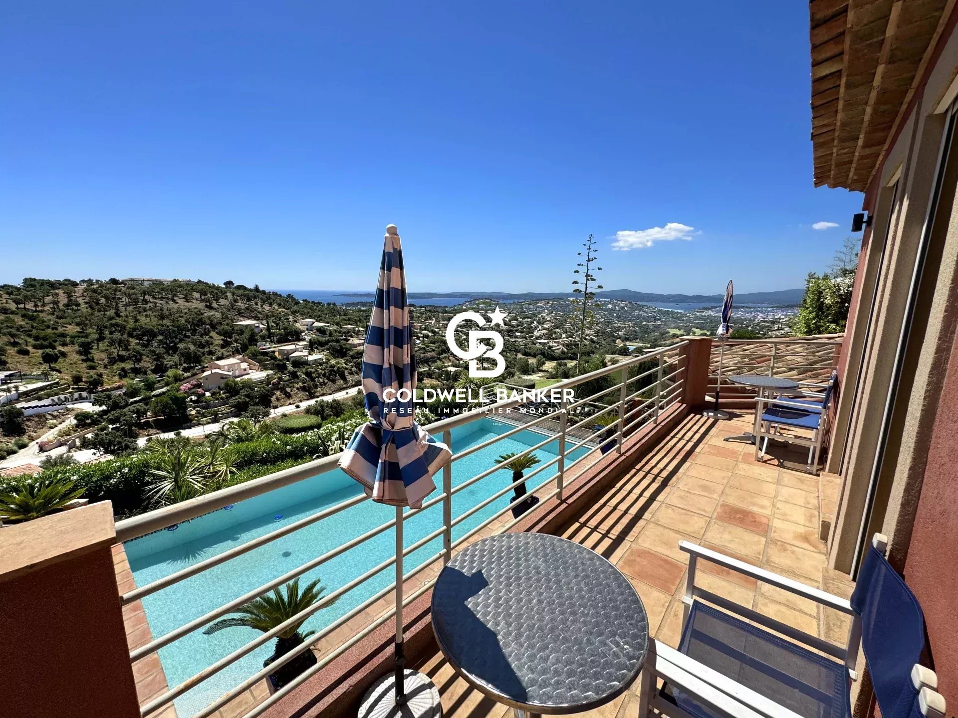 Position dominante pour cette superbe villa néo-provençale, à l'allure “tropézienne“ avec vue panoramique 180°sur la baie de Saint Raphaël et celle du Golfe de Saint Tropez. Un horizon à perte de vue, plein sud, au calme, sans vis-à-vis, dans un domaine privé, autour des collines environnantes et des faiways du golf 18 trous de Sainte-Maxime 8 pièces – 5 chambres climatisées – 4 SDB – 4 WC Un grand jardin, arboré et luxuriant de 2900 m2, autour de la bâtisse principale de 207 m2, à laquelle il faut ajouter 80 m2 de sous-sol habitable & aménageable. La demeure dispose également d’un appartement réceptif de 65 m2, avec entrée privative, 2 chambres, 4 couchages, SDB / WC et une terrasse de 30 m2, vue mer. Soit 352 m2 hab actuels, avec possibilité de 400 m2 au global. Bâtisse principale : Rez de jardin : Salon, salle à manger, cuisine, bar, bel espace privilégiant aussi bien la confidentialité que les réunions familiales. Chambre de maitre, comprenant 2 chambres, WC privés, SDB, dressing et grand balcon vue panoramique mer et montagne. Belle terrasse de plus de 60 m2, vue mer et collines, avec solarium, espaces détente, cuisine & salle à manger extérieures - Piscine à débordement & pool house À l’étage : 2 chambres avec SDB, WC et grandes terrasses “tropéziennes“, vue mer et collines Dépendances : 2X garage– Atelier 85 m2- Terrasse 20 m2 à l’arrière Prestations : Chauffage air conditionné & clim au sol – Split dans toutes les chambres – carrelage marbre & Grés, terrasses abritées, places de parkings Un aménagement glamour, des lieux de vie harmonieux, une belle évolution d'urbanisme en place … de réels atouts pour cette majestueuse villégiature, face à l’immensité de la méditerranée