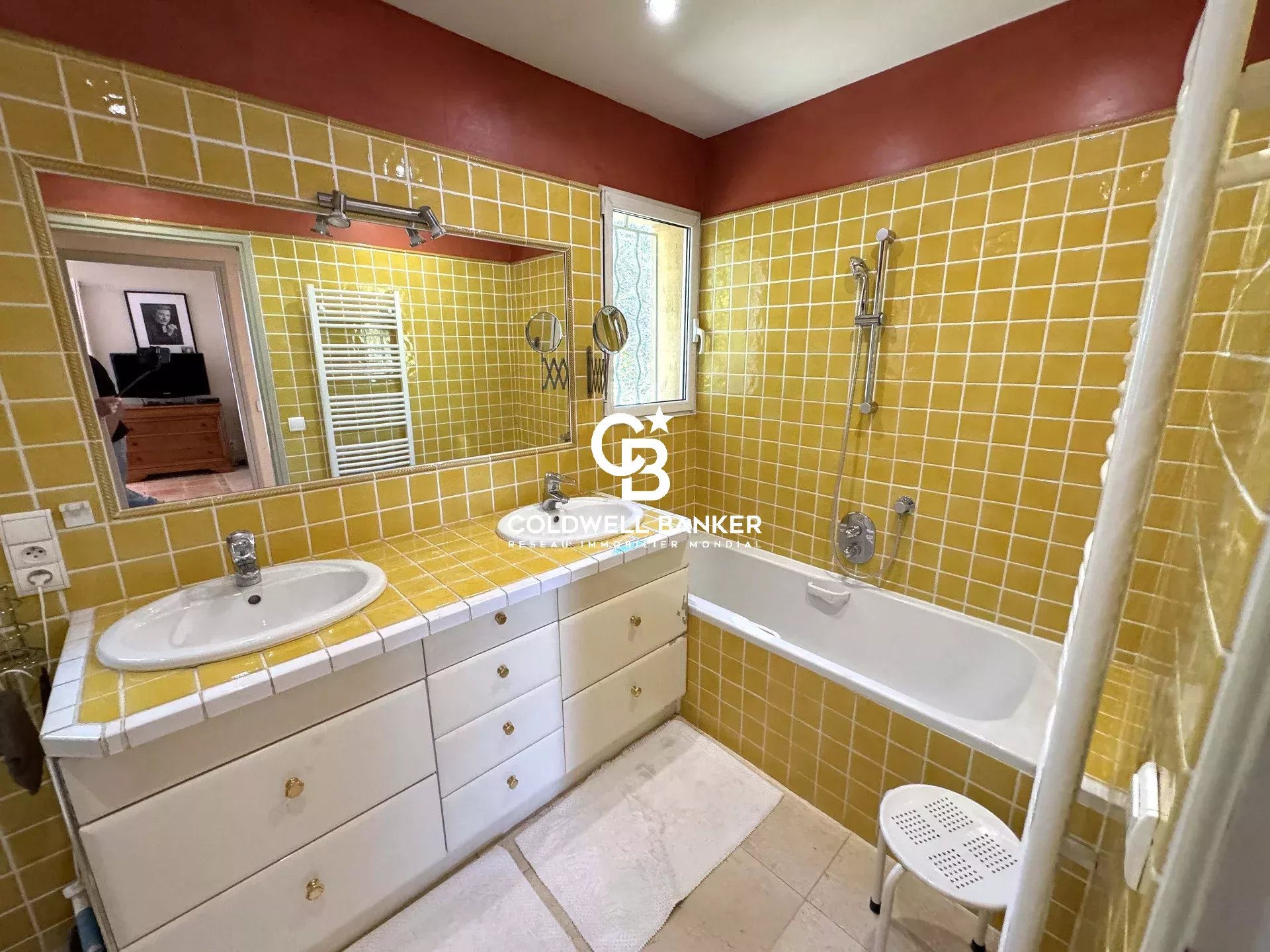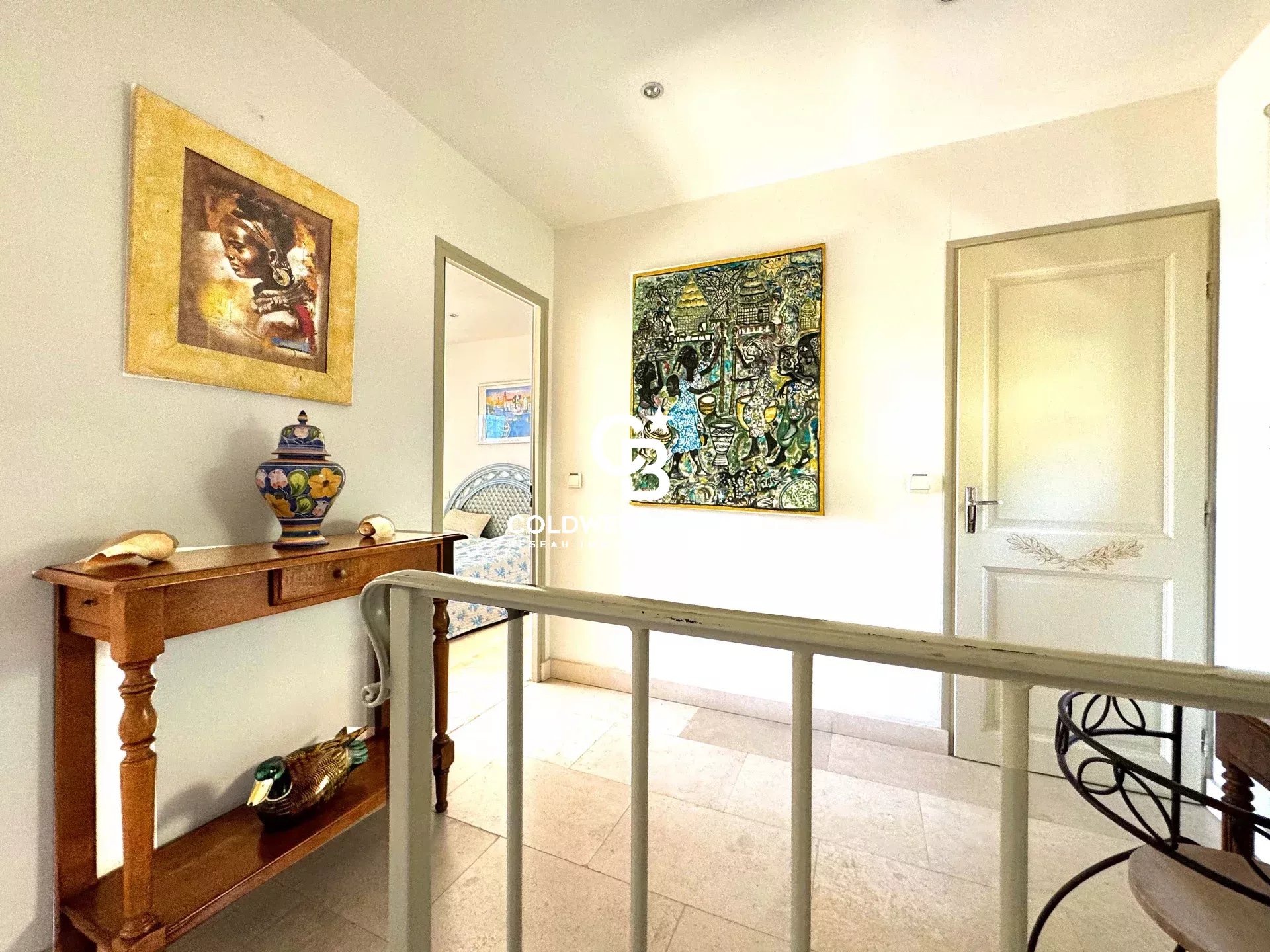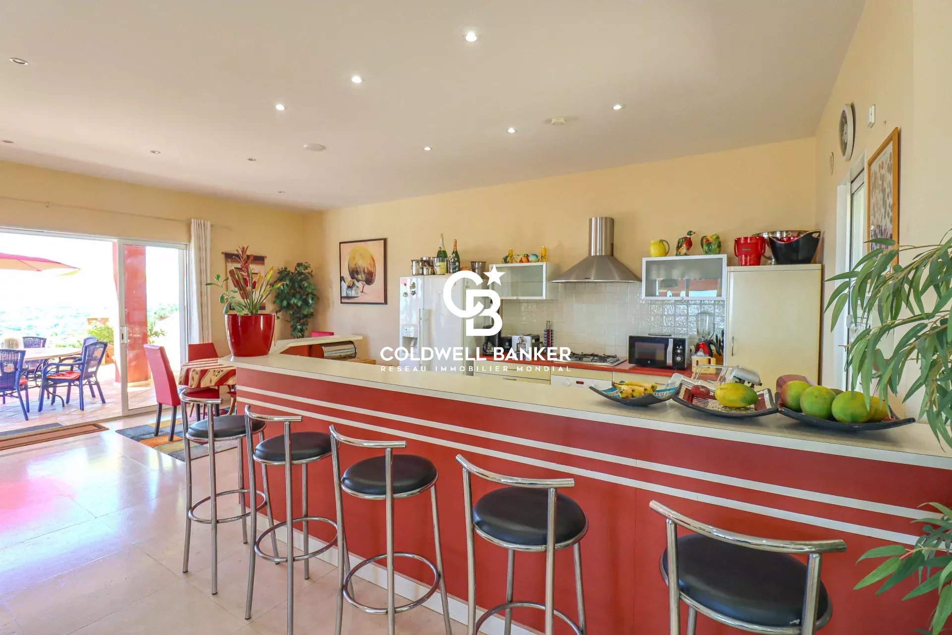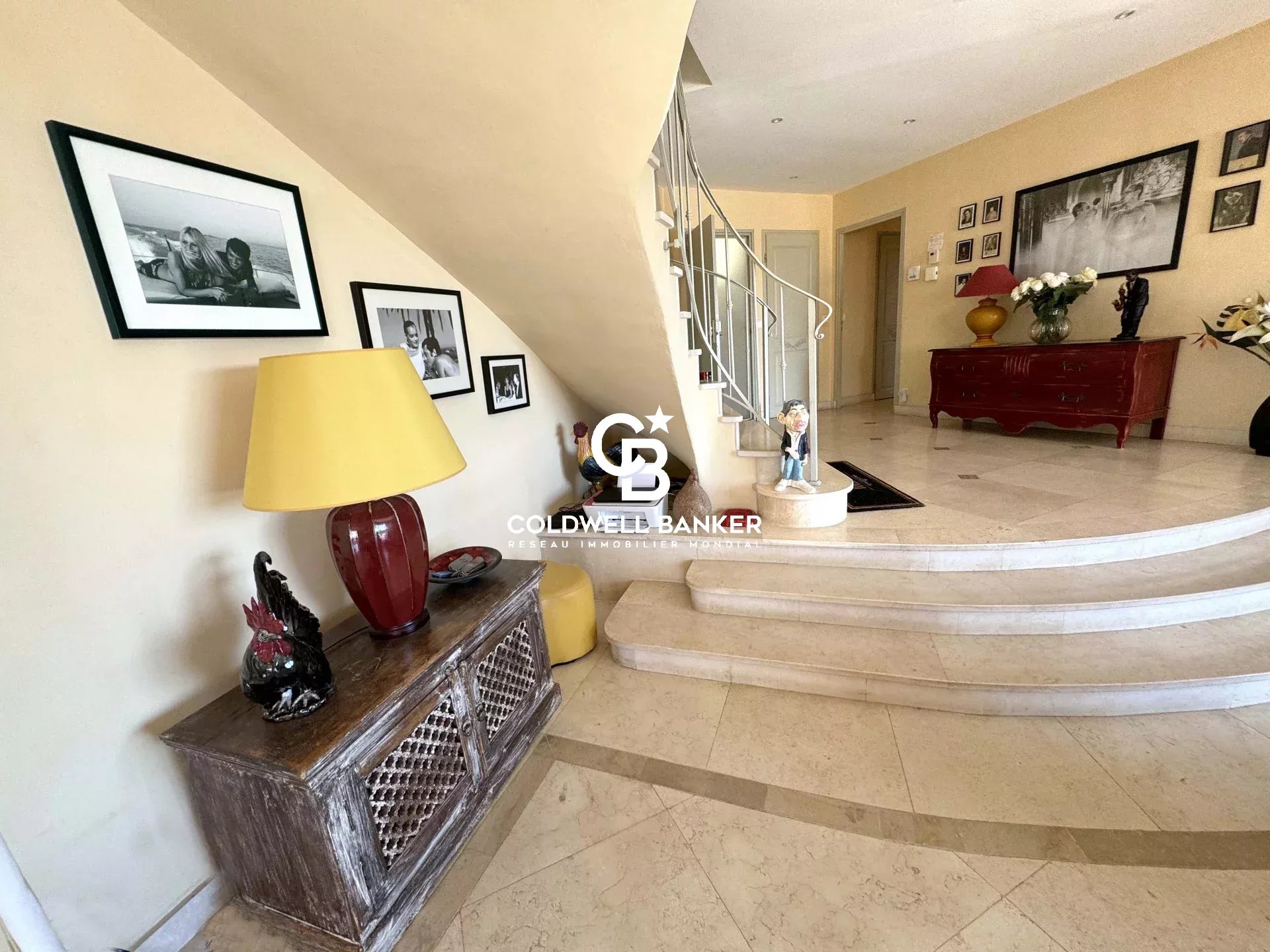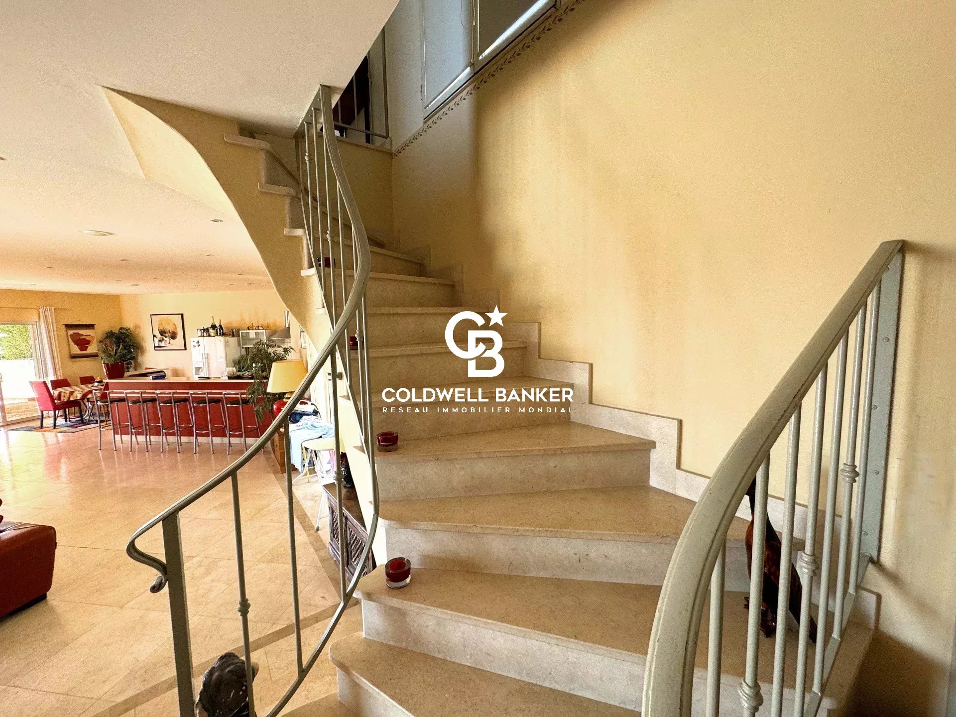 Position dominante pour cette superbe villa néo-provençale, à l'allure “tropézienne“ avec vue panoramique 180°sur la baie de Saint Raphaël et celle du Golfe de Saint Tropez. Un horizon à perte de vue, plein sud, au calme, sans vis-à-vis, dans un domaine privé, autour des collines environnantes et des faiways du golf 18 trous de Sainte-Maxime 8 pièces – 5 chambres climatisées – 4 SDB – 4 WC Un grand jardin, arboré et luxuriant de 2900 m2, autour de la bâtisse principale de 207 m2, à laquelle il faut ajouter 80 m2 de sous-sol habitable & aménageable. La demeure dispose également d’un appartement réceptif de 65 m2, avec entrée privative, 2 chambres, 4 couchages, SDB / WC et une terrasse de 30 m2, vue mer. Soit 352 m2 hab actuels, avec possibilité de 400 m2 au global. Bâtisse principale : Rez de jardin : Salon, salle à manger, cuisine, bar, bel espace privilégiant aussi bien la confidentialité que les réunions familiales. Chambre de maitre, comprenant 2 chambres, WC privés, SDB, dressing et grand balcon vue panoramique mer et montagne. Belle terrasse de plus de 60 m2, vue mer et collines, avec solarium, espaces détente, cuisine & salle à manger extérieures - Piscine à débordement & pool house À l’étage : 2 chambres avec SDB, WC et grandes terrasses “tropéziennes“, vue mer et collines Dépendances : 2X garage– Atelier 85 m2- Terrasse 20 m2 à l’arrière Prestations : Chauffage air conditionné & clim au sol – Split dans toutes les chambres – carrelage marbre & Grés, terrasses abritées, places de parkings Un aménagement glamour, des lieux de vie harmonieux, une belle évolution d'urbanisme en place … de réels atouts pour cette majestueuse villégiature, face à l’immensité de la méditerranée