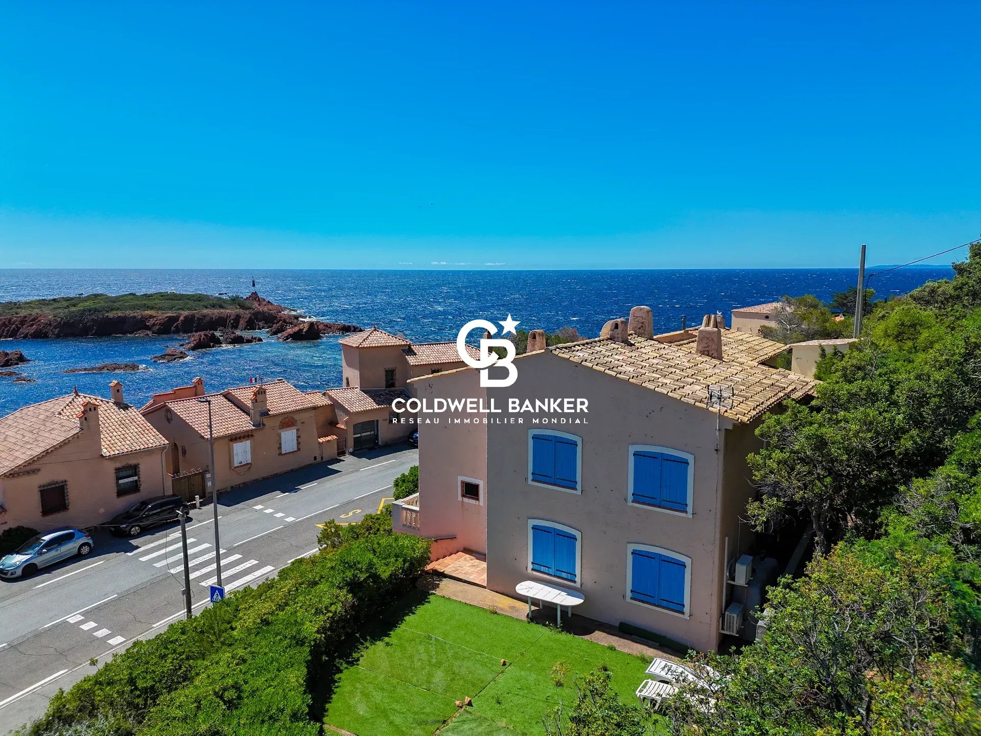 Villa avec vue mer exceptionnelle, située entre Cannes et Saint Raphaël à quelques mètres de la plage. Sur deux niveaux cette villa de 212m2 dispose au rez-de-chaussée d'un salon avec cheminée avec ouverture sur une loggia, une salle à manger et cuisine ouverte avec accès à une terrasse extérieure, trois chambres, une salle de bain, une salle d'eau et un wc. En rez-de-jardin se trouve une grande pièce de vie avec coin cuisine, une chambre avec salle de bain, une salle d'eau et wc. Studio indépendant de 30m2 et Jardin de 900m2.
