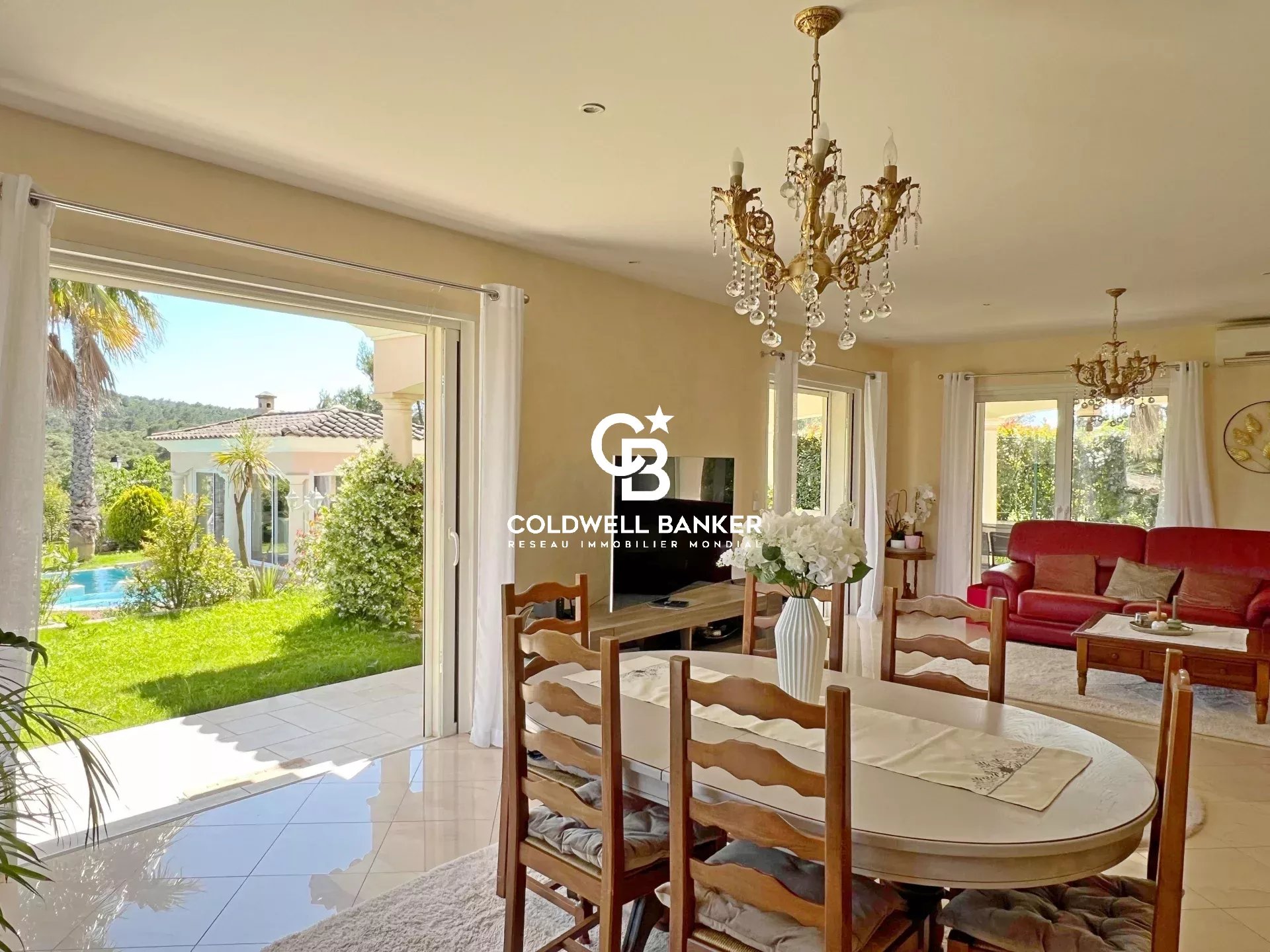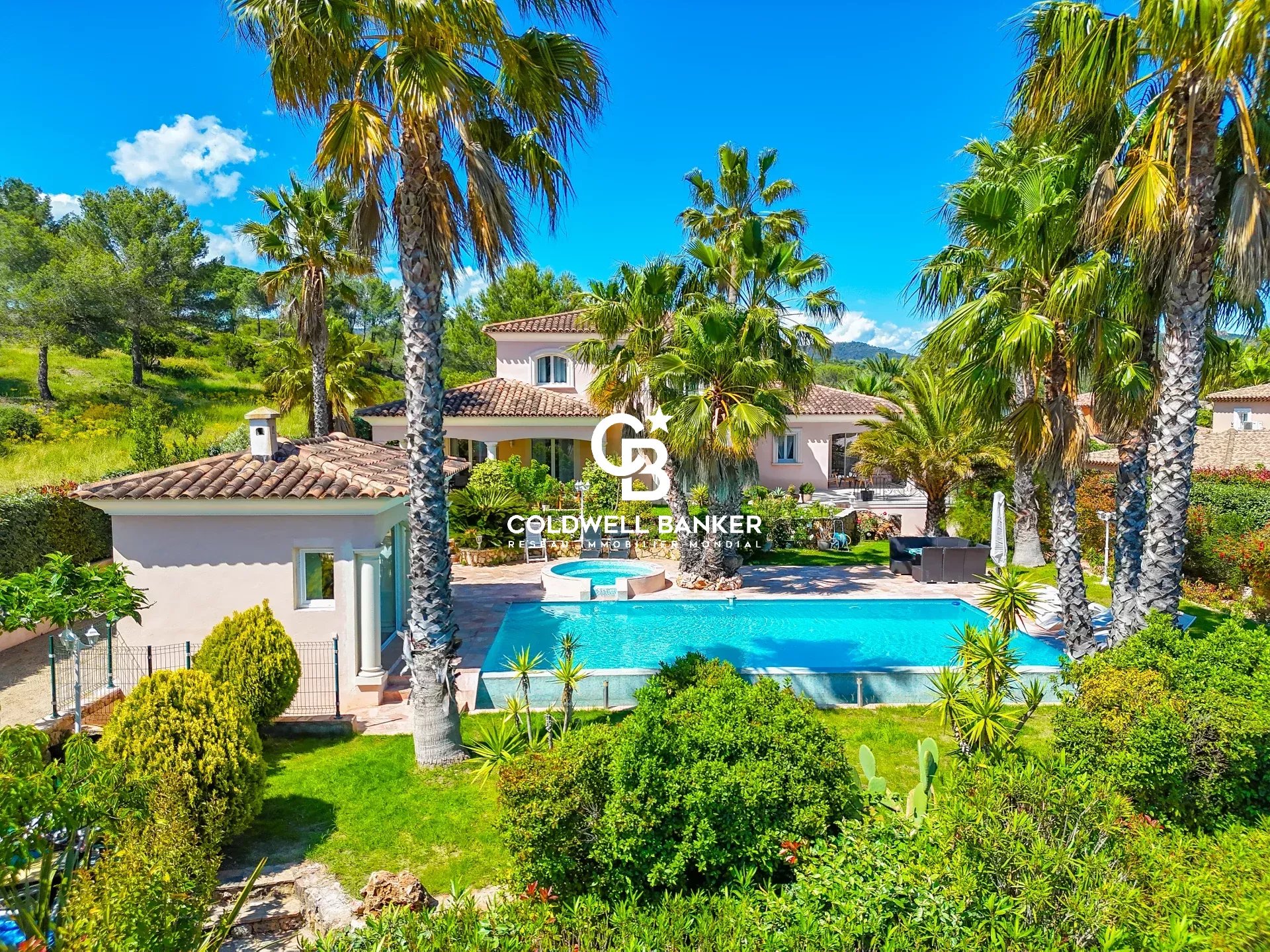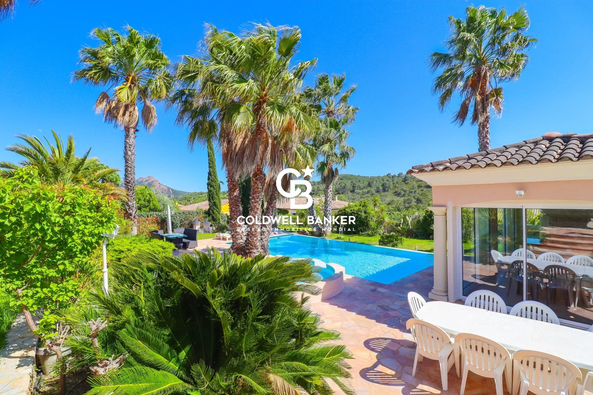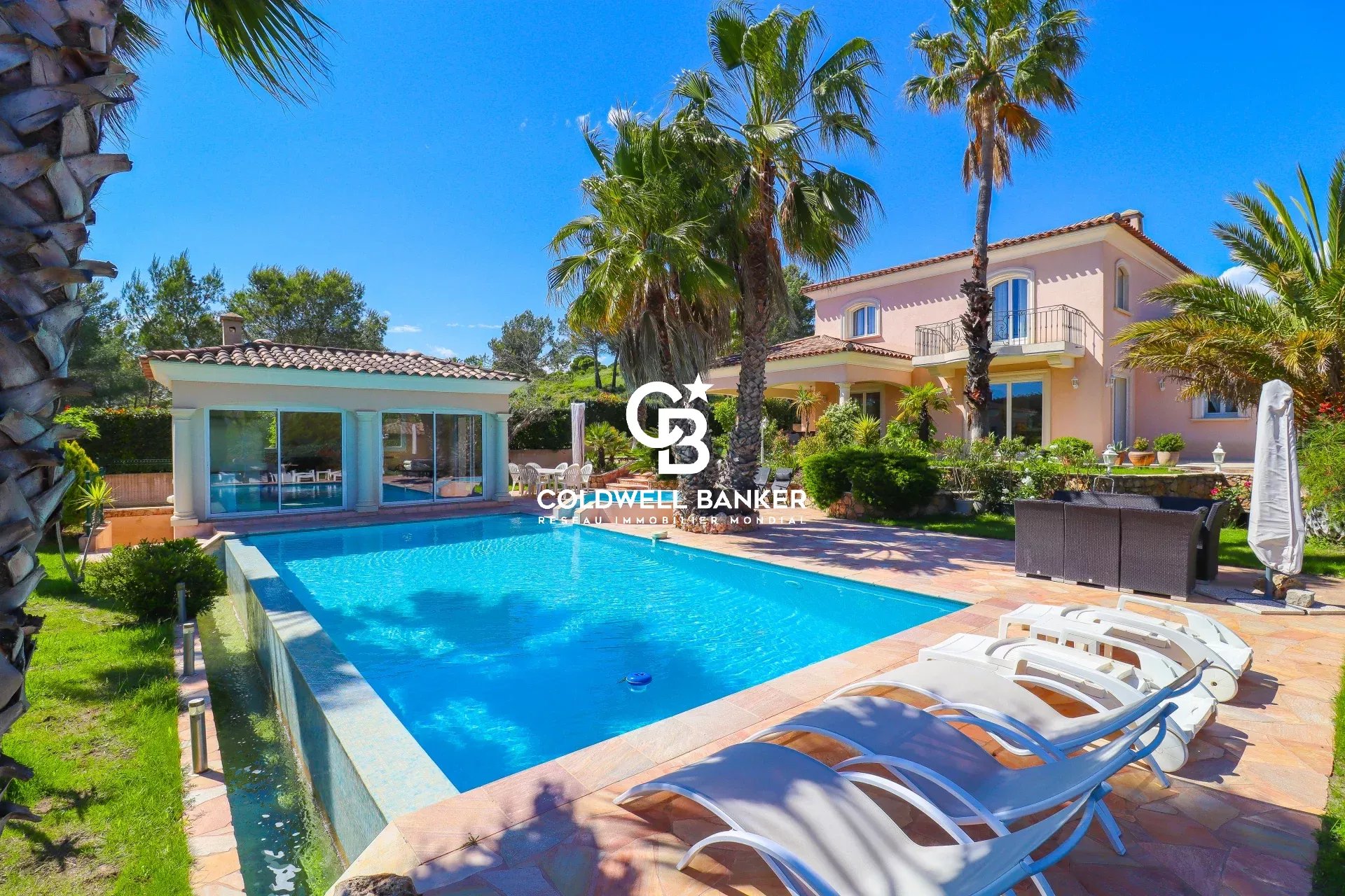COLDWELL BANKER vous présente cette villa somptueuse néo provençale édifiée sur un terrain de 1260 m² environ, qui bénéficie de vues dégagées sur le Massif de l'Estérel. Construite avec des matériaux de qualité, tout est pensé dans ce bien pour votre confort. Au rez-de-chaussée surélevé vous trouverez un double séjour, une cuisine indépendante avec cellier, une suite parentale avec salle de bain et un bureau attenant, le tout doté de grandes baies vitrées à galandage donnant sur une terrasse de 110 m² partiellement couverte et exposée plein Sud. Ce vaste espace extérieur est prolongé par une grande plage ensoleillée avec piscine à débordement. Un beau pool-house avec cuisine d'été, salle de douche et WC offre de profiter agréablement de l'été provençal en plein air. A l'étage se trouvent trois chambres, chacune avec placard, une salle de bain et un WC séparé. Un grand garage et un appartement type T2 complètent l'agencement de la villa. Vous êtes à quelques minutes des commerces et des golfs de l'Estérel et de Valescure. Un havre où nature et luxe règnent en harmonie !