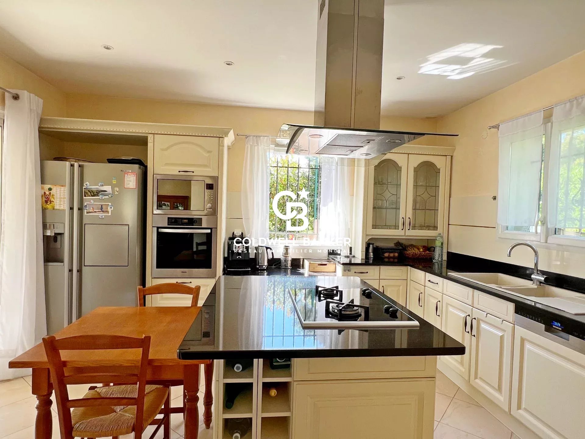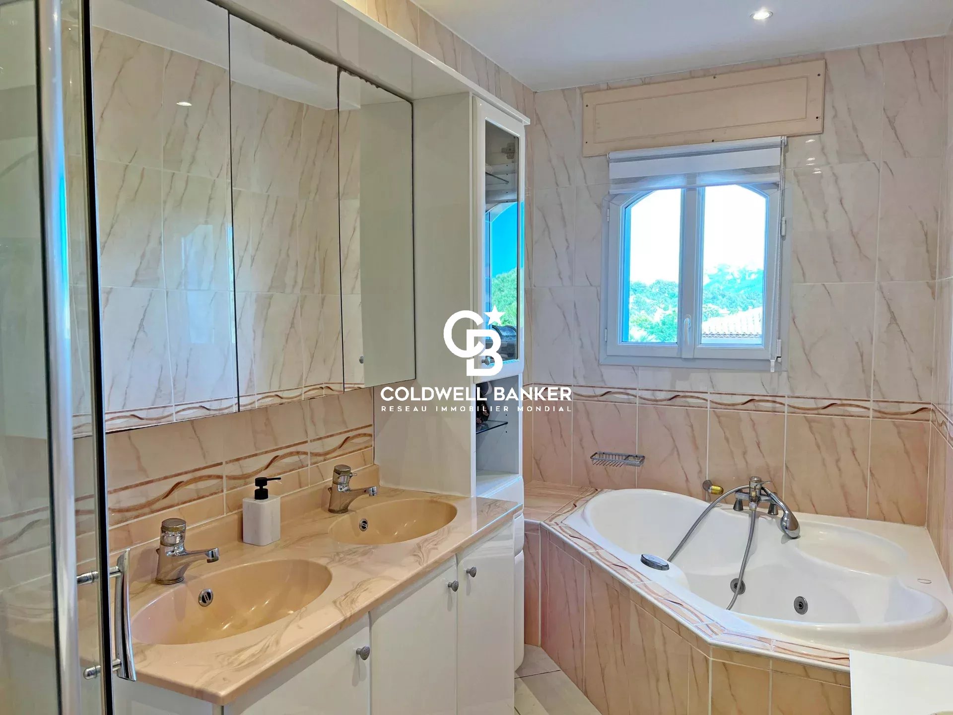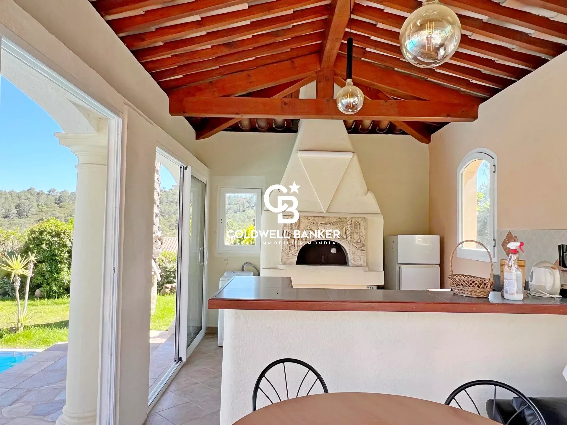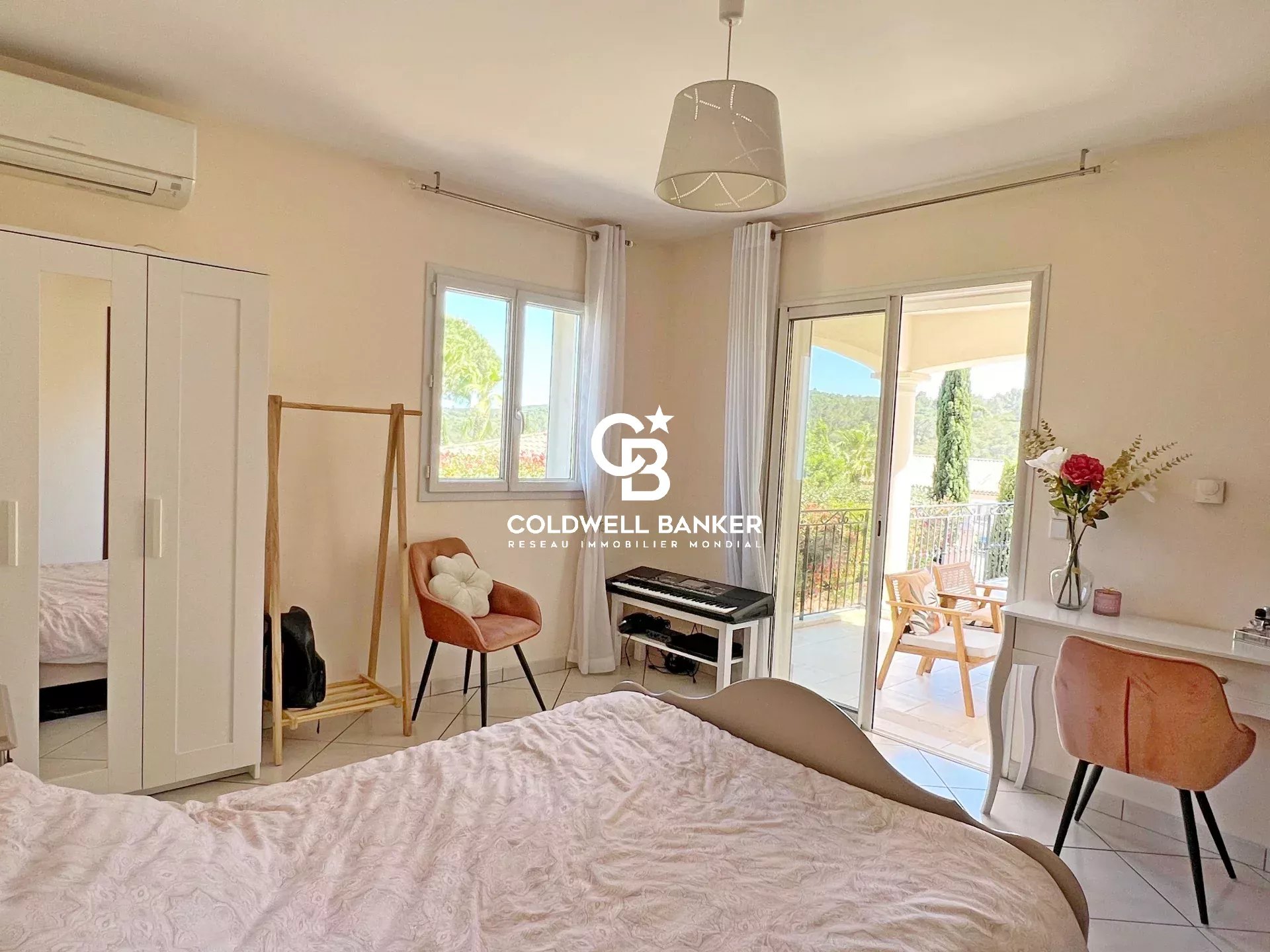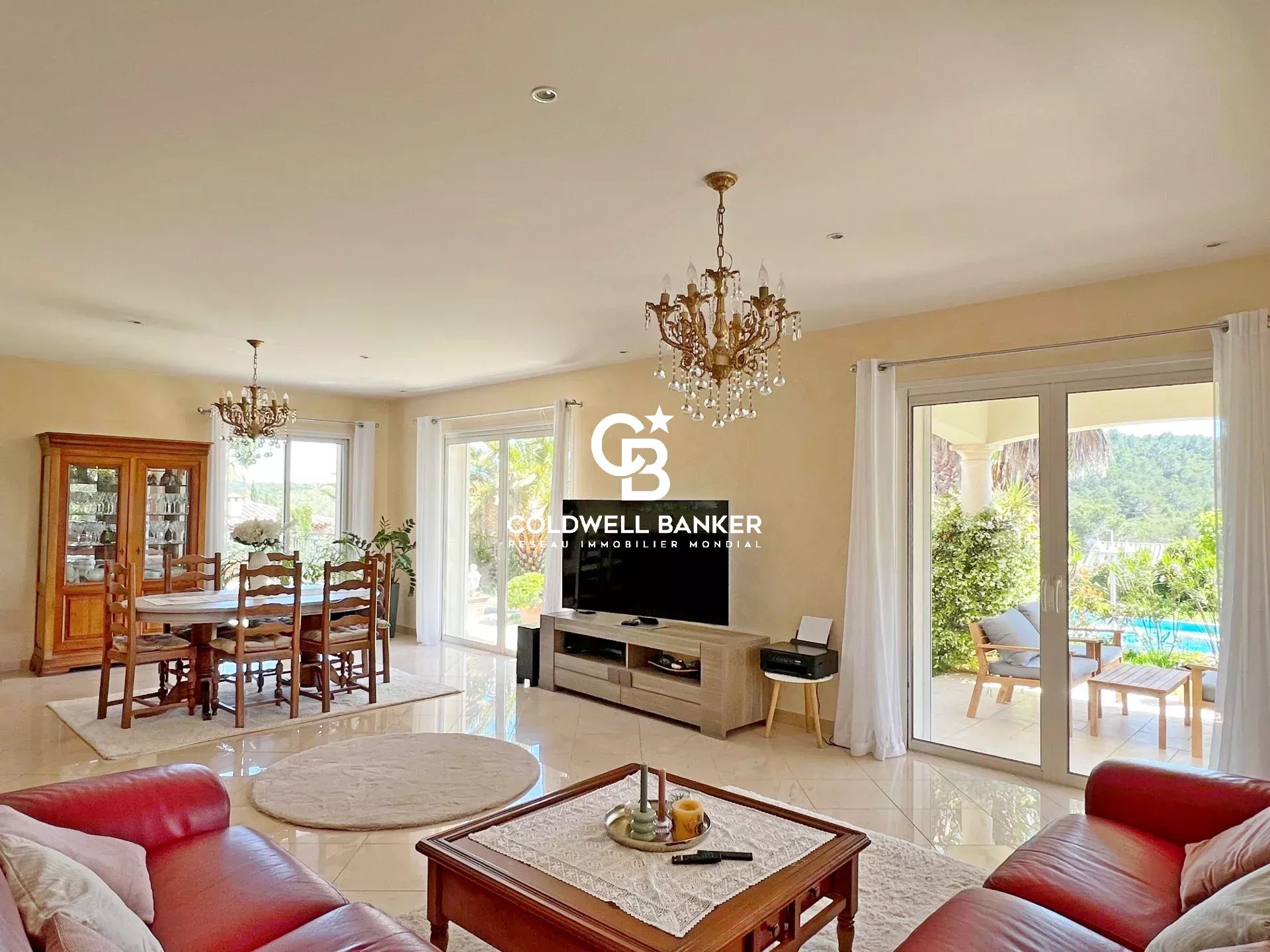 COLDWELL BANKER vous présente cette villa somptueuse néo provençale édifiée sur un terrain de 1260 m² environ, qui bénéficie de vues dégagées sur le Massif de l'Estérel. Construite avec des matériaux de qualité, tout est pensé dans ce bien pour votre confort. Au rez-de-chaussée surélevé vous trouverez un double séjour, une cuisine indépendante avec cellier, une suite parentale avec salle de bain et un bureau attenant, le tout doté de grandes baies vitrées à galandage donnant sur une terrasse de 110 m² partiellement couverte et exposée plein Sud. Ce vaste espace extérieur est prolongé par une grande plage ensoleillée avec piscine à débordement. Un beau pool-house avec cuisine d'été, salle de douche et WC offre de profiter agréablement de l'été provençal en plein air. A l'étage se trouvent trois chambres, chacune avec placard, une salle de bain et un WC séparé. Un grand garage et un appartement type T2 complètent l'agencement de la villa. Vous êtes à quelques minutes des commerces et des golfs de l'Estérel et de Valescure. Un havre où nature et luxe règnent en harmonie !