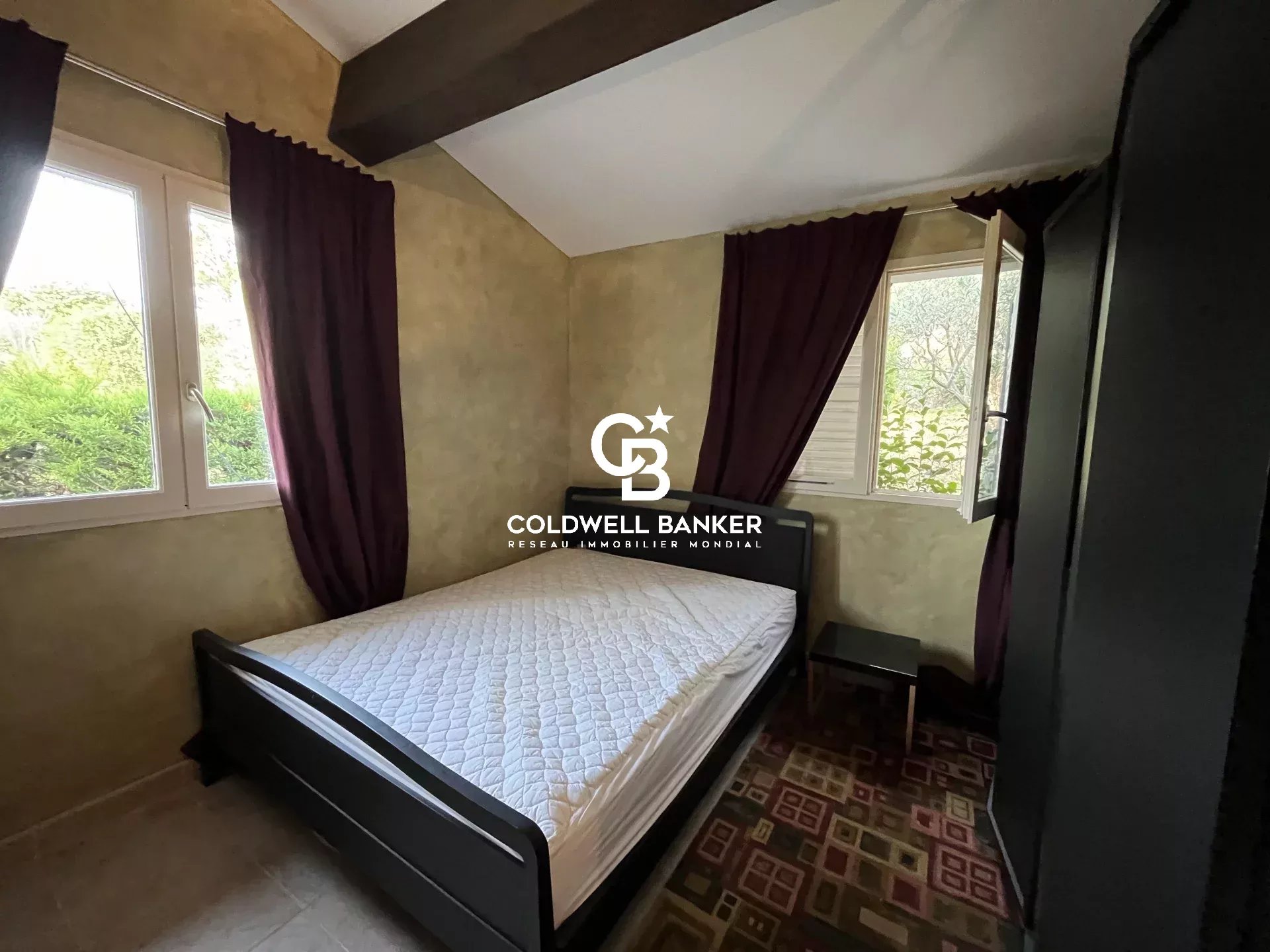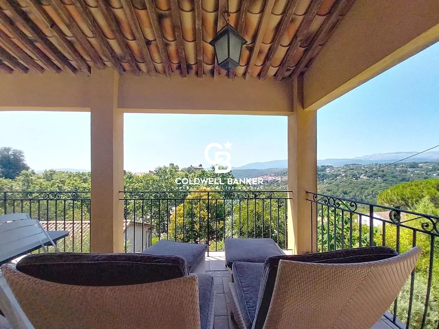 Penthouse unique avec vue panoramique – Montauroux Nichée au dernier étage d’un bâtiment de style villa, dans une impasse paisible, cette propriété meublée offre un cadre de vie rare et enchanteur. Ce penthouse se compose d’un petit jardin privatif avec fontaine, d’un hall d’entrée avec toilettes invités, d’un salon lumineux avec cheminée, ouvrant par deux grandes portes-fenêtres sur une spacieuse terrasse panoramique offrant une vue imprenable sur les villages perchés de Montauroux et Callian. La cuisine est ouverte et entièrement équipée. La suite parentale dispose de sa propre salle de bains privative, tandis qu’une seconde chambre bénéficie également de sa propre salle d’eau. Les hauts plafonds cathédrale confèrent à l’ensemble une atmosphère aérée et baignée de lumière naturelle. La piscine panoramique, judicieusement implantée au centre de deux villas, offre intimité et tranquillité. Un parc de stationnement se trouve juste devant la copropriété. Petite copropriété de seulement 4 lots, garantissant calme et exclusivité. Un bien rare, idéal en résidence principale, secondaire ou investissement de charme.