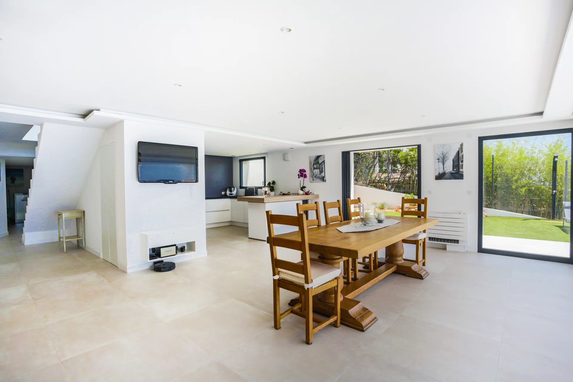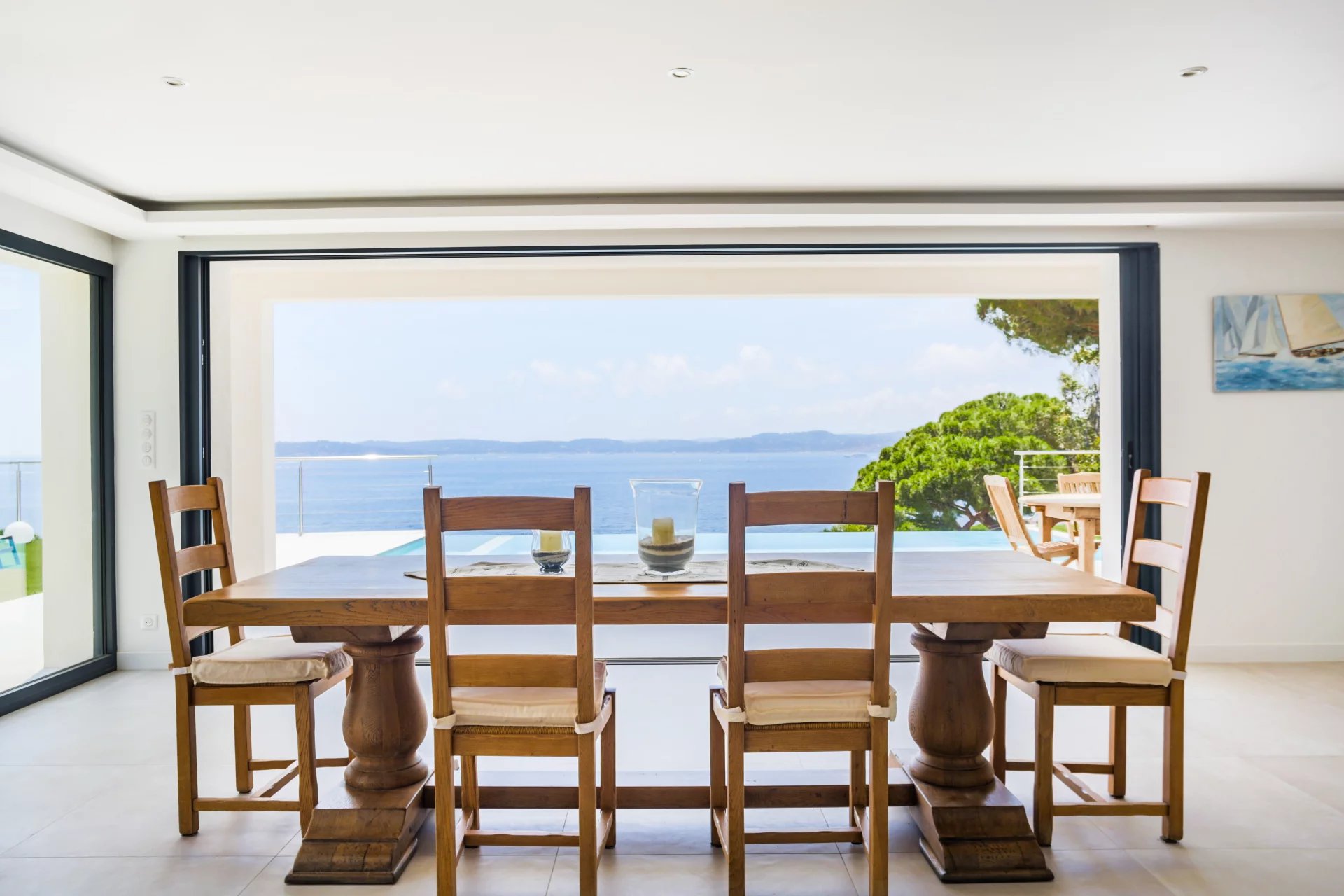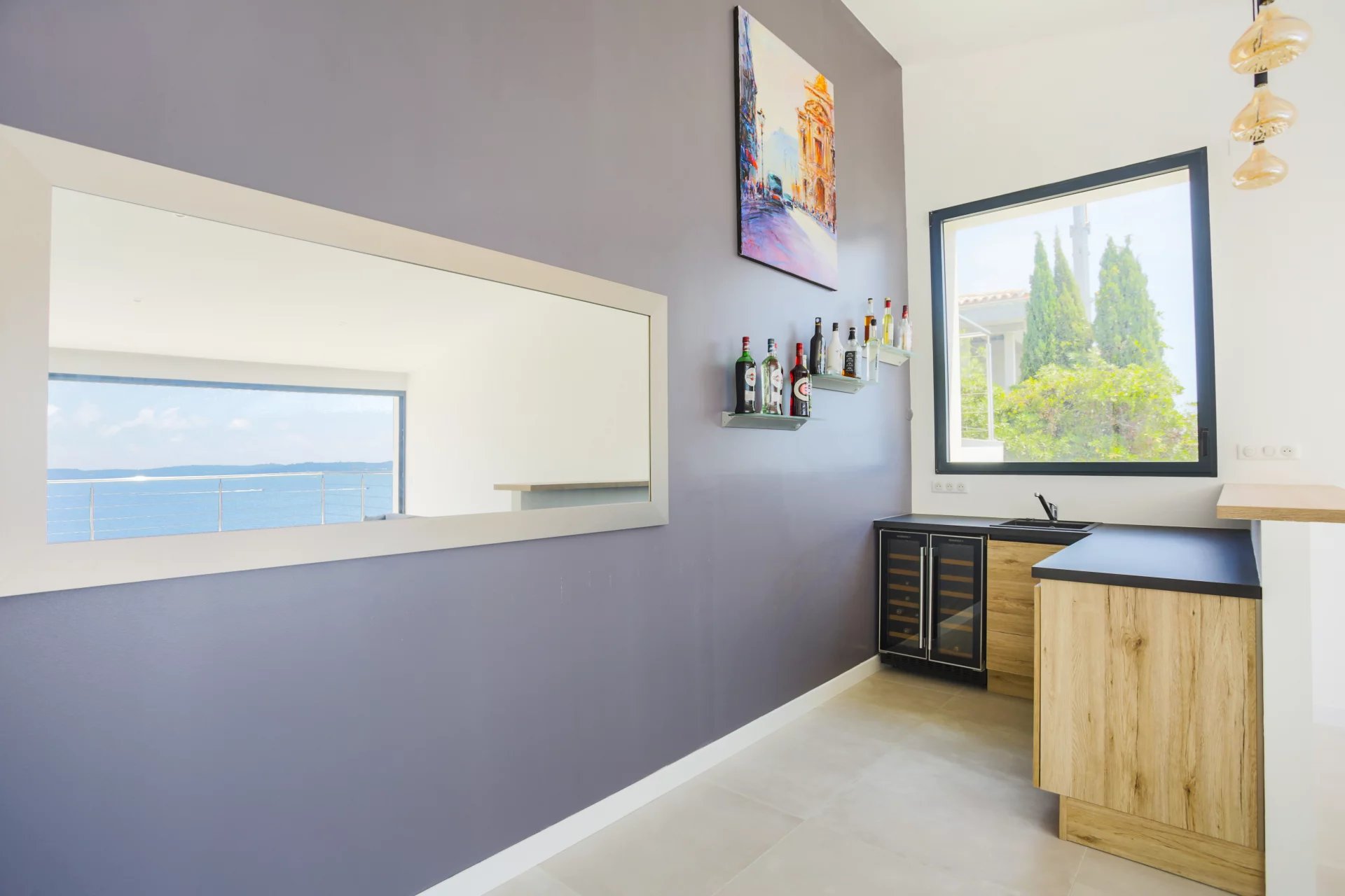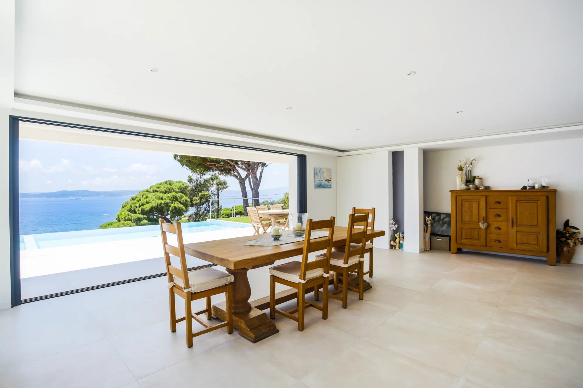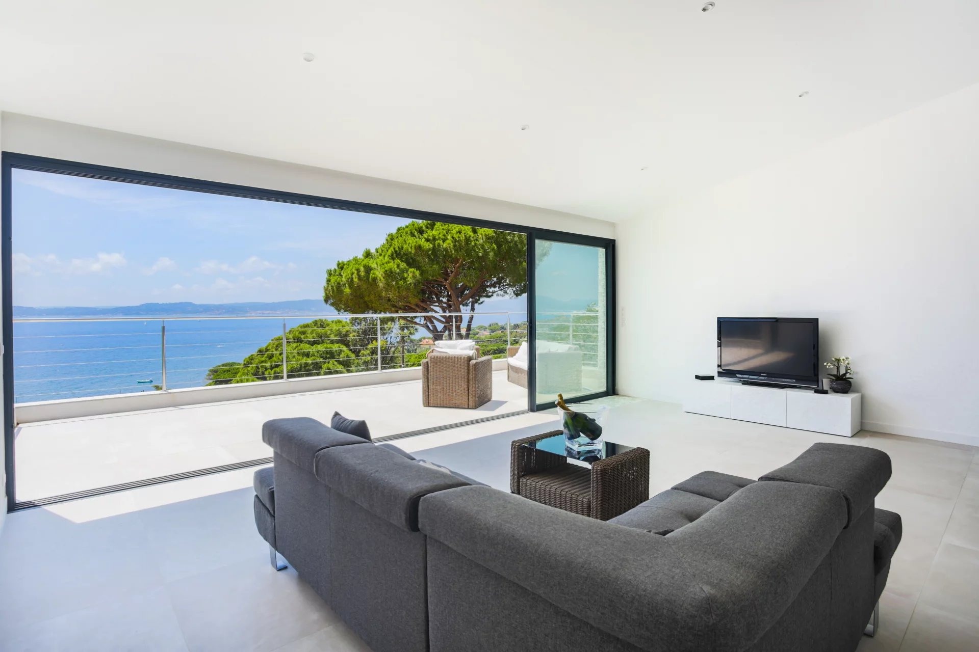 Incroyable vue mer pour cette villa moderne sur Sainte-Maxime. Cette magnifique villa vous séduira par sa vue mer incroyable. Au premier niveau elle est composée de 3 suites avec lits doubles avec salle de bain. La master suite posséde une terrasse avec vue mer époustouflante. Au niveau inférieur un espace bar, salon tv et terrasse. Au rez de chaussée une superbe cuisine ouverte toute équipée donnat sur une grande salle à manger donnant sur la piscine et le jardin. En plus des escalier, un ascenseur dessert les différent niveaux de la maison. A quelques minutes des plages à pied. La maison est entièrement climatisée, wifi, linge de maison compris. Stationnement des véhicules dans la propriété. Caution: 2 500 euros Frais de ménage : 300 euros