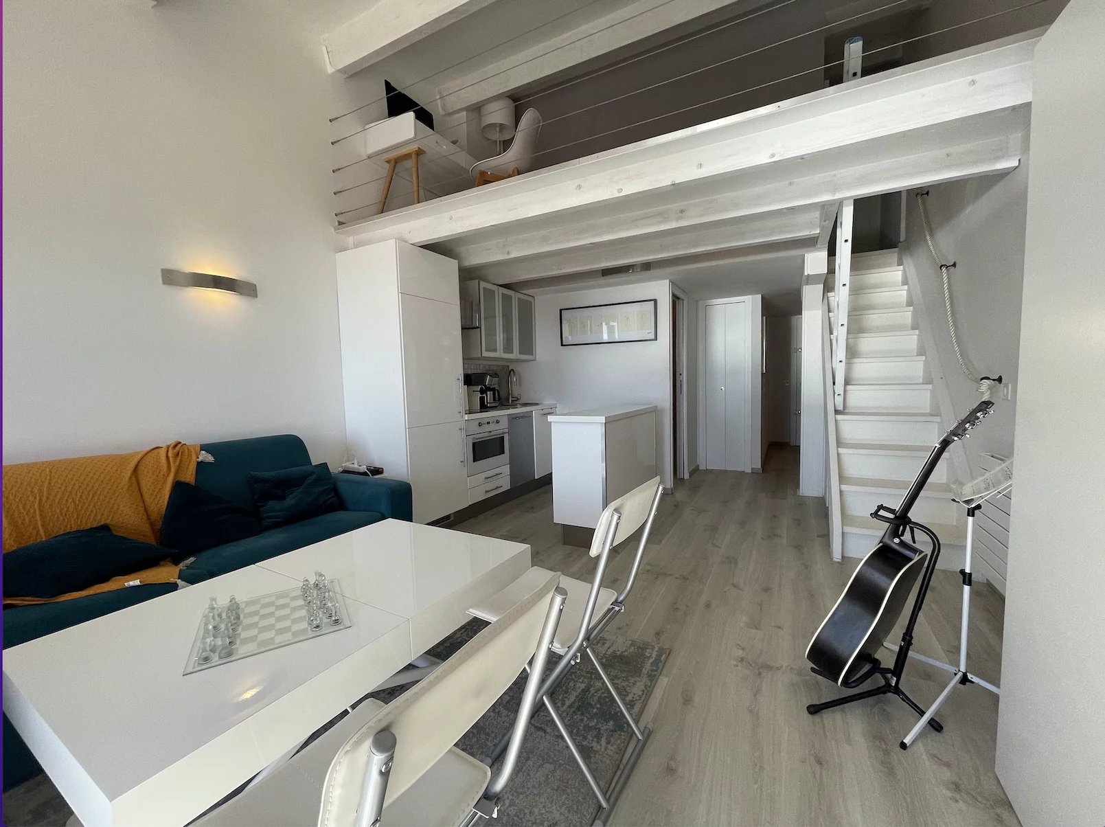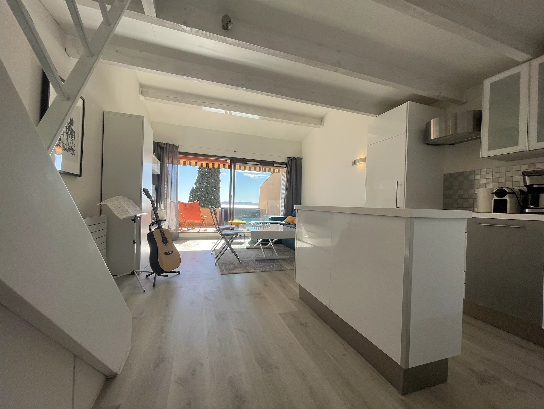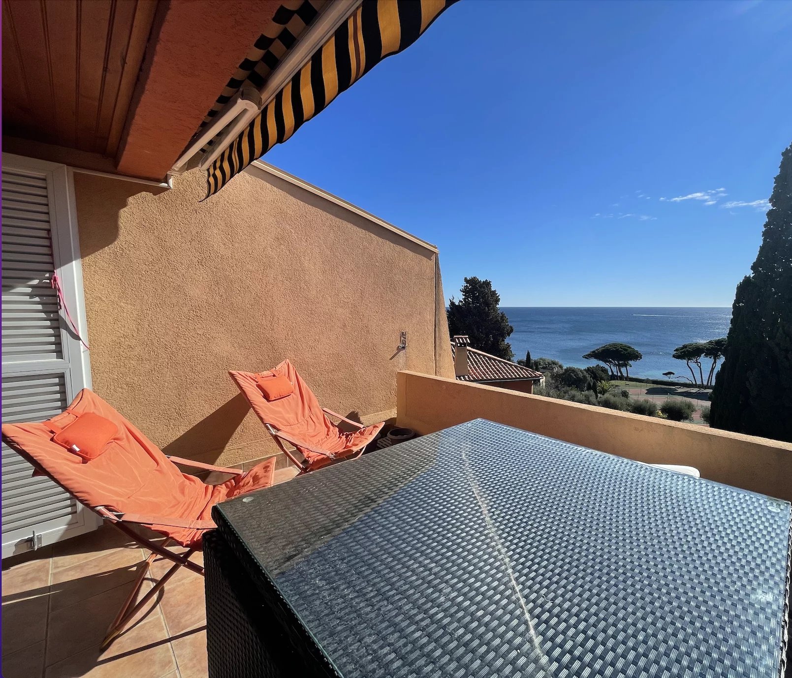 Superbe appartement terrasse avec vue mer, idéal pour vos vacances à Sainte Maxime. Appartement de 43 m2 avec parking dans la résidence Piscine commune 1 séjour ( canapé convertible, TV grand écran) avec cuisine ouverte équipée ( réfrigérateur, congélateur, lave-vaisselle, four..) Terrasse avec table et 4 chaises + 2 fauteuils relax en rez de chaussée 1 chambre avec salle de douche En mezzanine, 1 bureau + coin détente avec futon 1er étage, 1 chambre parentale avec salle de bain L'accès à l'appartement peut se faire par un funiculaire Les frais de ménage seront facturés en sus : 70 euros