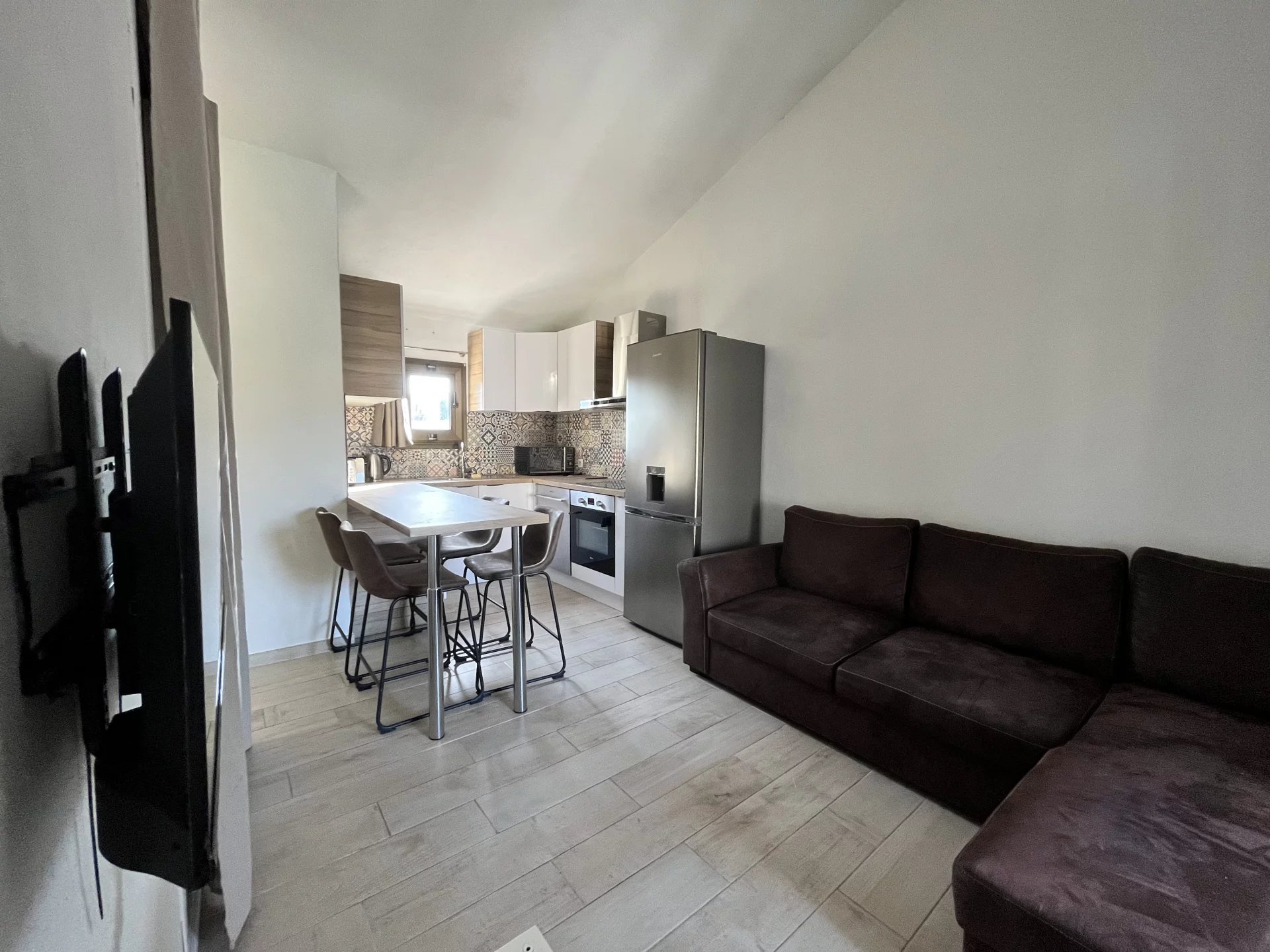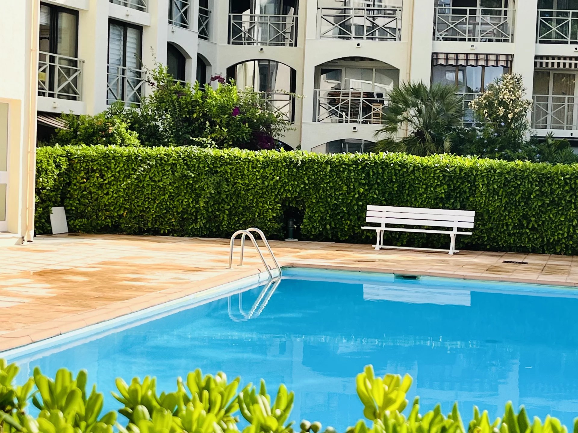 Charmant appartement de vacances dans une résidence avec piscine. Idéal pour 2pers. jolie cuisine ouverte avec tabouret de bar. Canapé. Chambre avec lit double. Salle de bain En centre ville, avec place de stationnement.