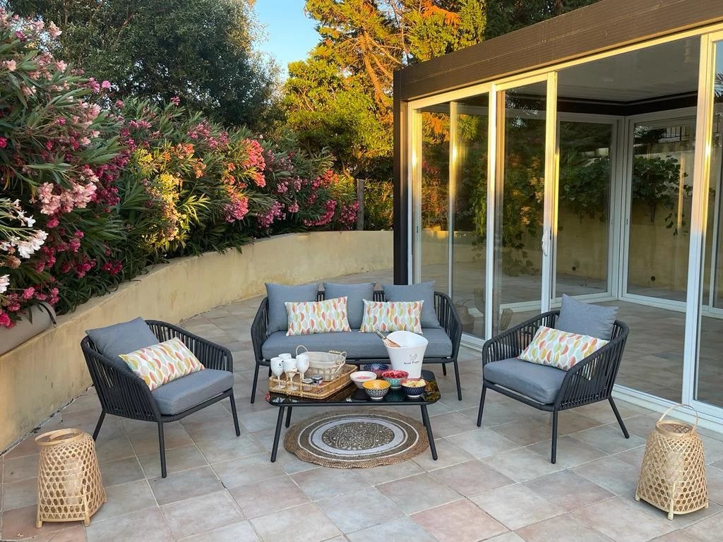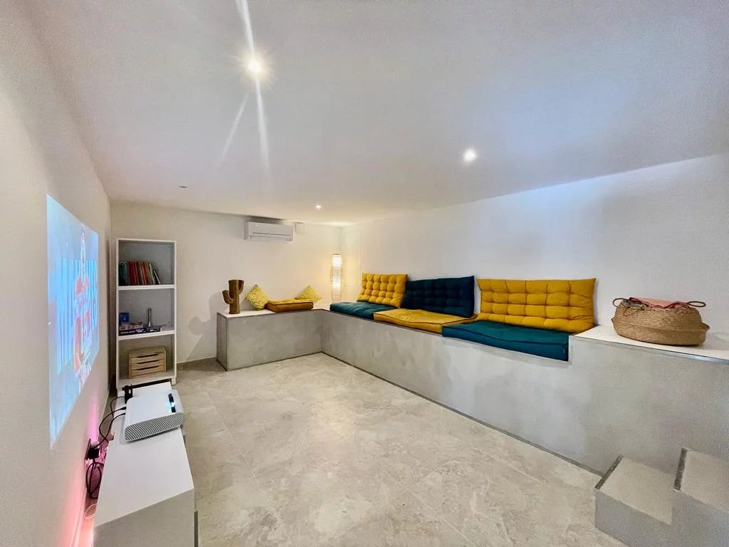 La villa des Chanterelles est une superbe villa de vacances pour des séjours en famille. La villa est conçue pour accueillir 8 personnes. À l'extérieur, la villa possède de nombreux équipements indispensables à de belles vacances en famille : - Piscine privée avec vue sur le golf de Sainte-Maxime - Table de ping pong - Pergola bioclimatique - Plusieurs terrasses avec salon de jardin, transats, table de repas extérieur - Barbecue à gaz - 2 parkings couverts A l'intérieur, la villa a été entièrement rénovée, elle dispose de 170 m2 sur 2 niveaux. - 1 grande suite parentale avec dressing et salle de bain. - 1 chambre double avec rangement et sa salle de douche. - 2 chambres doubles avec placards. - 2 salles de douches. ( des lits bébés et chaises hautes peuvent être mis à votre disposition sur demande selon disponibilités) Au res de chaussée, une belle cuisine ouverte très bien équipée ( four, plaques à induction, lave vaisselle, micro ondes, robot de cuisine, Nespresso, grille-pain, réfrigérateur américain, cave à vin, appareil Sodastream) Une buanderie avec machine à laver et sèche linge. 2 wc indépendants Un grand salon/salle à manger avec tv et wifi ( fibre optique) Une grande salle de jeux / salle de cinéma. Ce qui est compris dans votre location: - Linge de lit - Linge de toilette - Ménage de fin de séjour Idéalement située, la villa se trouve à 5 minutes de voiture des très belles plages de la Nartelle et à 10 minutes du centre ville. Golf de Sainte-Maxime: 5 minutes Aqualand, mini golf et accrobranche: 10 minutes Club de tennis de la madrague: 10 minutes
