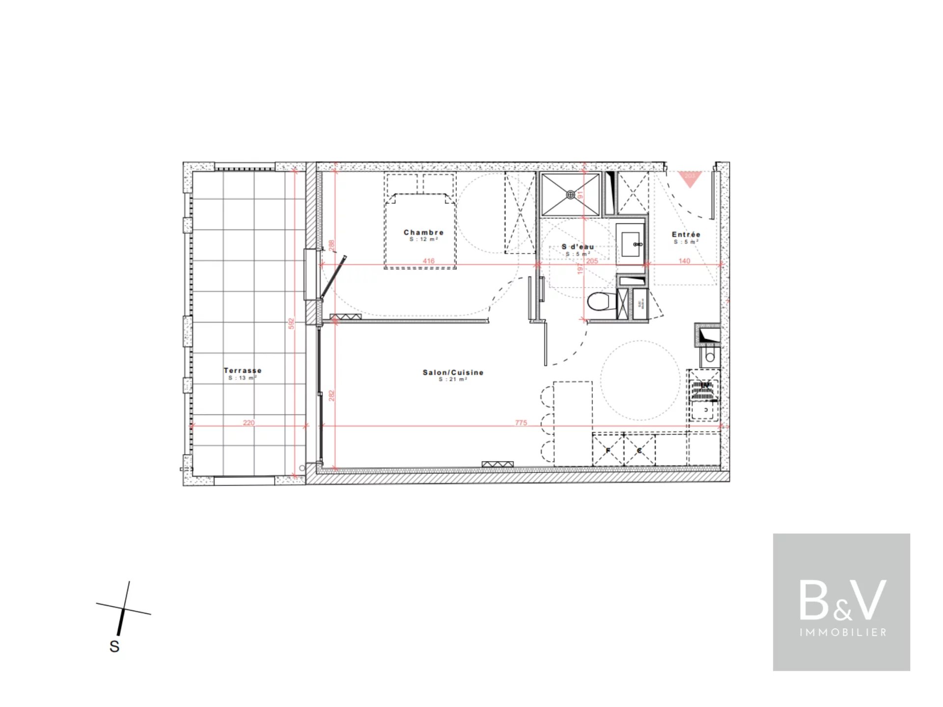 Appartement 2 pièces de 43 m² avec terrasse